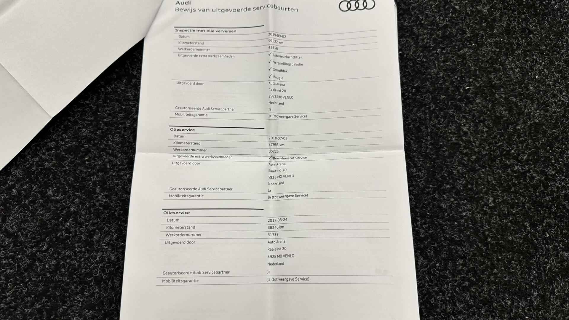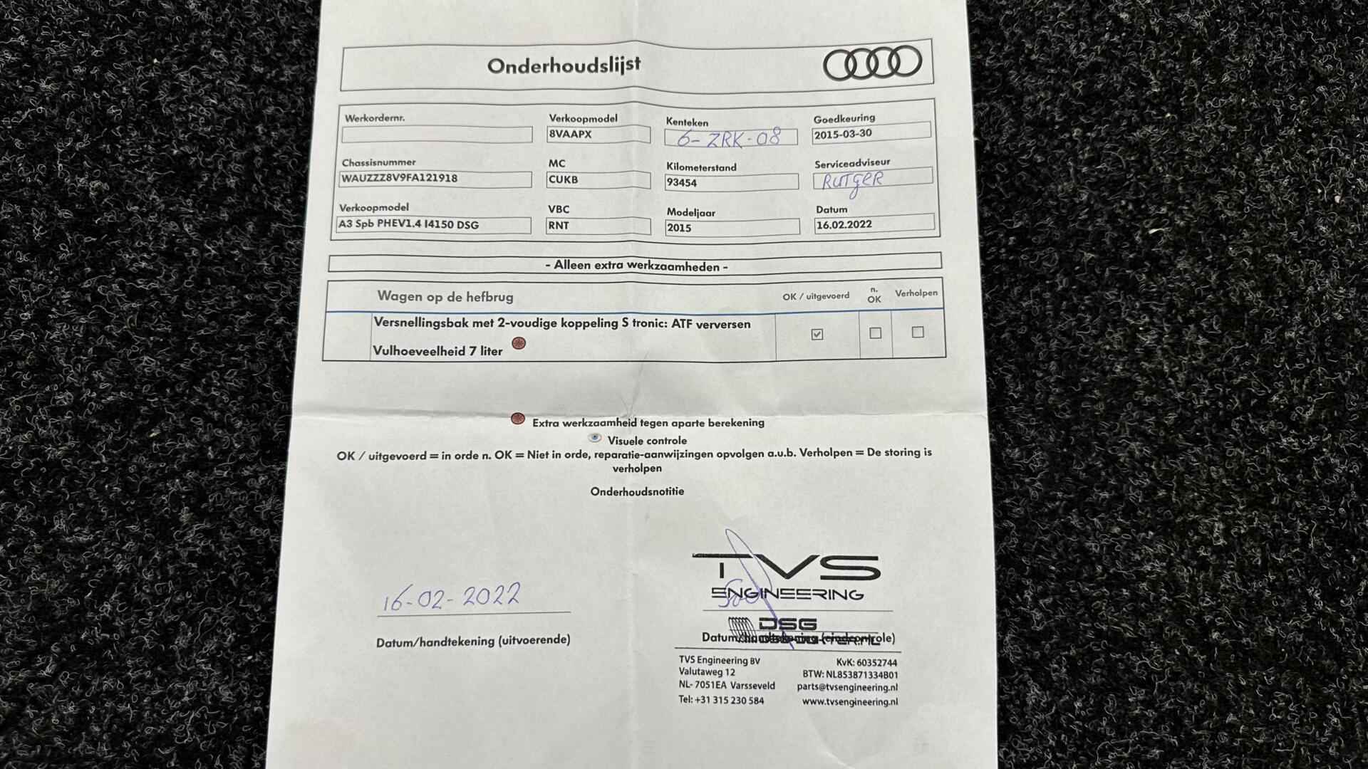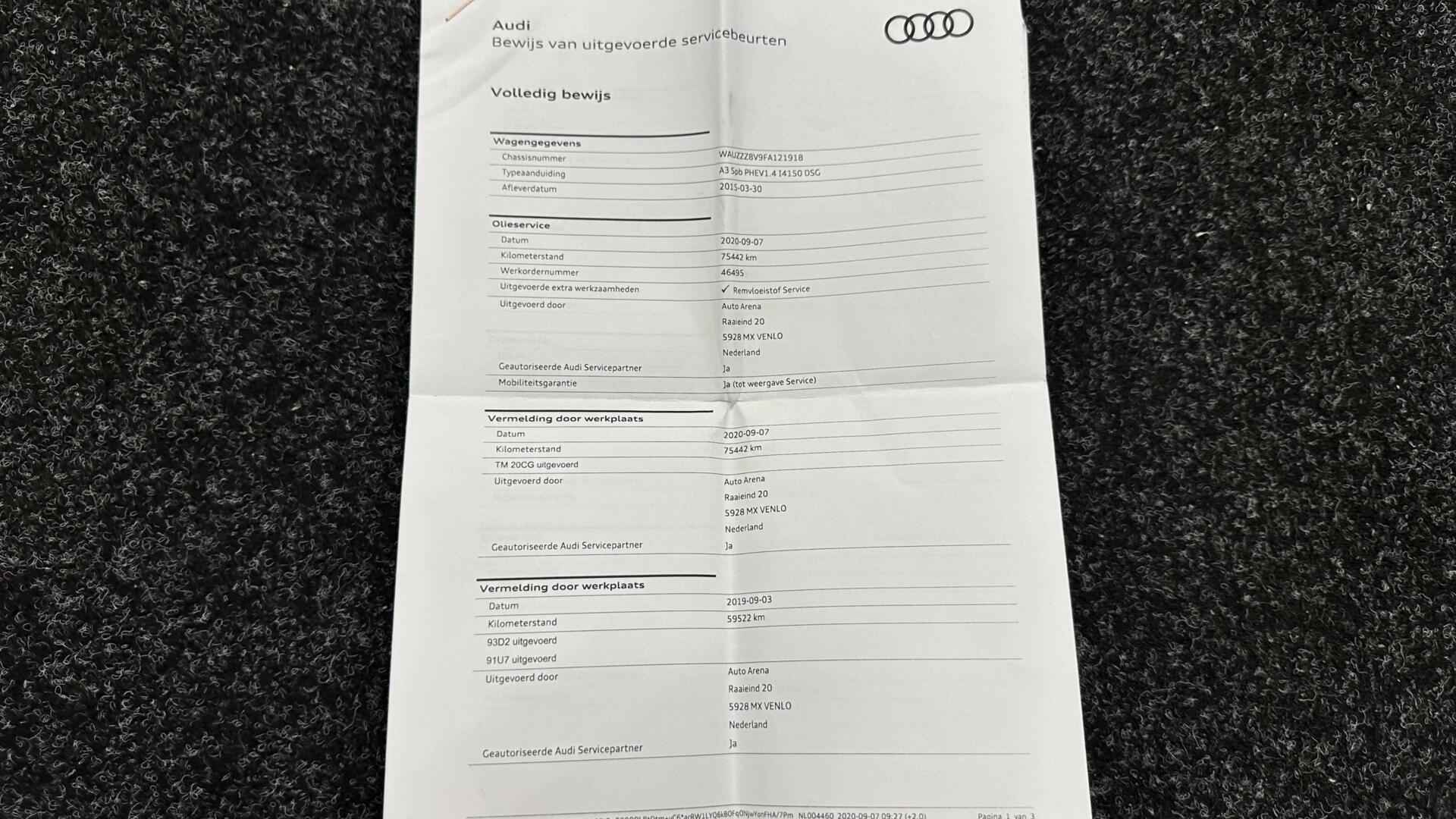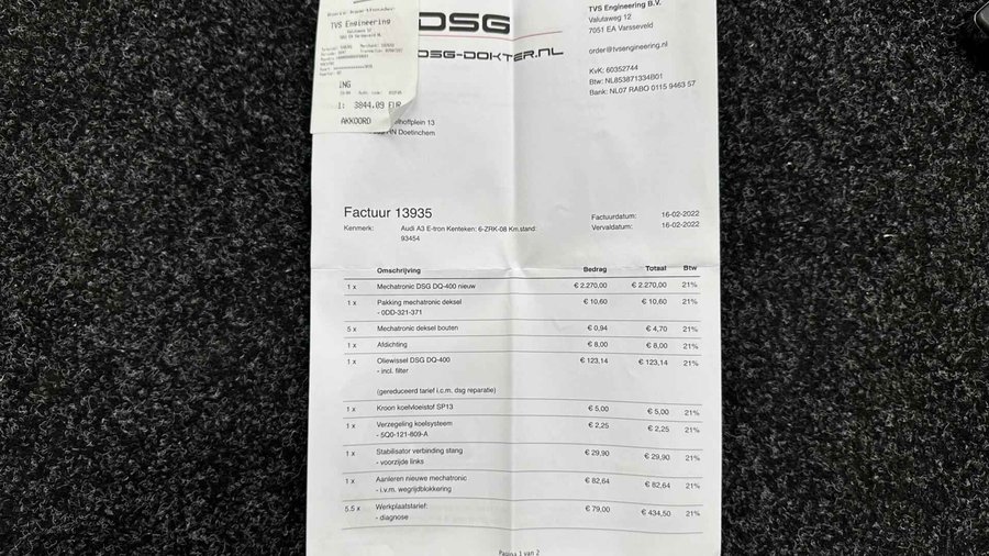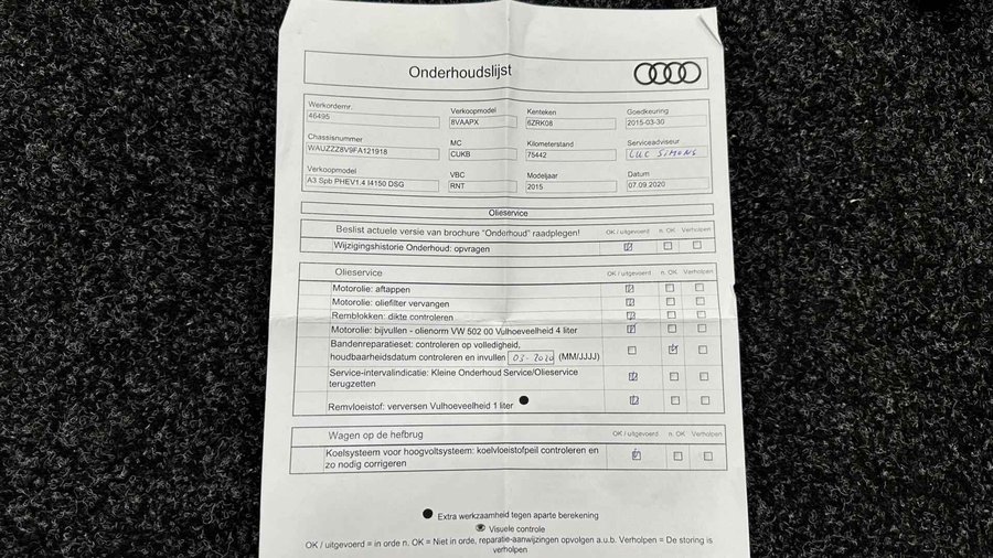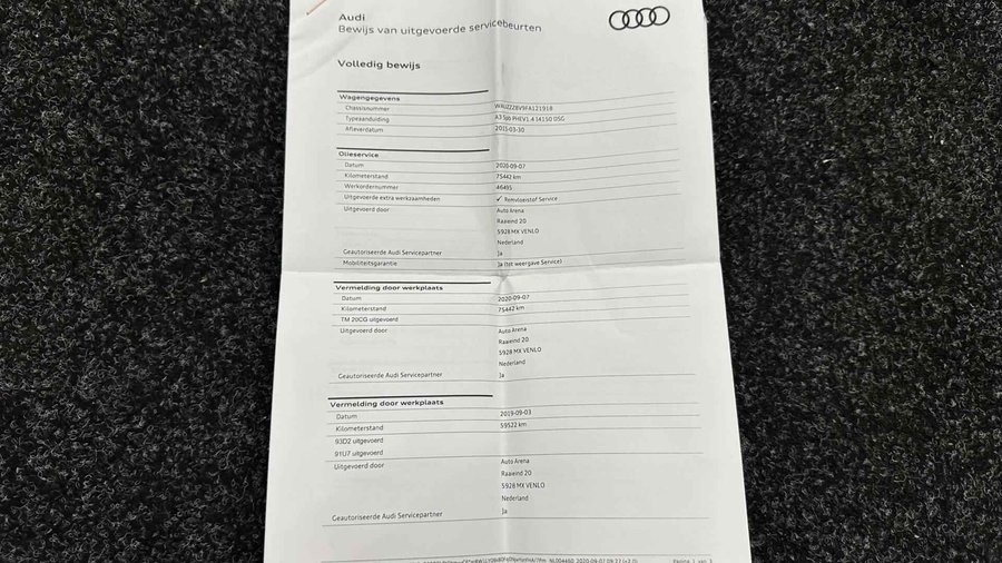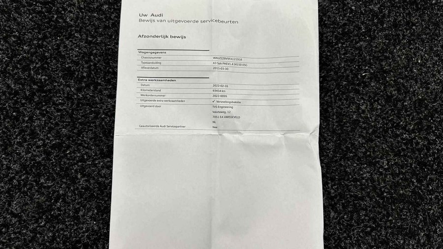 Audi A3 Sportback 1.4 e-tron PHEV Attraction Pro Line plus PANO CRUISE NAVI ECC LM. - Kenteken: 6-ZRK-08 - Merk: Audi - Model: A3 Sportback - APK tot: 28-02-2027 - Tellerstand: 154714 KM - Carrosserievorm: Hatchback - Aantal deuren: 5 - Brandstofsoort: Hybride (Elektrisch/Benzine) - Bouwjaar: 2015 - Transmissie: Automaat - Kleur: grijs - Bekleding: Stof - Kleur interieur: zwart - Motorinhoud: 1395 cc - Aantal cilinders: 4 - Motorcode: CUK - Vermogen: 110 kW / 150pk - Ledig gewicht: 1515 kg - Aantal zitplaatsen: 5 - Verbruik: 1.5 l/100 km - BTW/Marge: Marge, de BTW is niet aftrekbaar - Aantal sleutels: 2 - Onderhoudshistorie aanwezig: Ja - Motorrijtuigenbelasting: € 177 - 193 per kwartaal - Emissieklasse: Euro 6 Comfort - Boordcomputer - Cruise control - Regensensor Exterieur - Achterruitwisser - Buitenspiegel rechts - Buitenspiegels elektrisch verstelbaar - Buitenspiegels verwarmbaar - Centrale vergrendeling met afstandsbediening - Dakrails - Dakspoiler - Dimlichten automatisch - Elektrisch glazen panorama-dak - Extra getint glas achter - Glazen schuifdak - Keyless entry - Koplampen adaptief - Koplampreiniging - LED achterlichten - LED koplampen - Lichtmetalen velgen 17" - Metaalkleur - Panoramadak - Park Distance Control - Parkeersensor achter - Speciale kleur - Sportonderstel - Sportvelgen - Warmtewerend glas Infotainment - Audio installatie - Multimedia-voorbereiding - Navigatiesysteem full map - Radio-CD/MP3 speler - Stuur multifunctioneel - WiFi Interieur - Achterbank in delen neerklapbaar - Airco (Automatisch) - Aluminium interieur afwerking - Armsteun voor - Electronic climate control - Elektrische ramen voor en achter - Microvezel bekleding - Middenarmsteun voor - Sportstoelen - Sportstuur - Stuur leder - Stuurbekrachtiging - Voorstoelen in hoogte verstelbaar Milieu - Start/stop systeem Overige - Anti Blokkeer Systeem - Anti doorSlip Regeling - Bestuurdersairbag - Bluetooth - Brake Assist System - Connected services - Elektronisch Sper Differentieel - Elektronisch Stabiliteits Programma - Hoofd airbag(s) achter - Hoofd airbag(s) voor - Knie airbag(s) - Oplaadmogelijkheid - Passagiersairbag - Zij airbag(s) voor Veiligheid - Achteruitrijcamera - Alarm klasse 1(startblokkering) - Alarmsysteem - Bandenspanningscontrolesysteem - Isofix bevestiging voor kinderzitjes Met zijn ruimte en zijn prestaties is dit de auto die bij u past. Elektrisch rijden: zuinig, goedkoop en schoon. Maar soms net wat beperkt als het gaat om afstand. Daarom heeft deze hybride Audi A3 Sportback zowel een verbrandingsmotor als een elektromotor. Als dat geen perfecte combi is! Goeie looks? Jazeker! Maar de sportstoelen zorgen ook voor een goed gesteunde en comfortabele zit. Daglicht valt vrij binnen door het elektrisch bediende glazen panoramadak. Verder is de Audi uitgerust met: 17 inch lichtmetalen velgen, LED koplampen, sportonderstel, warmtewerend glas, dakspoiler en in delen neerklapbare achterbank. Comfortabel en veilig achteruitrijden gaat gemakkelijker dan ooit met behulp van de achteruitrijcamera. Functies activeren en storingen opsporen? Bij deze auto gaat het eenvoudig via uw smartphone. Overal en altijd. U kunt het audio-installatiesysteem en het full map navigatiesysteem bedienen met de knoppen op het stuur. Het spreekt voor zich dat een auto als deze ook van automatische airconditioning is voorzien. Om de veiligheid onderweg te verhogen, heeft deze Audi zowel een automatisch inschakelbare verlichting als een regensensor aan boord, zodat hij zelf de verlichting en de ruitenwissers kan inschakelen. De Audi is standaard voorzien van: WIFI-hotspot, cruise control, sportstuurwiel, keyless entry, isofix-aansluiting en centrale deurvergrendeling met afstandsbediening. De nieuwste veiligheidssystemen komen in deze Audi A3 Sportback samen. Een noodsituatie? Dan is remmen cruciaal. Daarom heeft deze Audi A3 Sportback Brake Assist als remondersteuning. Klinkt dit allemaal aantrekkelijk? Maak dan een afspraak met onze verkoper! U kunt deze deze auto financieren vanaf €259,00 per maand. Voor meer vragen of informatie kunt u ons altijd bellen mailen of smsen. Kijk ook eens naar onze andere voordelige advertenties. Onze garantie/rijklaar pakketten Instapgarantie (€399,-) Auto's van 10 - 15 jaar oud en tot 175.000 km. Inclusief: 12 maand garantie. Nieuwe APK. Algehele check. Kleine onderhoudsbeurt. Excellent garantie (€499,-) Auto's tot 10 jaar oud en tot 175.000 km. Inclusief: 12 maand garantie. Nieuwe APK. Algehele check. Kleine onderhoudsbeurt. Excellent plus garantie (€699,-) Auto's tot 10 jaar oud en tot 175.000 km. Inclusief: 12 maand garantie. Nieuwe APK. Algehele check. Grote onderhoudsbeurt. Exclusive garantie (€1499,-) Speciaal voor onze exclusives. Auto's tot 10 jaar oud en tot 175.000 km. Inclusief: 12 maand garantie Nieuwe APK. Algehele check Inclusief onderhoudsbeurt. Onze advertenties worden met grote zorgvuldigheid op het internet geplaatst. Mocht er onverhoopt toch een fout in staan, dan kan hieraan geen rechten worden ontleend.  Financiering is mogelijk. Whatsapp ons op:  06-552 318 32 RTO autoservice Zuiderdiep 408 7876 AW Valthermond 0599 72 70 12 info@rtoautoservice.nl www.rtoautoservice.nl/