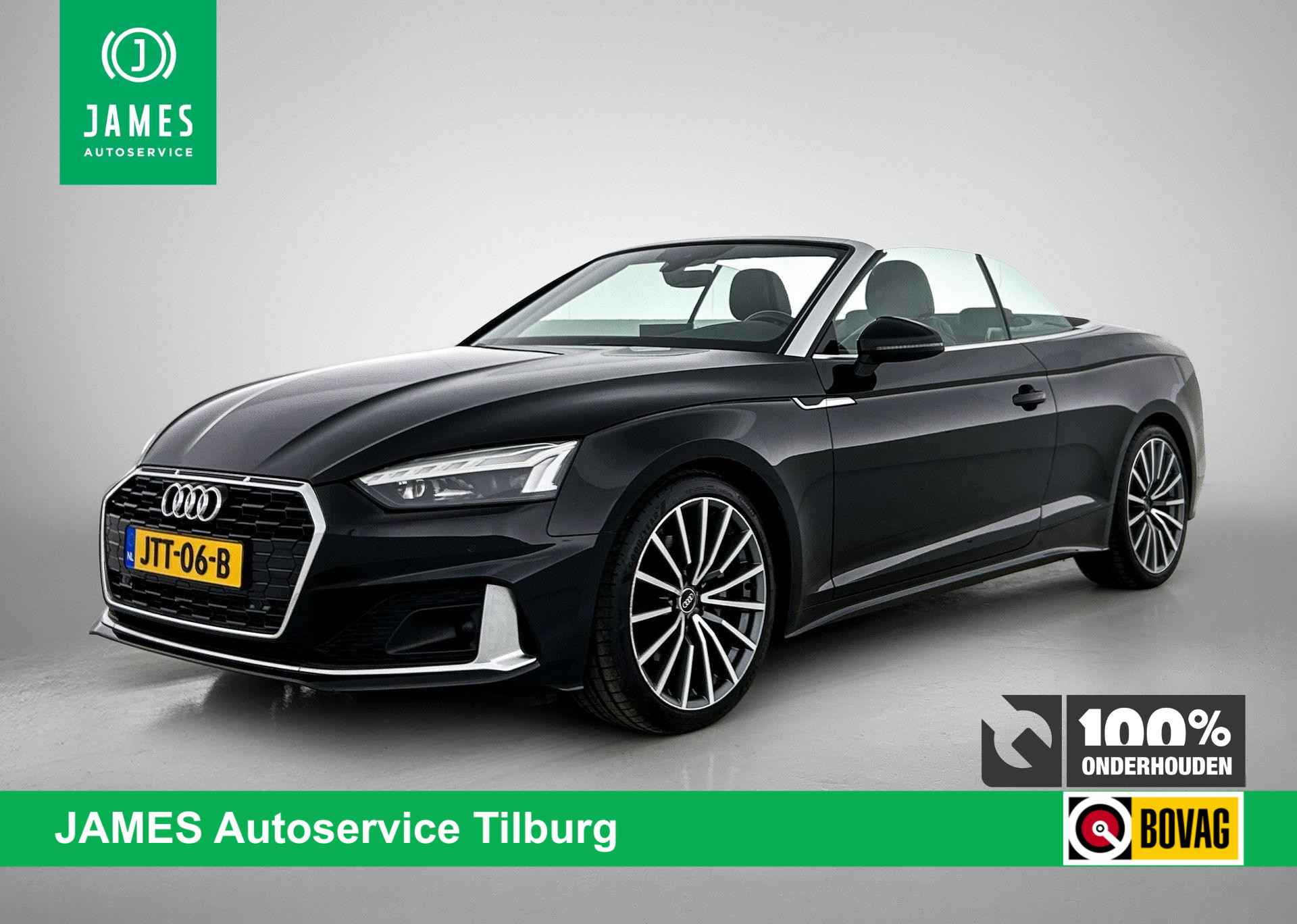 Zijn dynamische uiterlijk maakt al direct duidelijk wat voor rijervaring u van deze Audi A5 Cabriolet mag verwachten: pure sportiviteit. Hij heeft een benzinemotor en een automatische transmissie. Het lederen interieur ademt luxe, en het zit uiteraard fantastisch. Een weldaad voor uw rug en die van uw bijrijder: deze Audi A5 Cabriolet heeft verwarmbare voorstoelen met massagefunctie. Chauffeur en bijrijder zitten stabiel in de scherpe bochten door de sportstoelen. Met het elektrisch bedienbare dak verandert u deze cabrio in luttele seconden in een auto voor zonaanbidders. Met matrix LED-verlichting rijdt u eigenlijk altijd met groot licht, dus maximaal zicht. Toch is verblinden er niet bij, want het systeem regelt de verlichting zo dat tegenliggers er geen last van hebben. Ook 19 inch lichtmetalen velgen, sportonderstel, warmtewerend glas, LED-achterlichten, verstelbare lendensteunen en windscherm horen tot de voorzieningen op deze auto. Een gevisualiseerd overzicht van alle belangrijke functies wordt geleverd door het digitale dashboard. Spraaksturing luistert naar uw stem en bedient de belangrijkste voertuigfuncties. Communiceren met uw auto? Dat gaat via remote services. Met uw smartphone maakt u waar dan ook contact om allerlei functies te checken of te activeren. Het full map navigatiesysteem loodst u snel naar uw reisdoel. Online connectie is tegenwoordig onmisbaar. Vandaar de ingebouwde WIFI-hotspot. Deze Audi is voorzien van WIFI-hotspot, electronic climate control, draadloos opladen, DAB ontvangst, parkeersensoren achter en cruise control. In de Audi A5 Cabriolet heeft uw veiligheid en die van uw omgeving prioriteit. Belangrijk voor uw veiligheid en die van uw passagiers is de verkeersbord-detectie in deze auto. De forward collision warning geeft een botswaarschuwing als een aanrijding dreigt met een voorligger. U bent mede dankzij brake assist en bandenspanningcontrolesysteem steeds veilig onderweg. Als u nieuwsgierig bent naar deze Audi A5 Cabriolet, neem dan snel contact met ons op. Bel of WhatsApp voor meer informatie 013 590 2432. Bereikbaar tot 22.00u (Ma-Vr). JAMES Autoservice Tilburg is al meer dan 35 jaar een begrip in TILBURG en omgeving. Kijk voor meer informatie over ons bedrijf, ons aanbod auto's en meer foto’s op onze website WWW.JAMESTILBURG.NL. Informeer naar onze aflevering- en garantiepakketten vanaf 495 euro. Alle moeite is genomen om de informatie in deze advertentie zo accuraat en actueel mogelijk weer te geven. Er kunnen echter geen rechten worden ontleend aan fouten in opties & accessoire lijst.