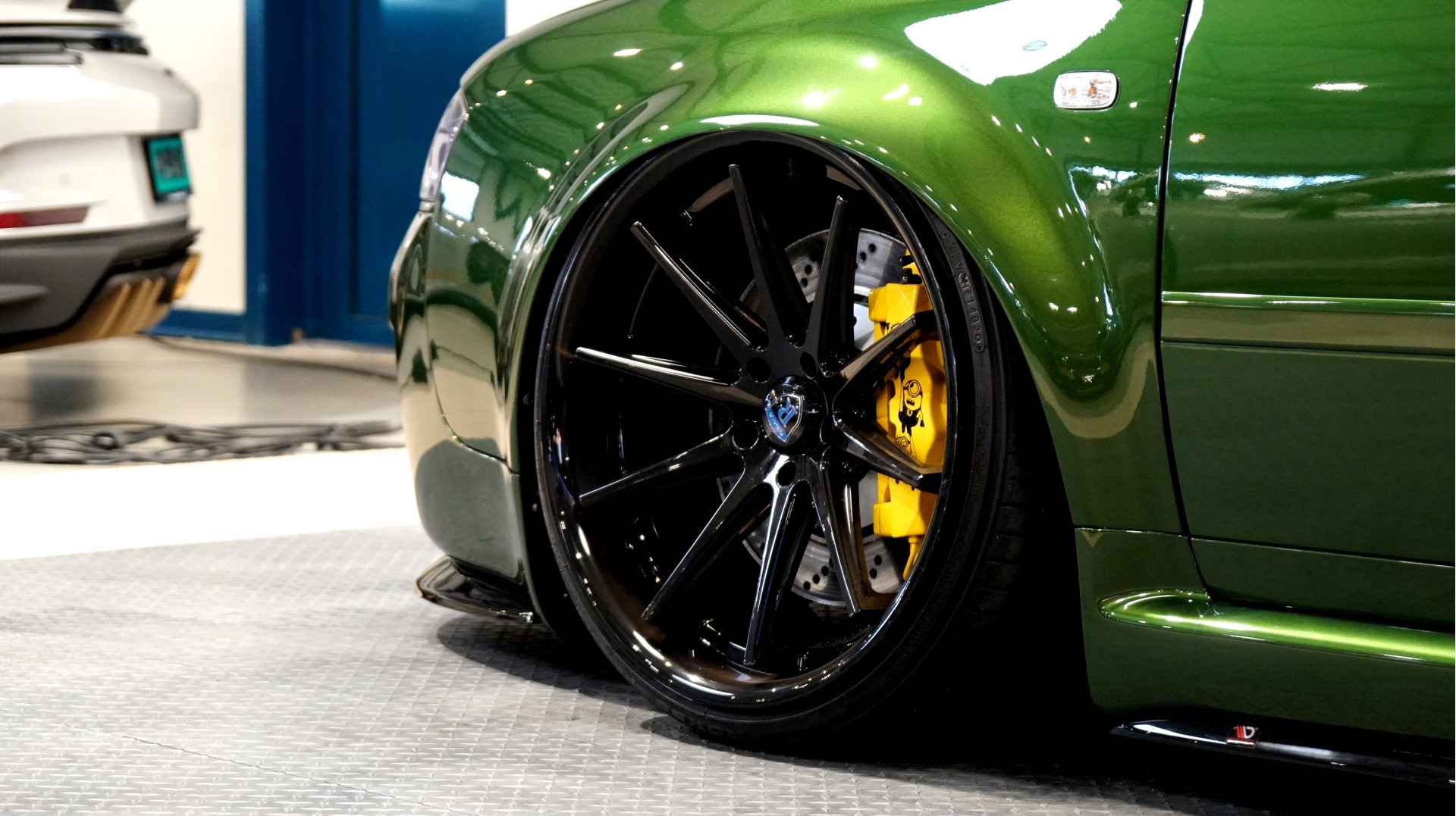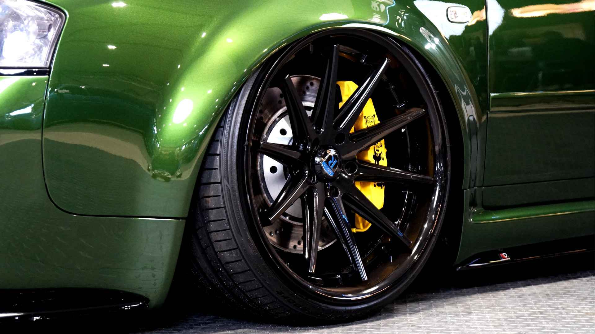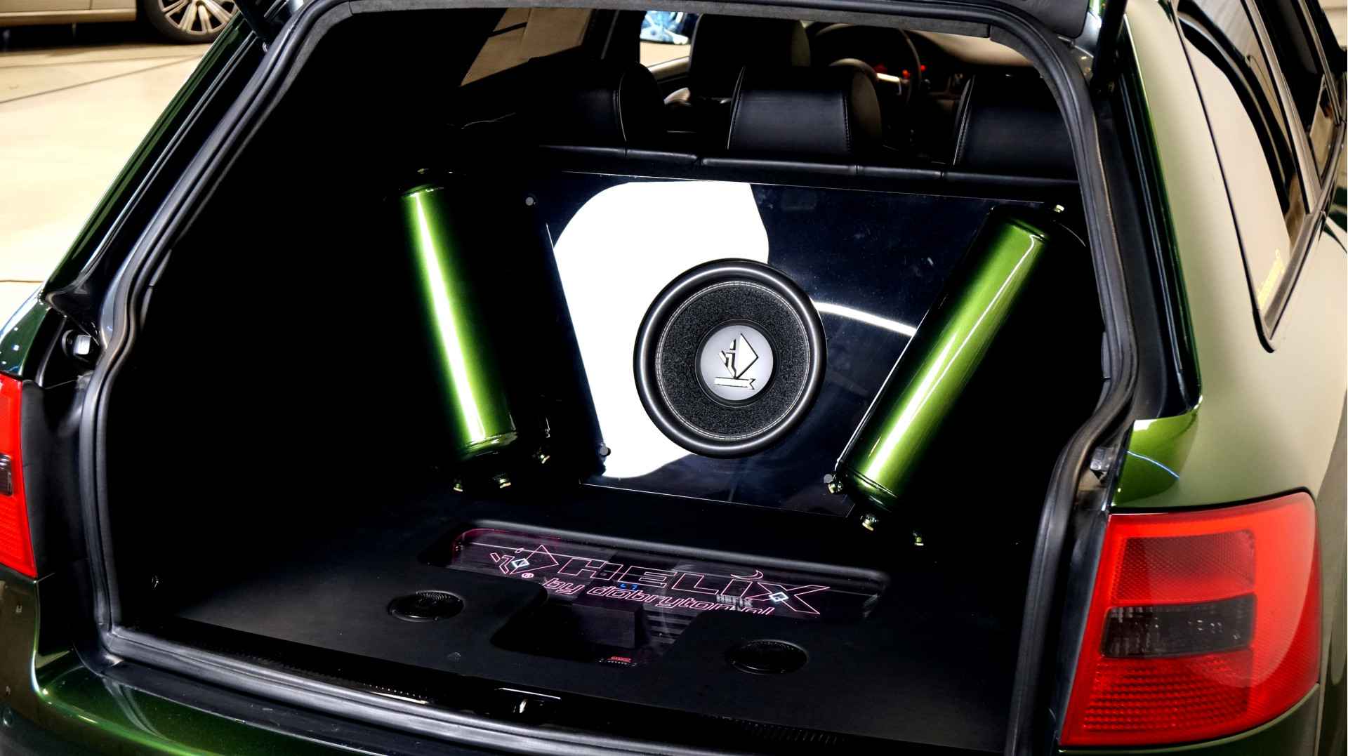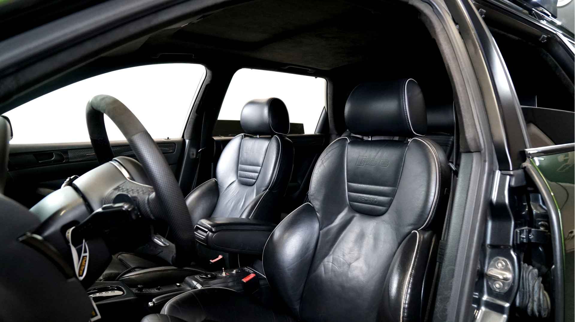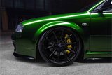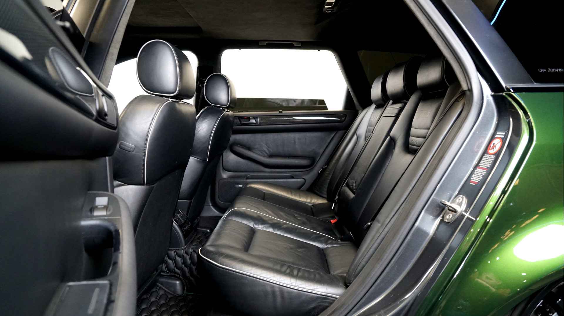 De Audi RS6 C5..... Van zichzelf al niet een onaantrekkelijke auto met prestaties die, zeker ruim 20 jaar gelegen, er niet om logen. Het is ontzettend moeilijk om over deze auto te schrijven, dit unieke exemplaar komt "live" pas echt tot zijn recht. Het is in een Europa een hele bekende auto, welke meeting heeft de auto de show niet gestolen? Kosten noch moeite werden bespaard om dit project tot dat te maken, wat wij u hier nu aanbieden. De verbouwing heeft ruim een jaar geduurd. De hele auto is zeer hoogwaardig afgewerkt en extreem goed gespoten in de prachtige diep donkergroene kleur Verde Ermes van Lamborghini. De remklauwen zijn volledig gereviseerd en in geel gespoten met daarop een leuke Mignon cartoon met een knipoog! Toen kwam het interieur. Het vervangen van alle originele geluidssystemen, vervangen van multimedia station, geluiddemping en plaatsen van een waanzinnige Helix geluidsinstallatie in de kofferbak. Tevens zijn de binnenbekleding van de portieren volledig vervangen en voorzien van isolatie en dubbele Helix speakers. In de A-stijl zijn de tweeters opgenomen. Ook deze zijn volledig geïntegreerd en perfect afgewerkt in alcantara. De ramen zijn getint, alsook de koplampen en achterlichten. Toen is de professionele airride pneumatische vering geplaatst, de spoilers en skirts van Maxton Design en de RGB LED-verlichting. De Thule bagage-box is geheel in stijl meegespoten en is ideaal. Als je een weekend meeting gaat bezoeken is het perfect om spullen mee te nemen en het geeft het geheel natuurlijk een zeer opvallende look. Nu de wielen, dat was ook een uitdaging! Gekozen is voor Rohana velgen vanwege het woeste karakter en de uitstraling. Alle gelakte elementen, alsook ramen en velgen, werden beschermd met een zeer sterke coating. Zoek jij een echte blikvanger, die ook nog eens waanzinnig goed rijdt en klinkt? Wandel dan eens bij ons binnen en laat je verrassen door deze unieke Audi RS6 Showcar! Je bent van harte welkom in Beilen.