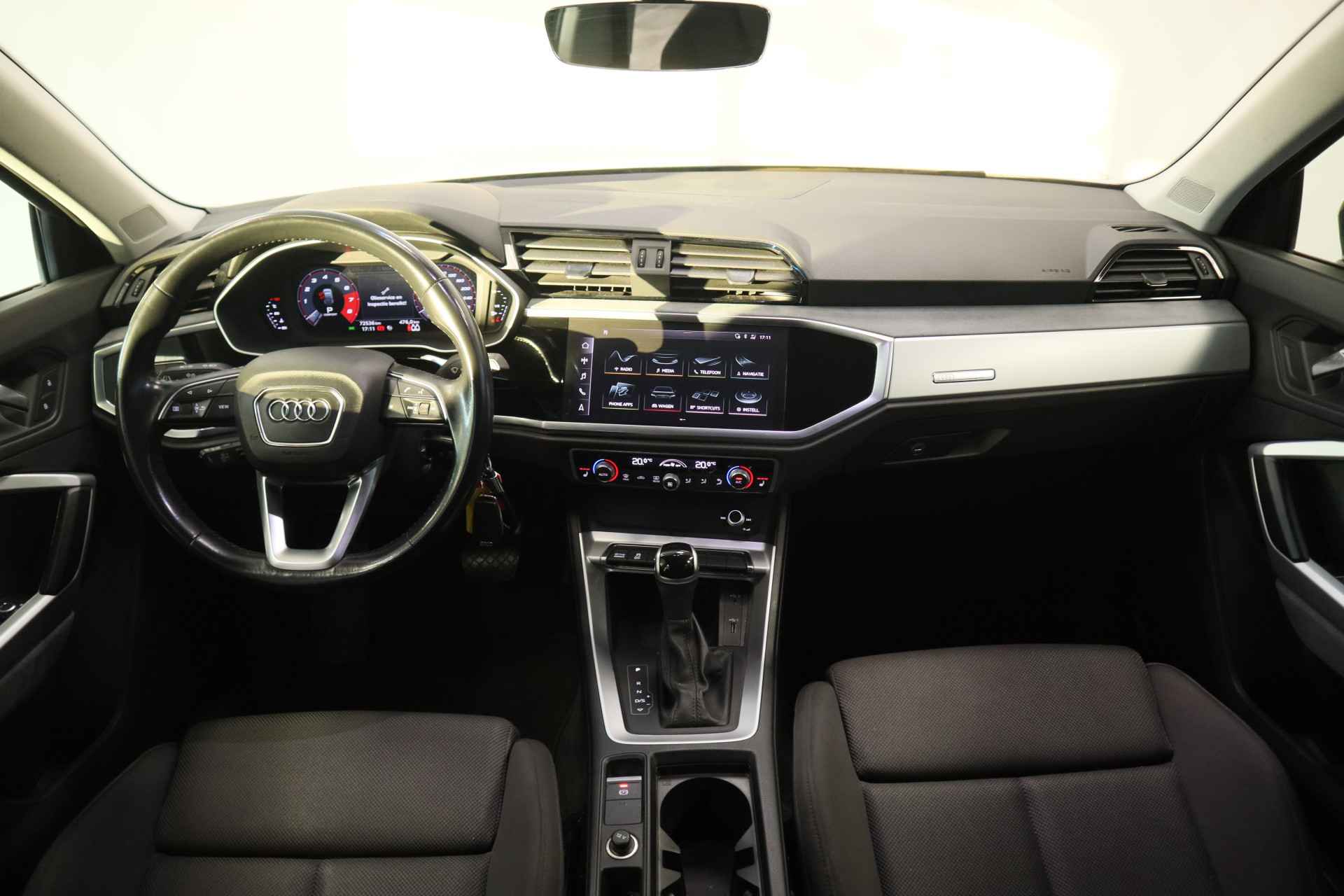Ze zeggen dat Duitsers weinig humor hebben. Toch geeft deze Audi Q3 Sportback u absoluut een brede lach op uw gezicht. Kan ook niet anders. Topkwaliteit, vooruitstrevende techniek, formidabele rijsprestaties worden hier gebundeld in één auto. Deze auto wíl gewoon gezien worden: kijk maar naar de sportieve S-Line styling. De aandrijving komt voor rekening van een benzinemotor en een automatische transmissie. De sportstoelen geven het interieur een super strakke look. De elektrische achterklep opent met een druk op de knop, zodat u gemakkelijk toegang heeft tot de bagageruimte. Tot de uitrusting van deze Audi behoren ook 18 inch lichtmetalen velgen, LED koplampen, halflederen bekleding, warmtewerend glas, in delen neerklapbare achterbank en LED-achterlichten. Pas de interface van uw cockpit moeiteloos aan. Het is mogelijk door het digitale dashboard in deze auto. Kommaar-kommaar-kommaar, aldus de achteruitrijcamera. Iedere centimeter vrije ruimte komt haarscherp in beeld. Schadevrij inparkeren maar! Kilometerstand? Oliepeil? Accuspanning? Allemaal te zien via de app. Overal. Altijd. Dankzij Connected Services. Van A naar B zonder omwegen: altijd uw eigen navigatiesysteem met harde schijf aan boord! De geïntegreerde WiFi-hotspot van deze auto is ideaal voor werk en gezin. Via de draadloze internetverbinding kunt u media streamen of internetsurfen. En dan is deze auto ook nog eens voorzien van WIFI-hotspot, electronic climate control, lederen sportstuur, regensensor, cruise control en centrale deurvergrendeling met afstandsbediening. Zoals u mag verwachten van deze Audi Q3 Sportback is hij uitgerust met een reeks aan actieve veiligheidssystemen. In het instrumentarium kunt u bovendien de verkeersborden zien die u onderweg tegenkomt. Zo helpt deze Audi u om veiliger te rijden. Indien u onbedoeld de rijstrook lijkt te verlaten, reageert het Lane-keeping systeem meteen en corrigeert. Veel aanrijdingen bestaan uit kop-staartbotsingen. De forward collision warning reduceert dat risico aanzienlijk. Bovenop deze veiligheidsfeatures heeft deze Audi bovendien hill hold functie, autonoom remsysteem en bandenspanningcontrolesysteem. Hebben we u nieuwsgierig gemaakt? Grijp dan uw kans en plan direct online een proefrit.