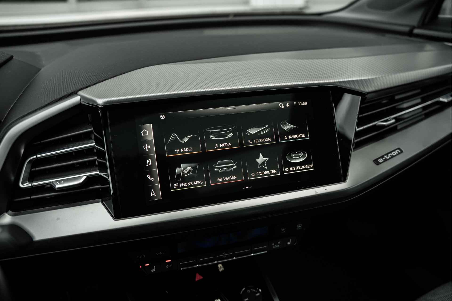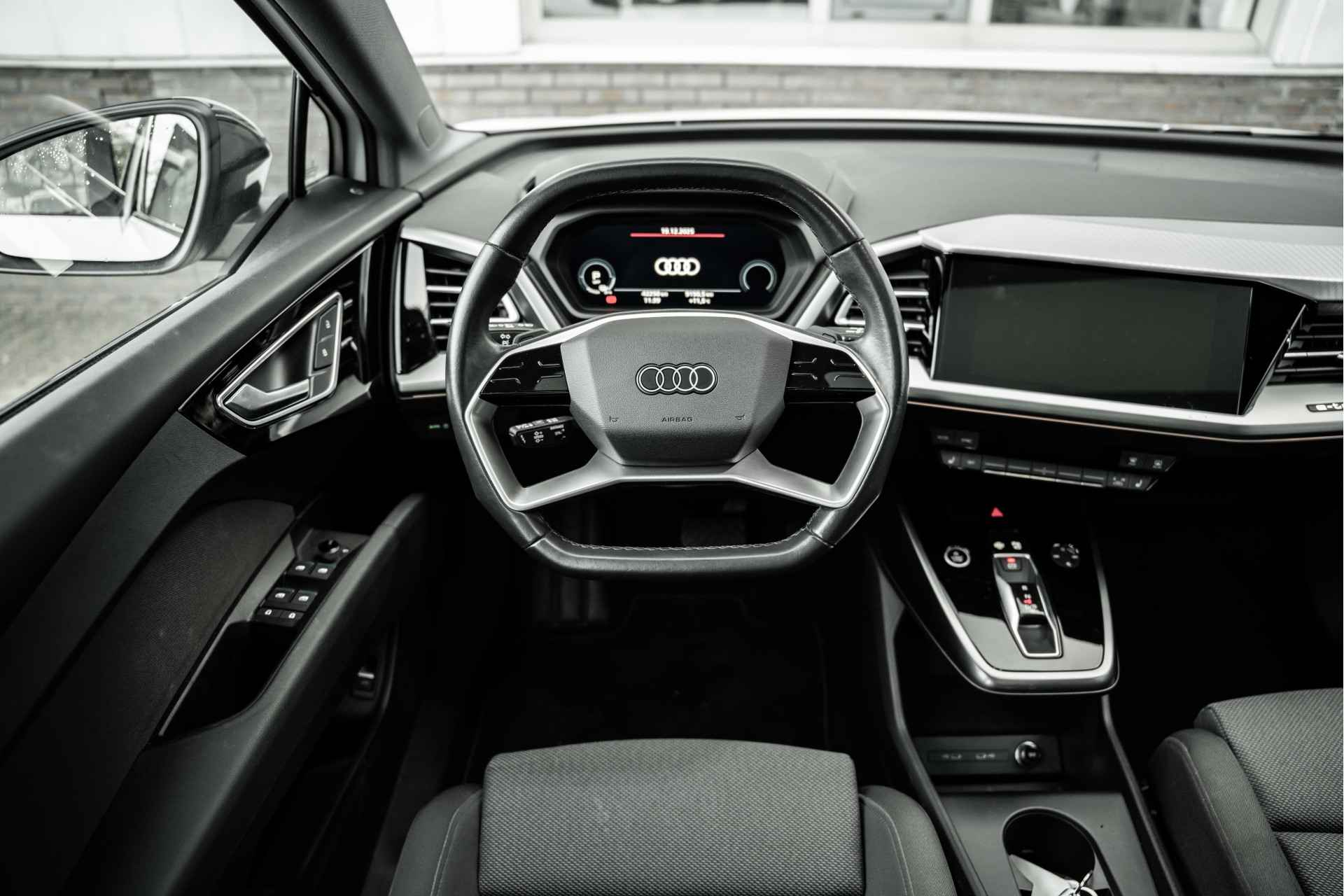 Intelligente technologie. Geen emissies en een fantastisch rijgedrag. Welkom in de Audi Q4 e-tron. Milieuvriendelijk, stil en uitstekende rijprestaties: dat zijn de voordelen van de elektromotor. De krachtige motor geeft deze Audi uitstekende prestaties. In de verwarmbare voorstoelen zitten is elke keer een welkom gevoel. Scherpe bochten, pittige acceleraties? In de sportstoelen blijft u altijd in positie. Life is easy! In ieder geval met dit elektrisch bediende glazen panoramadak. Met een druk op de knop gaat de elektrische achterklep open. De geavanceerde matrix LED-verlichting in de koplampen levert maximaal helder zicht en past zich subtiel aan zodra er een tegenligger komt. Zonder lichtkwaliteitsverlies! Bij de zeer complete uitrusting van deze auto behoren ook 19 inch lichtmetalen velgen, neerklapbare achterbank en LED-achterlichten. Met het digitale dashboard kunt u de cockpit-interface naar uw voorkeur instellen. Bij het inparkeren hoeft u het laatste stukje niet te gokken: de achteruitrijcamera kijkt voor u uit. Adaptive cruise control houdt de ingestelde snelheid vast en houdt afstand tot het voertuig voor u. De conditie van deze auto is 24/7 inzichtelijk dankzij Connected Services. Het infotainmentaanbod is zeer uitgebreid. Ontspannen reizen doet u met behulp van het full map navigatiesysteem terwijl u muziek afspeelt via het audio-installatiesysteem met DAB-radio. De uitrusting van deze auto is met WIFI-hotspot en automatische airconditioning behoorlijk compleet. Tijdens de rit wordt u als bestuurder ondersteund door verschillende systemen die de weg en uw omgeving in de gaten houden. Een belangrijke bijdrage aan de veiligheid onderweg levert de verkeersbord-detectie. Ongemerkt buiten de rijstrook raken? Nee hoor, het Lane-keeping systeem waarschuwt en corrigeert. Wat kunnen we verder nog zeggen? Tijd voor een elektrische proefrit! Neem contact op en maak meteen een afspraak.
