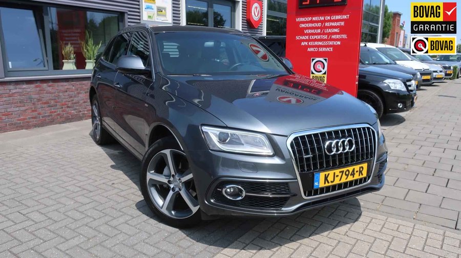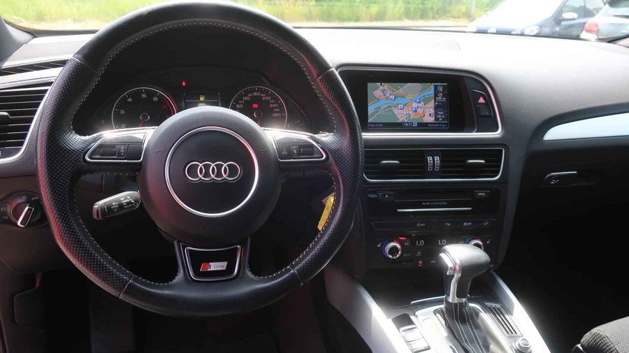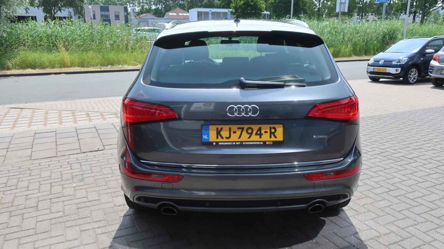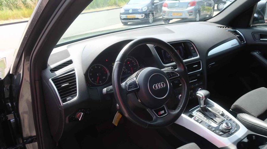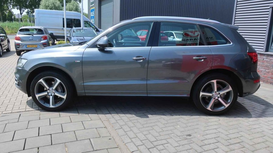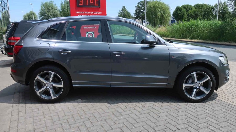 U ziet het al aan de buitenkant en u voelt het zodra u de krachtige motor start, deze sportieve Audi Q5 is gemaakt om prestaties te leveren. De aandrijving van deze Audi wordt verzorgd door een viercilinder motor en een automatische transmissie. De verwarmbare voorstoelen benadrukken nog maar eens dat we hier te maken hebben met een regelrechte verwenauto voor bestuurder en bijrijder. De bagageruimte is toegankelijk via een comfortverhogende elektrische achterklep. Dankzij de xenonverlichting profiteert u in het donker van een krachtige en heldere lichtbundel. Ook 20 inch lichtmetalen velgen, sportonderstel, aluminium dakrailing, verstelbare lendensteunen, metallic lak, verwarmde ruitensproeiers, elektrisch bedienbare ramen voor, elektrisch bedienbare en verwarmde buitenspiegels, LED-dagrijverlichting en in delen neerklapbare achterbank zijn aan boord. Harder, zachter, aan, uit, volgende track, nieuwe zender… alle audiofuncties zijn regelbaar via de audiobediening op het stuur. Selecteer uw reisbestemming en het navigatiesysteem met harde schijf brengt u snel waar u moet zijn. De automatische airconditioning zorgt voor een prettige binnentemperatuur. De elektronische systemen in deze Audi helpen u actief om comfortabeler te rijden. Een automatisch inschakelbare verlichting en een regensensor houden de omstandigheden onderweg in de gaten. Natuurlijk is er ook cruise control aan boord, waarmee u meer ontspannen en zuiniger rijdt. Natuurlijk behoren lederen stuur, automatisch dimmende binnenspiegel en centrale deurvergrendeling met afstandsbediening ook tot de uitrusting van deze complete auto. Zoals u mag verwachten van deze Audi Q5 is hij uitgerust met een reeks aan actieve veiligheidssystemen. In een gevaarlijke situatie is een zo kort mogelijke remweg van levensbelang. De Brake Assist zorgt dat u dan maximaal in de ankers gaat. Om deze auto zelf te ervaren, hoeft u alleen maar contact met ons op te nemen. Mailt of belt u ons direct?