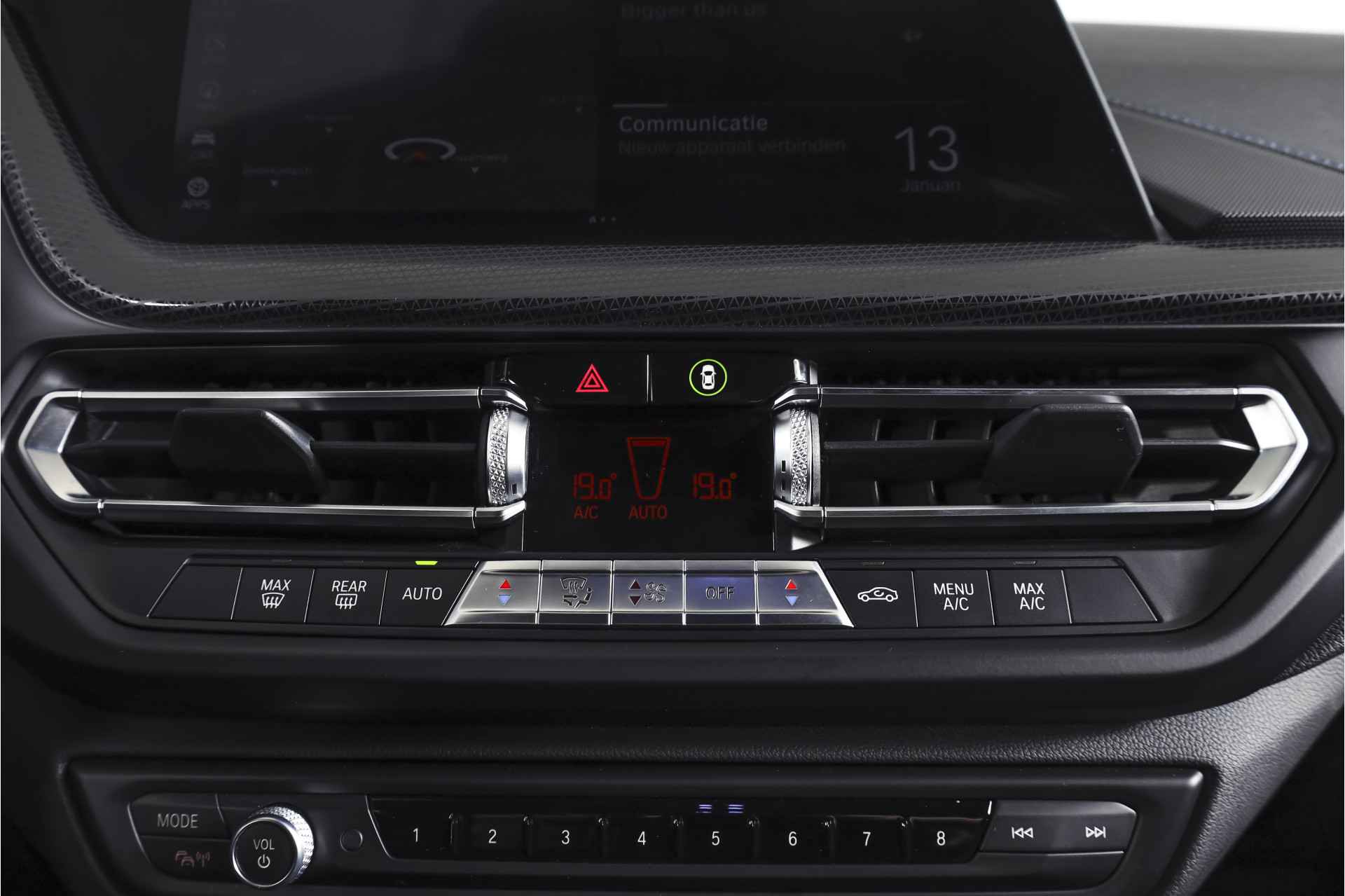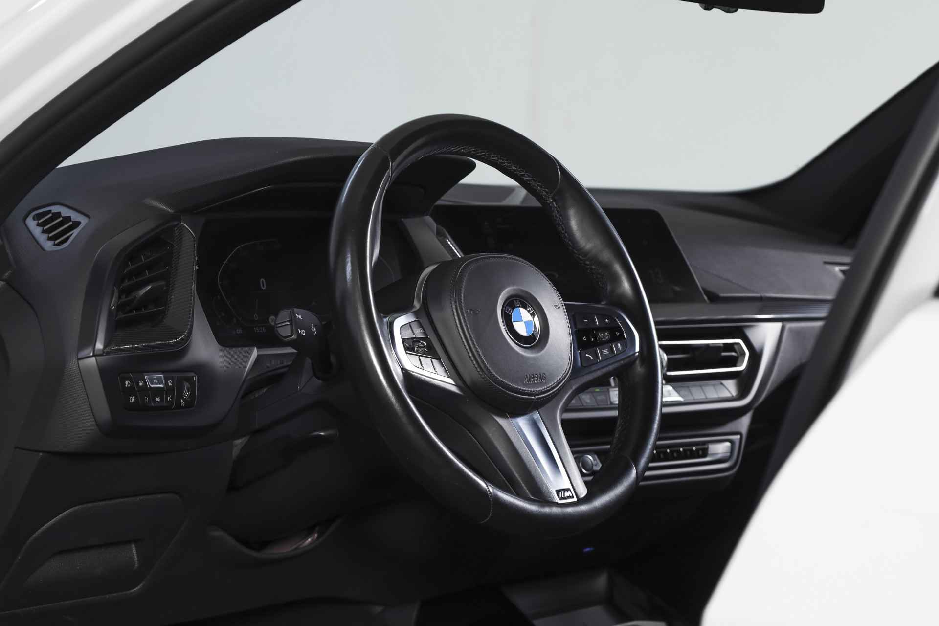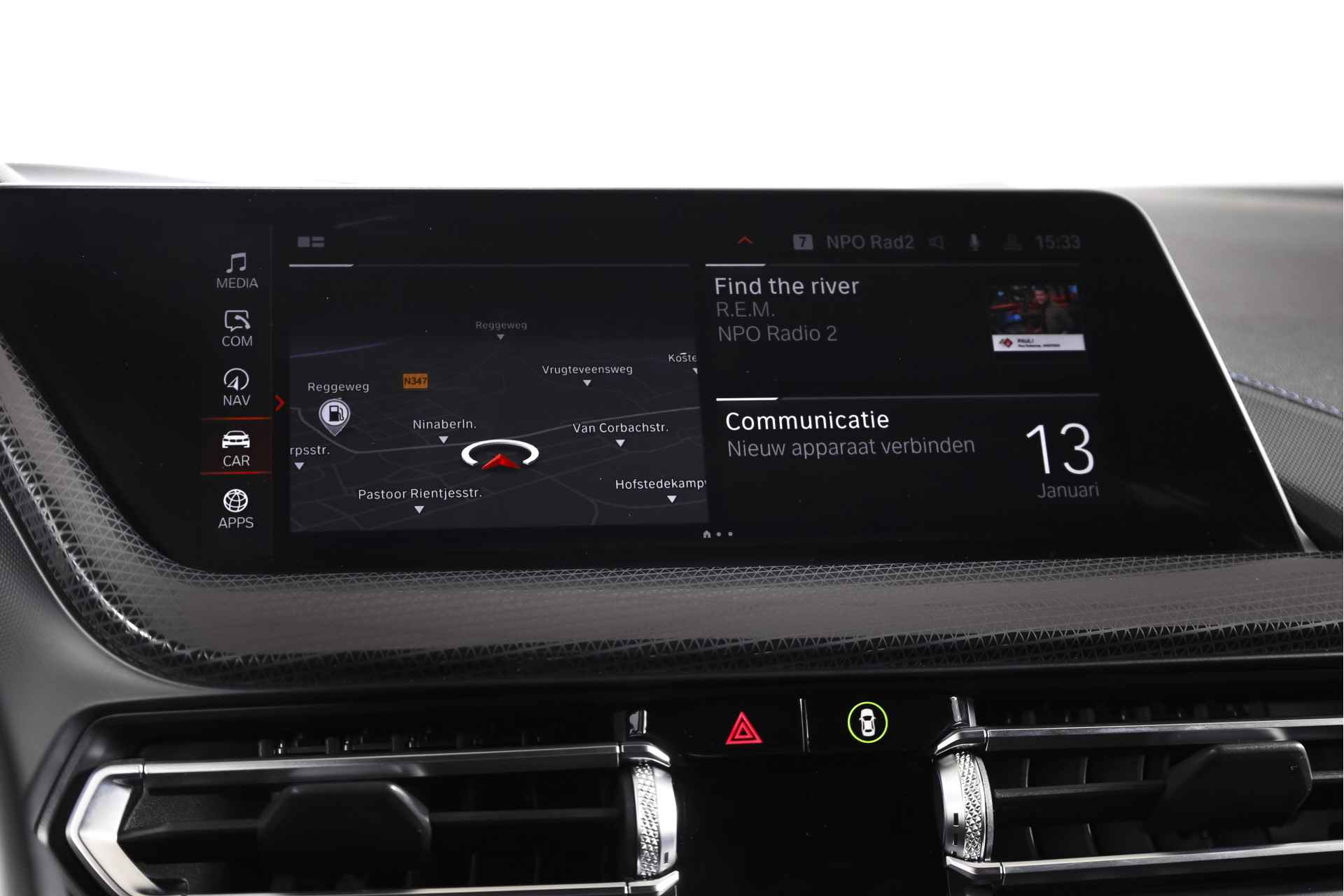 Deze BMW 1-serie 118i High Executive M Sport uit 2020 is een origineel Nederlands geleverde auto met een kilometerstand van 146.870 km. Het betreft een M Sport uitvoering, wat je direct terugziet in het sportievere M design van zowel het interieur als het exterieur. Denk aan strakkere lijnen, een dynamischere uitstraling en een interieur dat duidelijk meer gericht is op rijden en beleving. Achter het stuur valt meteen het volledig digitale instrumentenpaneel op, dat overzichtelijk en modern is vormgegeven. In combinatie met het navigatiesysteem full map en Apple Carplay/Android Auto is alle informatie en entertainment eenvoudig binnen handbereik. Dankzij DAB-radio luister je bovendien naar digitale radio met een heldere ontvangst. Het comfort is goed op orde met electronic climate control, zodat het klimaat in de auto automatisch wordt geregeld. Ook aan gemak is gedacht met cruise control voor ontspannen lange ritten en dimlichten automatisch, wat het rijden in wisselende lichtomstandigheden prettiger maakt. De LED koplampen zorgen daarbij voor een krachtige en moderne lichtopbrengst. Parkeren gaat een stuk eenvoudiger dankzij de parkeersensoren voor en achter, die helpen bij het inschatten van afstanden in krappe situaties. De auto staat op lichtmetalen velgen 18", wat het sportieve karakter extra benadrukt. Daarnaast is deze BMW uitgerust met het uitgebreide M Sport pakket, inclusief lichtmetalen velgen 17", aangepaste aerodynamica, een sportonderstel, sportstoelen en variabele stuuroverbrenging, wat samen zorgt voor een strakkere wegligging en een directer stuurgevoel. Al met al een nette, sportief uitgevoerde BMW 1-serie die rijden combineert met comfort en moderne voorzieningen, zonder overdreven beloftes maar met een duidelijke M Sport uitstraling.
