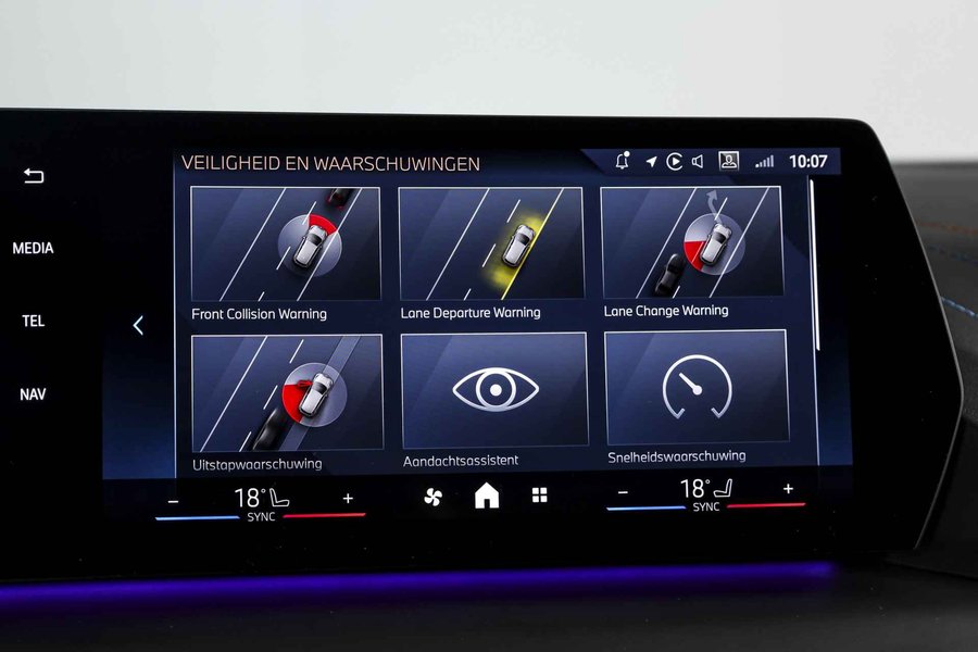 Deze auto is voorzien van innovatieve systemen die u onderweg begeleiden en beschermen. U rijdt ook veiliger omdat deze auto voor u de verkeersborden langs de weg kan lezen. De belangrijkste borden worden op uw instrumentarium geprojecteerd, zodat u ze niet kunt missen. Keep your lane? Het Lane-keeping systeem zorgt er automatisch voor. Ook als uw aandacht even verslapt, blijft de forward collision warning bij de wekker. Dreigt er een botsing met een voor- of tegenligger, dan waarschuwt het systeem direct. Met voorzieningen als dodehoekdetectie, hill hold functie, brake assist, vermoeidheidsherkenning en bandenspanningcontrolesysteem, bent u altijd veilig onderweg.