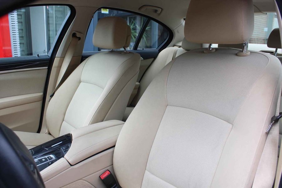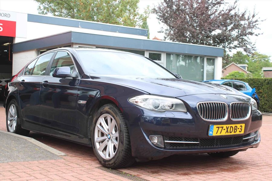 Het is een nette en comfortabele auto, deze BMW 5-Serie (f10). Hij heeft 140774  kilometer gelopen, de onderhoudsgeschiedenis is bekend. Met zijn benzinemotor en automatische transmissie is dit een prima auto voor nog vele kilometers. In deze BMW profiteert u onder andere ook van: 17 inch lichtmetalen velgen, adaptief knipperend remlicht, elektronische parkeerrem met auto-hold functie, witte knipperlichten, groen getint glas en verwarmde ruitensproeiers. Een veiligheidsverhogende optie waarmee u comfortabel onderweg bent. De auto is ook uitgevoerd met automatische airconditioning. De parkeersensoren waarschuwen wanneer u te krap inparkeert of dat ene paaltje niet hebt gezien. Deze BMW 5-Serie (f10) maakt het rijden graag gemakkelijk. Daarom verzorgt de regensensor de mate van ruitreiniging die de ruitenwissers moeten leveren bij neerslag. Ook is de BMW uitgerust met: navigatiesysteem, multifunctioneel lederen stuur, buitentemperatuurmeter, isofix-aansluiting, centrale deurvergrendeling met afstandsbediening en toerenteller. Zoals u mag verwachten van deze BMW 5-Serie (f10) is hij uitgerust met een reeks aan actieve veiligheidssystemen. Een tekort aan lucht in de banden is niet alleen riskant, maar ook duur. Het bandenspanningscontrolesysteem behoedt voor onnodige kosten en risico's. Is uw nieuwsgierigheid gewekt? Bel ons dan snel om deze auto te komen bekijken.