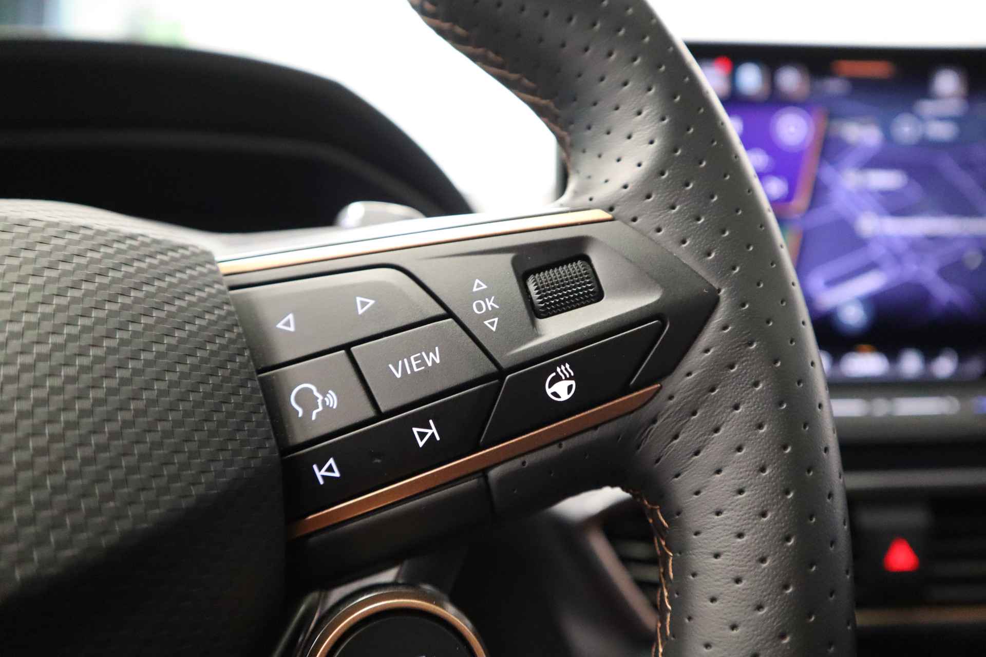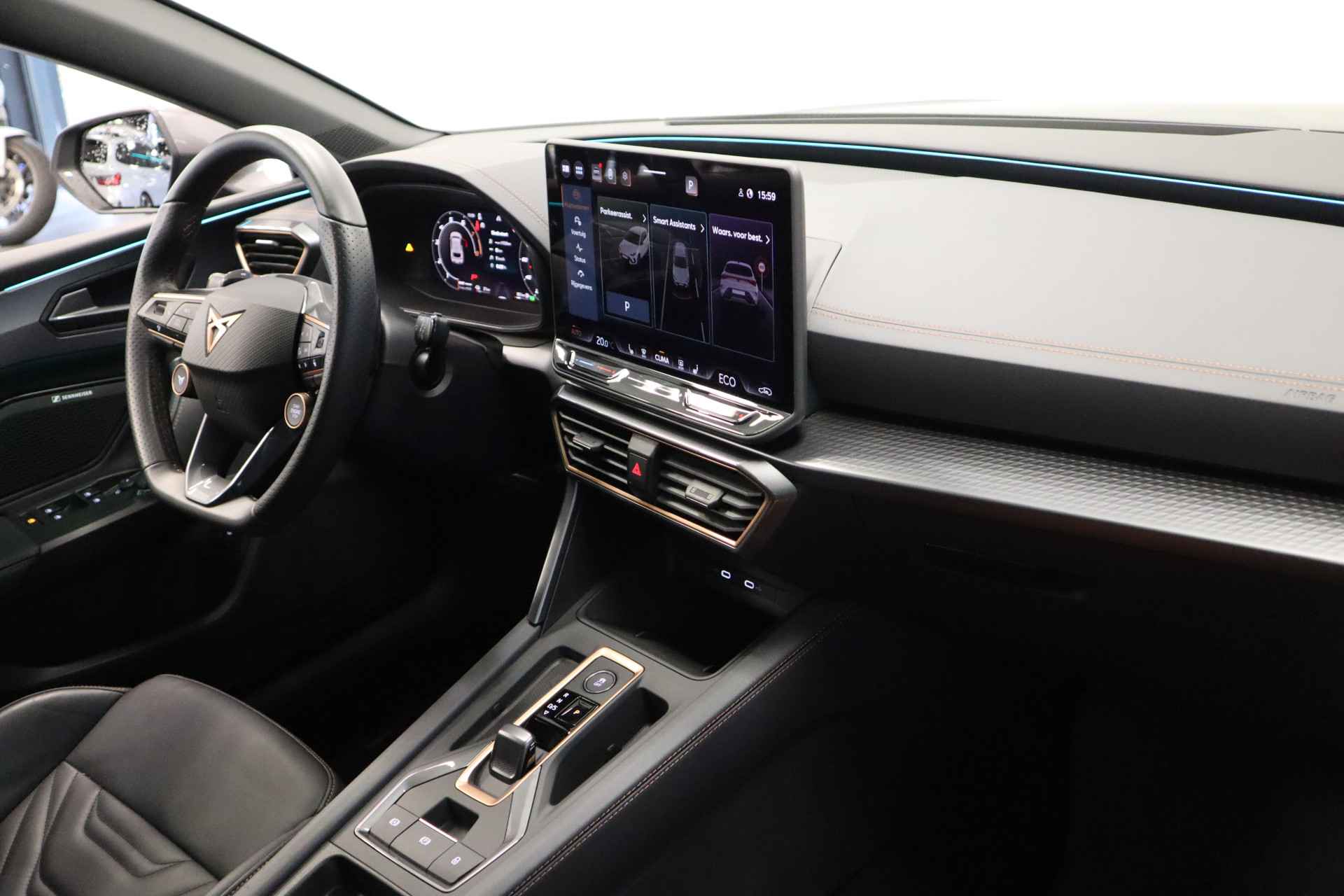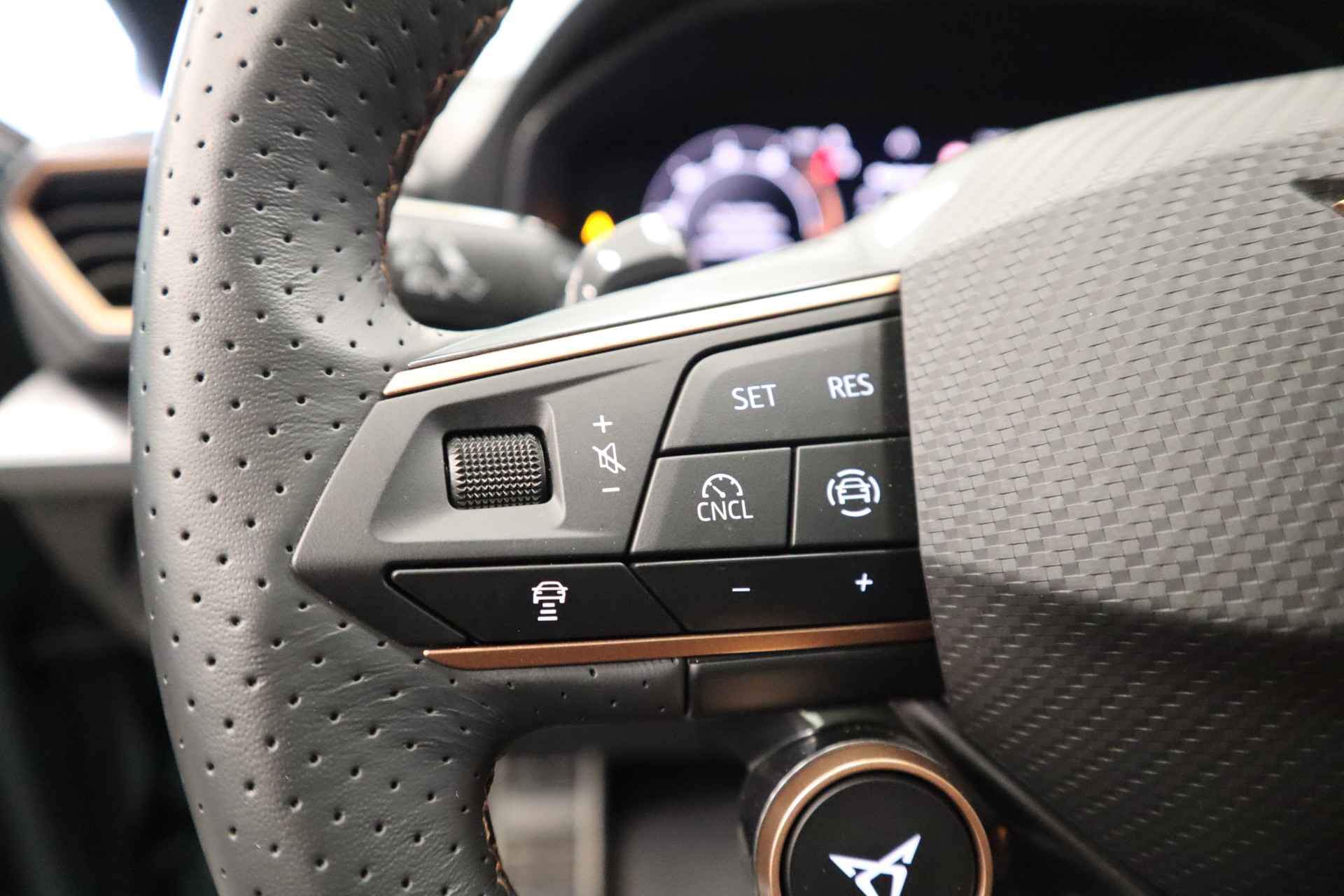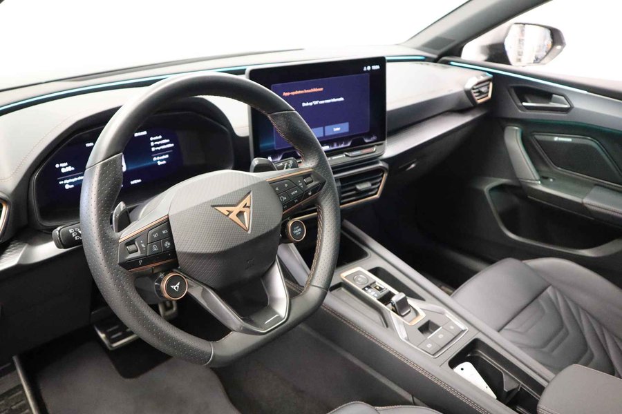 De CUPRA Leon, zoals dit exemplaar uit 2025, valt op door de combinatie van zijn ingetogen design, zijn ruime interieur en zijn uitstekende rijeigenschappen. Deze auto heeft 14772 kilometer gelopen. Deze CUPRA Leon is voorzien van een hybride motor. Dat betekent dat de aandrijving wordt geleverd door zowel een brandstofmotor als een elektromotor, die slim samenwerken om zuinig over de weg te gaan. Stoelverwarming maakt deel uit van de rijke uitrusting van deze auto. Zicht, licht en toch dicht! Een geweldige rijervaring met het glazen panoramadak. De matrix LED-verlichting is het allernieuwste op het gebied van autoverlichting. Altijd maximaal licht op de weg, zonder tegenliggers te hinderen! Verder is de CUPRA uitgerust met: adaptief dempingsysteem, donker getint glas achter, in delen neerklapbare achterbank, LED-achterlichten, verstelbare lendensteunen en snelheidsafhankelijke stuurbekrachtiging. Met het digitale dashboard heeft u essentiële info in beeld. Altijd, overal. Ongelukken of parkeerschade? Dat gebeurt u niet meer, met de achteruitrijcamera. Adaptive cruise control is een comfortabele en veilige optie. Het systeem reguleert de snelheid en houdt automatisch afstand tot uw voorligger. In de file rijden vreet concentratie. Daarom komt de file assistent te hulp om veilig afstand te houden en automatisch te stoppen als uw voorligger stilstaat. Waar u zelf ook bent, u staat altijd in contact met de auto via de app op uw smartphone. Zo controleert u uiteenlopende functies, ook op afstand. Met dashboard met spraakbediening, full map navigatiesysteem, WIFI-hotspot, achteropkomend verkeer waarschuwing, electronic climate control en schakelpaddles aan het stuur is deze auto helemaal compleet. Aan boord van deze CUPRA houden verschillende geavanceerde systemen voor u de weg in de gaten. Ze waarschuwen u voor noodsituaties en kunnen in een aantal gevallen ook zelf ingrijpen. Een belangrijke bijdrage aan de veiligheid onderweg levert de verkeersbord-detectie. Deze CUPRA Leon is ook behulpzaam als het gaat om een rechte koers. Het Lane-keeping systeem signaleert en corrigeert als u onbedoeld de rijstrooklijnen dreigt te overschrijden. De forward collision warning geeft een botswaarschuwing als een aanrijding dreigt met een voorligger. Bovenop deze veiligheidsfeatures heeft deze CUPRA bovendien dodehoekdetectie, hill hold functie, vermoeidheidsherkenning, autonoom remsysteem en bandenspanningcontrolesysteem. Als dit de auto is die u zoekt, wacht dan niet langer en plan direct online een proefrit.