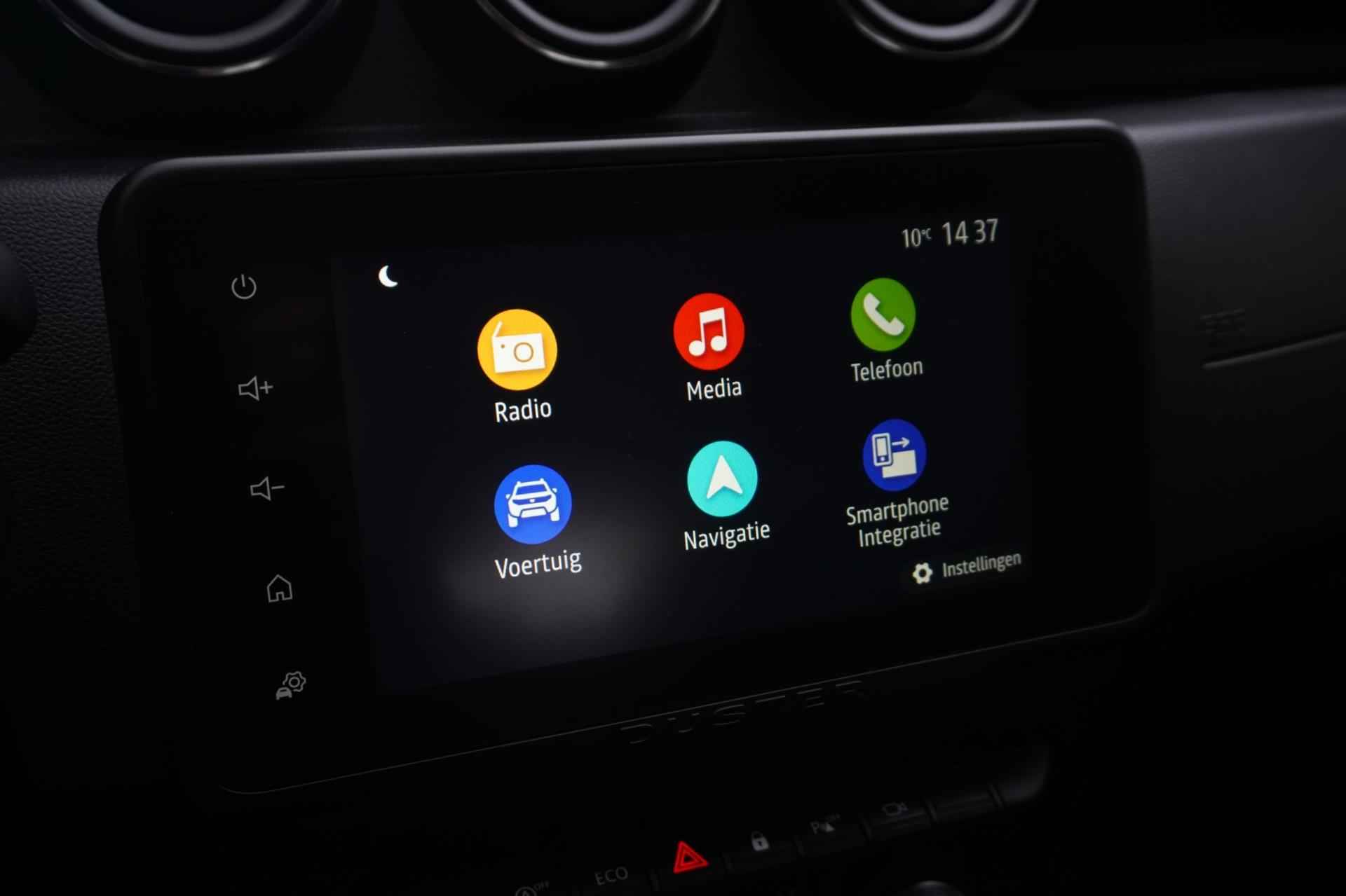 Laat u niets wijsmaken, deze Dacia Duster biedt alles wat u van een auto verlangt. De aandrijving van deze Dacia wordt verzorgd door een viercilinder motor en een handgeschakelde versnellingsbak. Tot de voorzieningen van deze auto behoren 17 inch lichtmetalen velgen, LED koplampen, warmtewerend glas, in delen neerklapbare achterbank, verstelbare lendensteunen en snelheidsafhankelijke stuurbekrachtiging. De achteruitrijcamera vergemakkelijkt achteruit inparkeren. U ziet duidelijk wat er achter de auto gebeurt. Beste route, verwachte aankomsttijd: uw eigen navigatiesysteem vertelt u alles! De climate control zorgt voor een behaaglijk klimaat in de auto. Met de audiobediening op het stuur bedient u het audiosysteem zonder uw ogen van de weg te halen. De cruise control vermindert het brandstofverbruik en vergroot het comfort. Met lederen stuur, centrale deurvergrendeling met afstandsbediening en boordcomputer is deze auto helemaal compleet. De intelligente veiligheidssystemen in deze auto waken continu over uw veiligheid. Een noodstop maken doet u liever niet. Maar áls het nodig is, geeft de Brake Assist maximale ondersteuning. Bovenop deze veiligheidsfeatures heeft deze Dacia bovendien hill hold functie en bandenspanningcontrolesysteem. Even bellen voor een afspraak en deze Dacia staat voor u klaar!