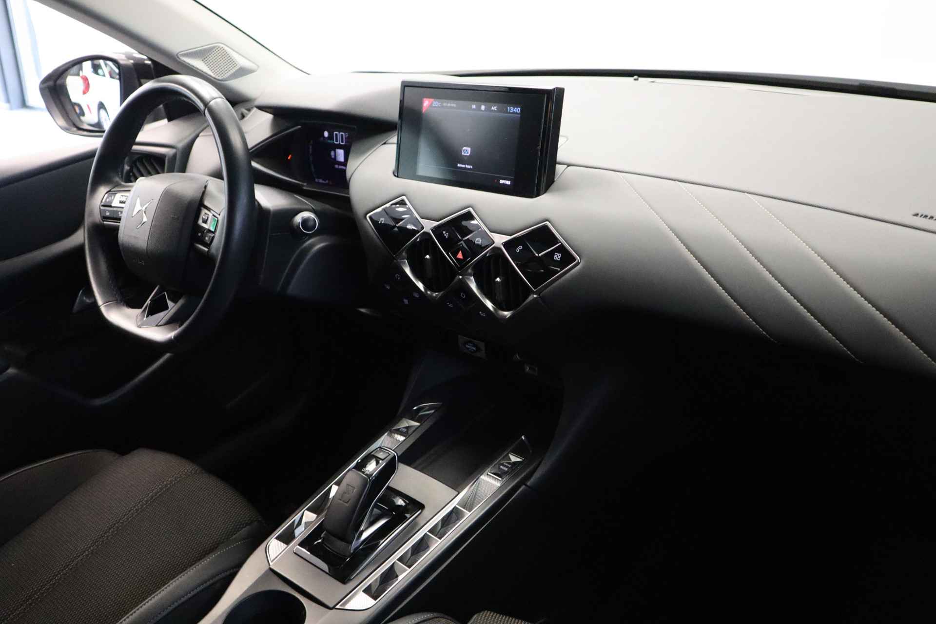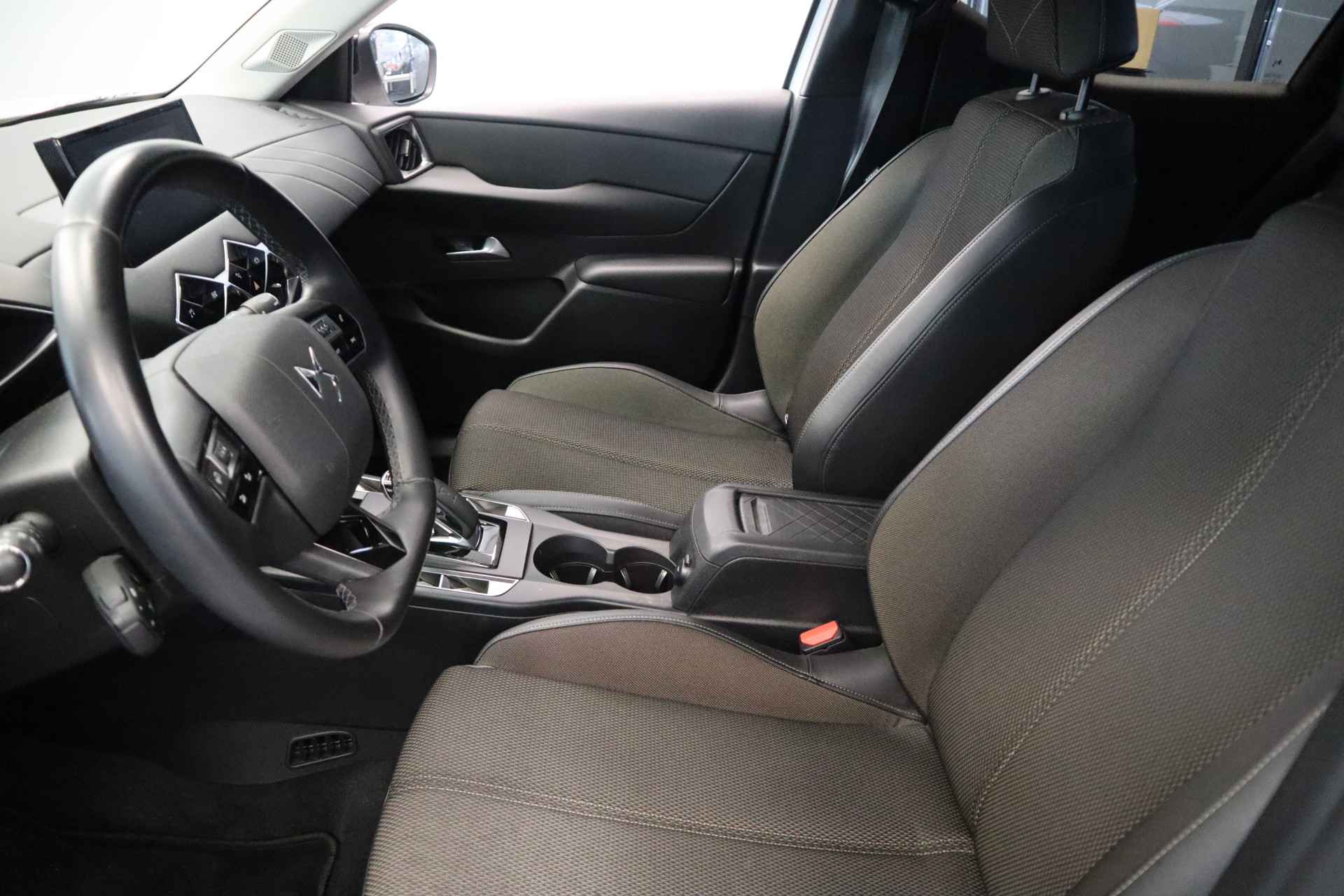Het aërodynamische ontwerp is aantrekkelijk en functioneel. Dankzij de gunstige stroomlijn haalt u met deze DS 3 Crossback meer kilometers uit het accupakket. Geruisloos genieten tegen lage kosten? Dan is deze elektromotor iets voor u! Het is vermeldenswaard dat deze auto maar 30197 kilometer heeft gereden sinds 2021. In deze auto profiteert u onder andere ook van: 17 inch lichtmetalen velgen, LED-dagrijverlichting, in hoogte verstelbare passagiersstoel, donker getint glas achter en in delen neerklapbare achterbank. Voor het overzicht tijdens iedere rit is deze DS 3 Crossback voorzien van een gemakkelijk afleesbaar digitaal dashboard. Voor storingvrije digitale radio-ontvangst zorgt de DAB-ontvanger. Parkeersensoren zijn een handig hulpmiddel om parkeerschades te voorkomen. Natuurlijk is een complete auto als deze ook voorzien van sensoren die de omgeving in de gaten houden. Deze DS heeft niet alleen een automatisch inschakelbare verlichting aan boord, maar ook een regensensor. Met ingeschakelde cruise control zit u ontspannen achter het stuur. Natuurlijk behoren airconditioning, automatisch dimmende binnenspiegel, lederen stuur, centrale deurvergrendeling met afstandsbediening en boordcomputer ook tot de uitrusting van deze complete auto. Als bestuurder van deze DS bent u nooit alleen. U wordt onderweg bijgestaan door technologische hulpmiddelen die samen met u de weg in de gaten houden. Als het nodig is, grijpen ze zelfs in, door te remmen of bij te sturen. In het instrumentarium ziet u tijdens de rit ook de belangrijkste verkeersborden aangegeven, die de auto automatisch voor u leest. Ongemerkt buiten de rijstrook raken? Nee hoor, het Lane-keeping systeem waarschuwt en corrigeert. De sensor van het forward collision warning-systeem registreert permanent de afstand tot voorliggers en grijpt in als een botsing dreigt. U bent mede dankzij hill hold functie, autonoom remsysteem en bandenspanningcontrolesysteem steeds veilig onderweg. Ook een elektrische auto bewijst zichzelf het beste met een proefrit. Neem contact op en we maken meteen een afspraak!