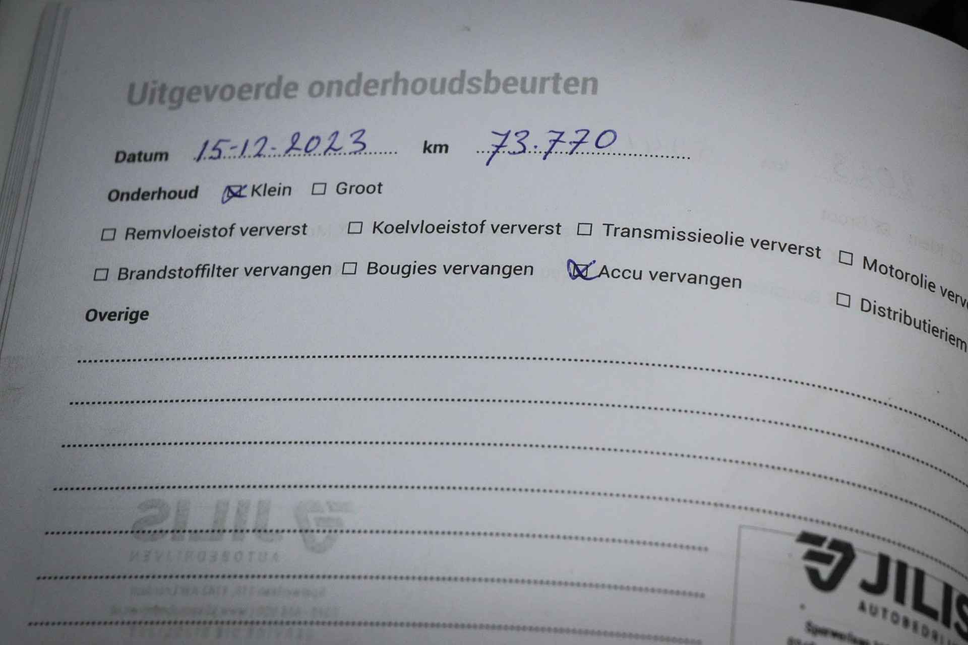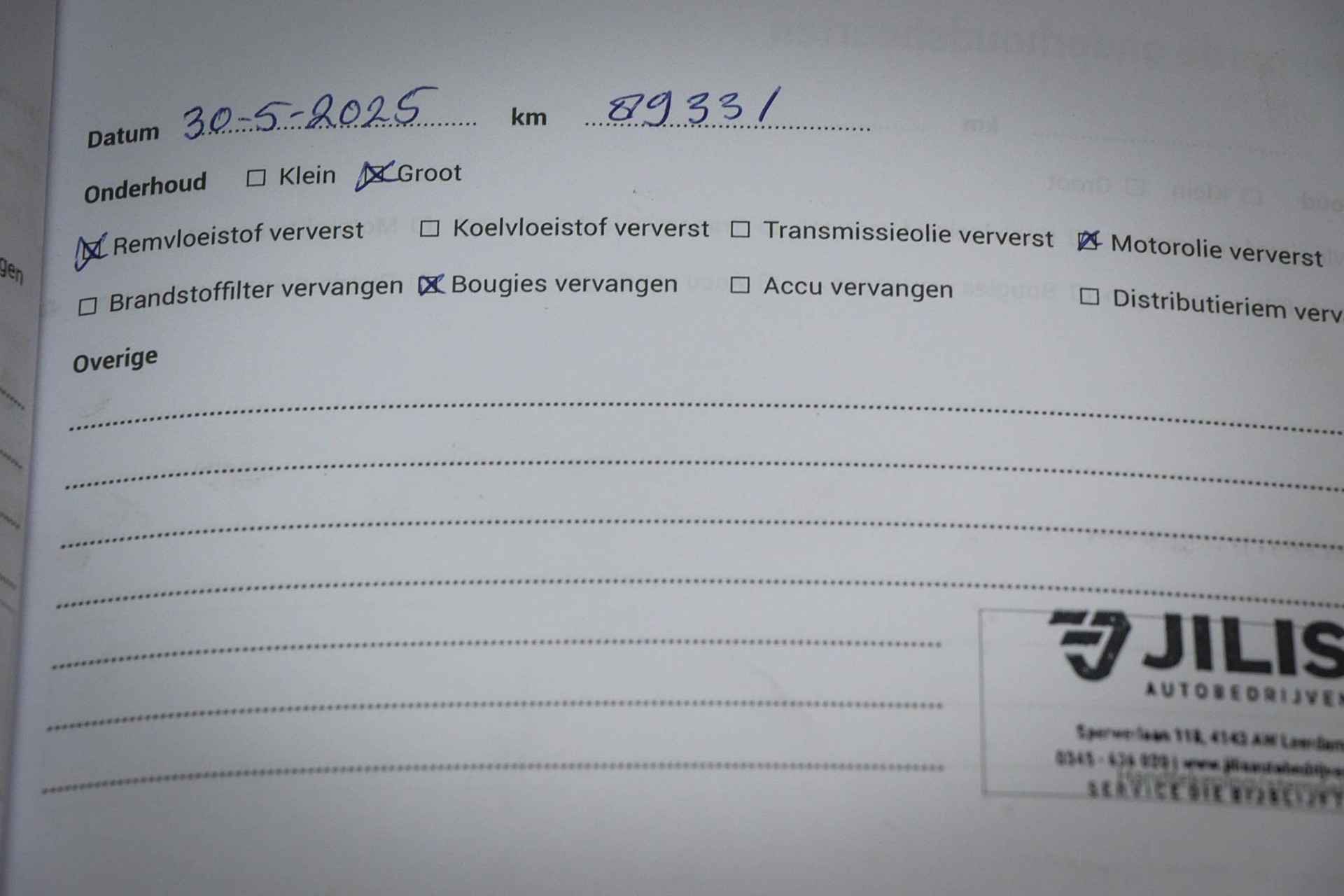 • ­ Onderhoudsboekje (fysiek)