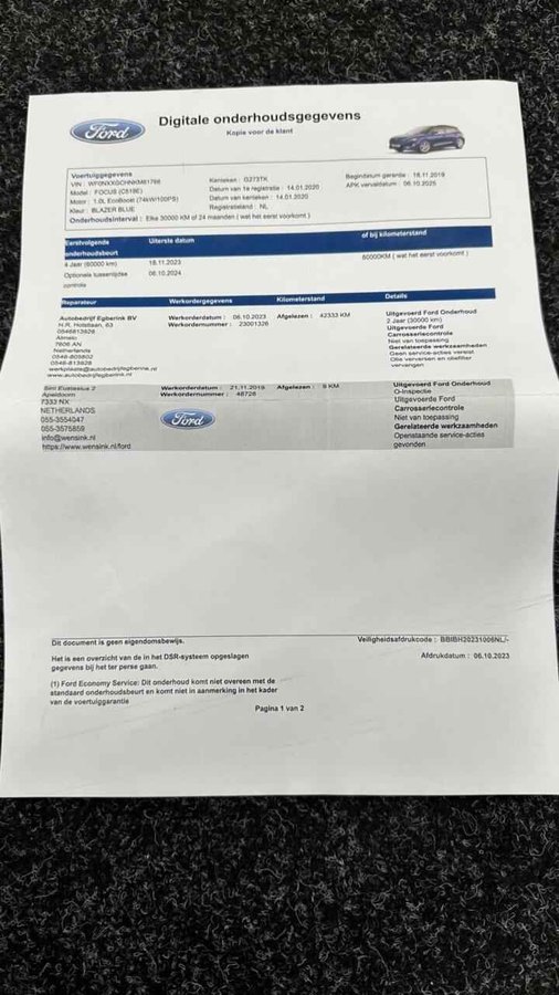 Ford Focus 1.0 EcoBoost Trend Edition Business CARPLAY LM - Kenteken: G-273-TK - Merk: Ford - Model: Focus - APK tot: 28-03-2027 - Tellerstand: 57514 KM - Carrosserievorm: Hatchback - Aantal deuren: 5 - Brandstofsoort: Benzine - Bouwjaar: 2020 - Transmissie: Handgeschakeld - Kleur: blauw - Bekleding: Stof - Motorinhoud: 999 cc - Aantal cilinders: 3 - Motorcode: B3DA - Vermogen: 74 kW / 101pk - Ledig gewicht: 1180 kg - Max. trekgewicht: 1100 kg - Aantal zitplaatsen: 5 - Verbruik: 4.3 l/100 km - BTW/Marge: BTW aftrekbaar, de prijs is inclusief BTW - Lengte: 440 cm - Breedte: 184 cm - Aantal sleutels: 2 - Onderhoudshistorie aanwezig: Ja - Motorrijtuigenbelasting: € 164 - 179 per kwartaal - Emissieklasse: Euro 6 Comfort - Boordcomputer - Cruise control Exterieur - Achterruitwisser - Buitenspiegel rechts - Buitenspiegels elektrisch verstelbaar - Centrale vergrendeling met afstandsbediening - Chroom delen exterieur - Dakspoiler - Dimlichten automatisch - LED dagrijverlichting - LED koplampen - Lichtmetalen velgen 16" - Metaalkleur - Mistlampen voor adaptief - Side-skirts - Sportvelgen Infotainment - DAB - Multimedia-voorbereiding - Radio - Radio CD speler - Spraakbediening - Stuur multifunctioneel - WiFi Interieur - Achterbank in delen neerklapbaar - Airco - Armsteun voor - Bestuurdersstoel in hoogte verstelbaar - Comfortstoel(en) - Elektrische ramen achter - Elektrische ramen voor - Lederen versnellingspook - Lendesteun(en) verstelbaar - Microvezel bekleding - Middenarmsteun voor - Stuur leder - Stuur verstelbaar - Stuurbekrachtiging snelheidsafhankelijk Milieu - Start/stop systeem Overige - Anti Blokkeer Systeem - Anti doorSlip Regeling - Apple Carplay/Android Auto - Automatische snelheidsbegrenzing ISA - Autonomous Emergency Braking - Bestuurdersairbag - Bluetooth - Bots waarschuwing systeem - Brake Assist System - Connected services - Elektronisch Stabiliteits Programma - Elektronische remkrachtverdeling - Kleur blauw - Passagiersairbag - Zij airbag(s) voor Veiligheid - Alarm klasse 1(startblokkering) - Bandenspanningscontrolesysteem - Hill hold functie - Isofix bevestiging voor kinderzitjes - Rijstrooksensor Volop rijplezier en moderne technologie die u het leven gemakkelijk maakt. Met deze Ford Focus kiest u voor een breed getalenteerde allrounder. Met zijn benzinemotor en handgeschakelde versnellingsbak is dit een prima auto voor nog vele kilometers. De comfortstoelen van deze Ford Focus staan bekend om zijn goede zithouding. In deze auto profiteert u onder andere ook van: 16 inch lichtmetalen velgen, LED koplampen, dakspoiler, in delen neerklapbare achterbank, elektrisch verstelbare buitenspiegels en verstelbare lendensteunen. Ingebouwde spraakbediening maakt het mogelijk om de auto te bedienen zonder dat uw aandacht wordt afgeleid. Hoe is het met de banden, de accu en andere onderdelen? Connected Services maakt het inzichtelijk, 24/7 via de app. Verre reizen veranderen in korte ritten dankzij de WiFi-hotspot. U kunt meerdere mobiele apparaten verbinden met de internetaansluiting in de auto. Met de DAB-ontvanger heeft u keuze uit talloze digitale radiozenders met de allerhoogste geluidskwaliteit. Met cruise control rijdt u rustiger en meer ontspannen, en bovendien zuiniger. De Ford is standaard voorzien van: WIFI-hotspot, airconditioning, lederen stuur, isofix-aansluiting, centrale deurvergrendeling met afstandsbediening en boordcomputer. Zoals u mag verwachten van deze Ford Focus is hij uitgerust met een reeks aan actieve veiligheidssystemen. Het Lane-keeping systeem registreert permanent of u binnen de lijnen van de rijstrook blijft; dwaalt u onbedoeld af, dan waarschuwt het systeem en corrigeert de koers. In een noodsituatie waarschuwt forward collision warning bij een dreigende aanrijding met een voorligger. De auto is ook uitgerust met hill hold functie, brake assist en bandenspanningcontrolesysteem. Interesse? Maak dan gauw een afspraak voor een proefrit. U kunt deze deze auto financieren vanaf €289,00 per maand. Voor meer vragen of informatie kunt u ons altijd bellen mailen of smsen. Kijk ook eens naar onze andere voordelige advertenties. Onze garantie/rijklaar pakketten Instapgarantie (€399,-) Auto's van 10 - 15 jaar oud en tot 175.000 km. Inclusief: 12 maand garantie. Nieuwe APK. Algehele check. Kleine onderhoudsbeurt. Excellent garantie (€499,-) Auto's tot 10 jaar oud en tot 175.000 km. Inclusief: 12 maand garantie. Nieuwe APK. Algehele check. Kleine onderhoudsbeurt. Excellent plus garantie (€699,-) Auto's tot 10 jaar oud en tot 175.000 km. Inclusief: 12 maand garantie. Nieuwe APK. Algehele check. Grote onderhoudsbeurt. Exclusive garantie (€1499,-) Speciaal voor onze exclusives. Auto's tot 10 jaar oud en tot 175.000 km. Inclusief: 12 maand garantie Nieuwe APK. Algehele check Inclusief onderhoudsbeurt. Onze advertenties worden met grote zorgvuldigheid op het internet geplaatst. Mocht er onverhoopt toch een fout in staan, dan kan hieraan geen rechten worden ontleend.  Financiering is mogelijk. Whatsapp ons op:  06-552 318 32 RTO autoservice Zuiderdiep 408 7876 AW Valthermond 0599 72 70 12 info@rtoautoservice.nl www.rtoautoservice.nl/
