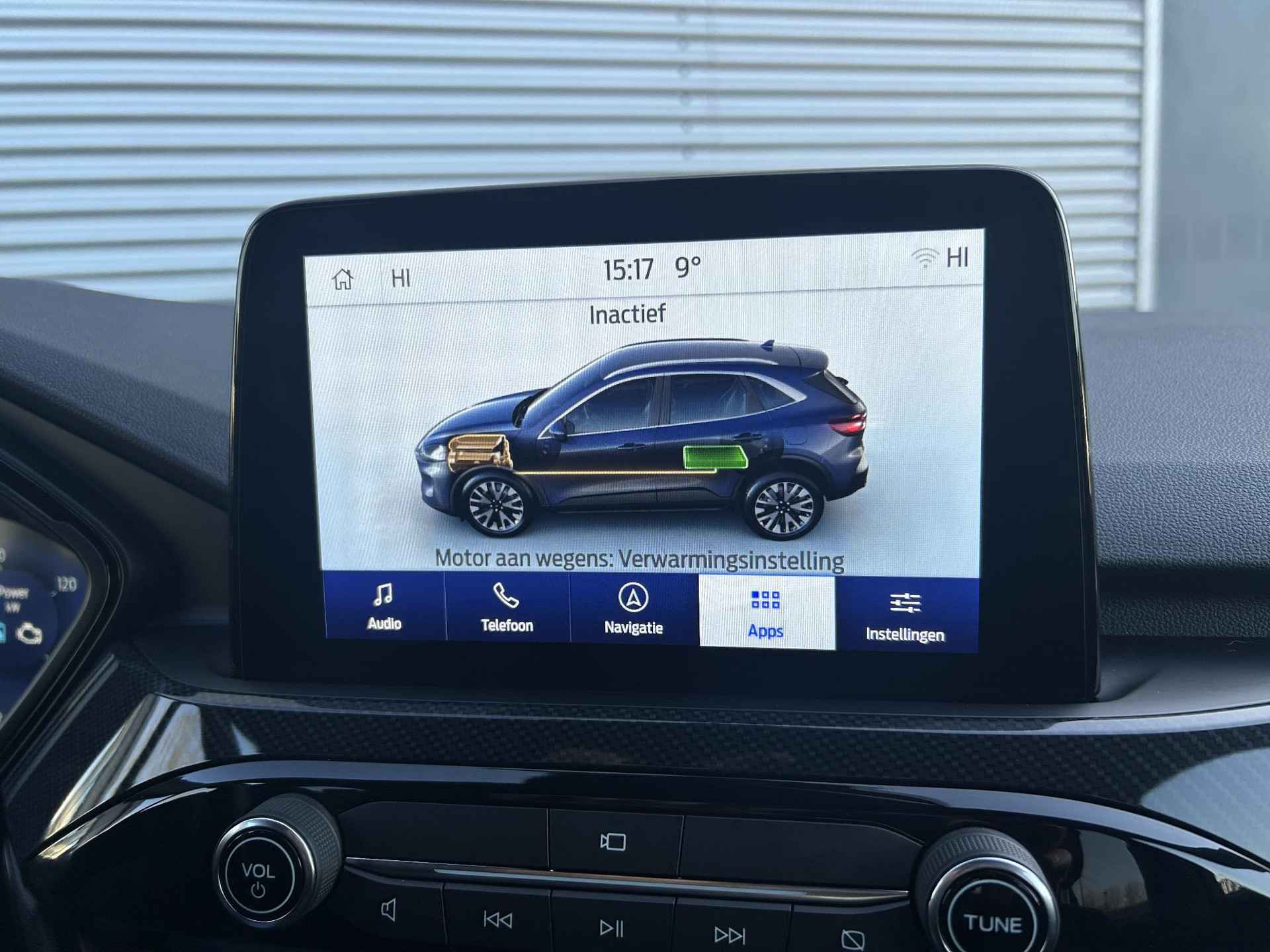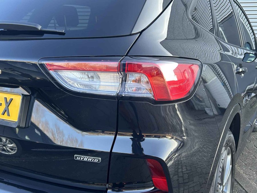U rijdt gemakkelijk, comfortabel en zonder zorgen met deze Ford Kuga. Het is een auto van het bouwjaar 2023. Rijden op brandstof én elektriciteit? Dat kan, met de hybride motor van deze Ford Kuga. De elektromotor ondersteunt of neemt het deels over van de brandstofmotor als dat uitkomt. Scheelt lekker in de kosten! De verwarmbare voorstoelen zijn een weldaad voor rug en schouders. Comfortabel zitten, ook als de rit onstuimig is? Dat kan met de sportstoelen. De bagageruimte is toegankelijk via een comfortverhogende elektrische achterklep. Ook de passagiers achterin ervaren het ultieme comfort, dankzij de verwarmde achterbank. Bij de uitrusting van deze Ford horen onder meer 18 inch lichtmetalen velgen, LED koplampen, sportonderstel, geluidsisolerende ramen, in delen neerklapbare achterbank en LED-achterlichten. Snelheid, brandstofinfo, noem maar op. Het digitale dashboard houdt u permanent op de hoogte. Goed en overzichtelijk. Nooit meer parkeerschade dankzij de achteruitrijcamera. Adaptive cruise control houdt de ingestelde snelheid vast en houdt automatisch afstand tot uw voorligger. Spraakbediening herkent uw stem en voert opdrachten uit terwijl u beide handen aan het stuur houdt. De auto is voorzien van een trekhaak en is een uitstekende caravantrekker. U bent in deze Ford ook voorzien van connected drive services, premium audiosysteem, full map navigatiesysteem, automatische airconditioning, draadloos opladen en DAB ontvangst. Met de nieuwste technologieën aan boord is deze Ford in staat om zelf te reageren op potentieel gevaarlijke situaties op de weg. Verkeersborddetectie herkent tijdelijke en permanente verkeersborden langs en boven de weg. Met het Lane-keeping systeem komt u nooit per ongeluk buiten de rijstrook. Forward collision warning waarschuwt voor een kop-staart botsing. Met voorzieningen als dodehoekdetectie, hill hold functie, vermoeidheidsherkenning, autonoom remsysteem en bandenspanningcontrolesysteem, bent u altijd veilig onderweg. Even bellen voor een afspraak en deze Ford staat voor u klaar! Is deze auto iets voor u? Genoemde prijs is een basisprijs. Wij informeren u graag welke garantie en onderhoudspakketten er op deze auto mogelijk zijn, of kijk ook op Knoop-mazda.nl. U bent van harte welkom voor een vrijblijvende nadere kennismaking. Pakket 1:  495,- - 12 maanden wettelijke garantie - Volledig reinigen van in- en exterieur - Voorzien van minimaal 12 maanden APK - Vloeistoffen check Pakket 2:  895,-  - 12 maanden BOVAG garantie - Volledig reinigen van in- en exterieur - Voorzien van minimaal 12 maanden APK - Onderhoudsbeurt volgens schema - Levenslange pechhulp voor jouw Mazda bij onderhoud via de Mazda Dealer  - 20 liter brandstof.  - Napoetsen voor aflevering