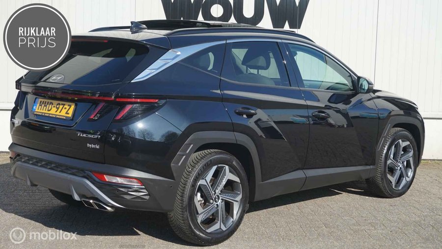 Hyundai Tucson 1.6 T-GDI HEV Premium Sky Panoramadak | Beige interieur lederen bekleding | 360 camera - Kenteken: HHD-97-Z - Merk: Hyundai - Model: Tucson - APK tot: 15-12-2025 - Tellerstand: 56399 KM - Carrosserievorm: SUV - Aantal deuren: 5 - Brandstofsoort: Hybride (Elektrisch/Benzine) - Bouwjaar: 2021 - Transmissie: Automaat - Kleur: zwart Metallic - Kleurnaam: Phantom Black - Bekleding: Leder - Kleur interieur: beige - Motorinhoud: 1598 cc - Aantal cilinders: 4 - Motorcode: G4FT - Vermogen: 169 kW / 230pk - Ledig gewicht: 1539 kg - Max. trekgewicht: 1650 kg - Aantal zitplaatsen: 5 - Verbruik: 5.6 l/100 km - BTW/Marge: BTW aftrekbaar, de prijs is inclusief BTW - Lengte: 450 cm - Breedte: 187 cm - Hoogte: 1650 cm - Aantal sleutels: 2 - Onderhoudshistorie aanwezig: Ja - Motorrijtuigenbelasting: € 120 - 132 per kwartaal - Fabrieksgarantie tot: 15-12-2026 - Emissieklasse: Euro 6 - Velgmaat: 19 inch Bijzondere opties & accessoires - Autonome parkeerfunctie Comfort - Boordcomputer - Regensensor Exterieur - Buitenspiegels elektrisch inklapbaar - Buitenspiegels elektrisch verstelbaar - Buitenspiegels in carrosseriekleur - Buitenspiegels verwarmbaar - Dakrails - Dimlichten automatisch - Elektrisch glazen panorama-dak - Extra getint glas achter - Keyless entry - Koplampen adaptief - LED achterlichten - LED dagrijverlichting - LED koplampen - Lichtmetalen velgen 19" - Parkeersensor achter - Parkeersensor voor - Zonnescherm zijruiten Infotainment - Audio installatie premium - DAB - Multimedia-voorbereiding - Navigatiesysteem full map - Spraakbediening - Stuur multifunctioneel Interieur - Achterbank in delen neerklapbaar - Achterbank verwarmd - Airco (automatisch) - Airco separaat achter - Bestuurdersstoel in hoogte verstelbaar - Binnenspiegel automatisch dimmend - Cruise control adaptief met Stop&Go - Elektrisch verstelb. bestuurdersstoel met geheugen - Elektrisch verstelbare passagiersstoel - Elektrische ramen voor en achter - Kunstlederen bekleding - Lendesteunen (verstelbaar) - Passagiersstoel in hoogte verstelbaar - Stoel ventilatie voor - Stuur leder - Stuur verstelbaar - Stuur verwarmd - Stuurbekrachtiging - Voorstoelen verwarmd Overige - Achteruitrij assistent - Anti Blokkeer Systeem - Apple Carplay/Android Auto - Automatische snelheidsbegrenzing ISA - Autonome parkeerfunctie - Autonomous Emergency Braking - Bestuurdersairbag - Bluetooth - Bots waarschuwing systeem - Centrale airbag voor - Connected services - Dodehoek detectie - Dodehoekdetectie met correctie - Draadloze telefoonlader - Elektrisch bedienbare achterklep met sensorsturing - Elektronisch Stabiliteits Programma - Hoofd airbag(s) achter - Hoofd airbag(s) voor - Keyless start - Kruisend verkeer detectie - Passagiersairbag - Rijstrooksensor met correctie - Rondomzicht camera - Schakelmogelijkheid aan stuurwiel - Uitstap waarschuwing - Vervolgbotsing preventie - Volledig digitaal instrumentenpaneel - Zij airbag(s) voor Veiligheid - Alarm klasse 1(startblokkering) - Alarmsysteem - Bandenspanningscontrolesysteem - File assistent - Grootlichtassistent - Hill hold functie - Verkeersbord detectie - Vermoeidheids herkenning Met z'n extra elektromotor geeft de hybride Hyundai Tucson een heel nieuwe dimensie aan het rijden. Zelfs als het buiten ijzig koud is, kunnen zowel de bestuurder als de passagiers op de achterbank snel opwarmen, dankzij de verwarmbare stuurwiel en de achterbankverwarming. Van binnen lijkt het allemaal uitermate ruim dankzij de vrije inval van daglicht via het elektrisch bediende glazen panoramadak. De elektrische achterklep opent met een druk op de knop, zodat u gemakkelijk toegang heeft tot de bagageruimte. Bij de zeer complete uitrusting van deze auto behoren ook 19 inch lichtmetalen velgen, LED koplampen, aluminium dakrailing, elektrisch inklapbare buitenspiegels, donker getint glas achter en in delen neerklapbare achterbank. De indeling van het digitale dashboard is zo ingericht dat u met één blik precies weet wat u weten wilt. Met de 360 graden camera kunt u elk detail rond de auto zien, waardoor mogelijke schade door verkeerd inschatten van afstanden vermeden wordt. Met adaptive cruise control houdt deze auto automatisch afstand tot uw voorligger. De file assistent verzacht het fileleed door automatisch veilig afstand te houden tot de voorligger en zo nodig zelfs te stoppen als de rij tot stilstand komt. Spraaksturing betekent dat u verschillende functies met uw stem kunt bedienen. De uitrusting van deze auto is met connected drive services, premium audiosysteem, full map navigatiesysteem, kruisend verkeer detectie, automatische airconditioning en draadloos opladen behoorlijk compleet. De geavanceerde technologie in deze Hyundai is in staat om onderweg het verkeer om u heen te monitoren en er op te reageren. Zo hebt u als het ware een automatische co-piloot aan boord. U rijdt ook veiliger omdat deze auto voor u de verkeersborden langs de weg kan lezen. De belangrijkste borden worden op uw instrumentarium geprojecteerd, zodat u ze niet kunt missen. Het Lane-keeping systeem garandeert dat u zich niet onverhoeds buiten de lijnen van de rijstrook begeeft. Elke auto heeft een of meer blinde vlekken. De actieve dodehoekdetectie waarschuwt als er gevaar voor een aanrijding bestaat. Ook helpen het forward collision warning system, hill hold functie, vermoeidheidsherkenning, autonoom remsysteem en bandenspanningcontrolesysteem, uw rit tot een veilige rit te maken. Daarbij wordt deze auto aan u geleverd met BOVAG Garantie. Meer weten over deze auto? U bent van harte welkom om hem te komen bekijken. Heeft u een vraag over deze auto neem dan telefonisch of via e-mail contact op met één van onze verkoopadviseurs. Voor een bezichtiging of proefrit bent u van harte welkom in onze showroom! Openingstijden van onze showroom: maandag t/m vrijdag: 8:00 - 18:00 uur zaterdag: 9:00 - 16:00 uur Adres: Van Andelstraat 7   5141 PB Waalwijk Autobedrijf van de Wouw is ook uw partner voor financiering, (private)leasing en verz