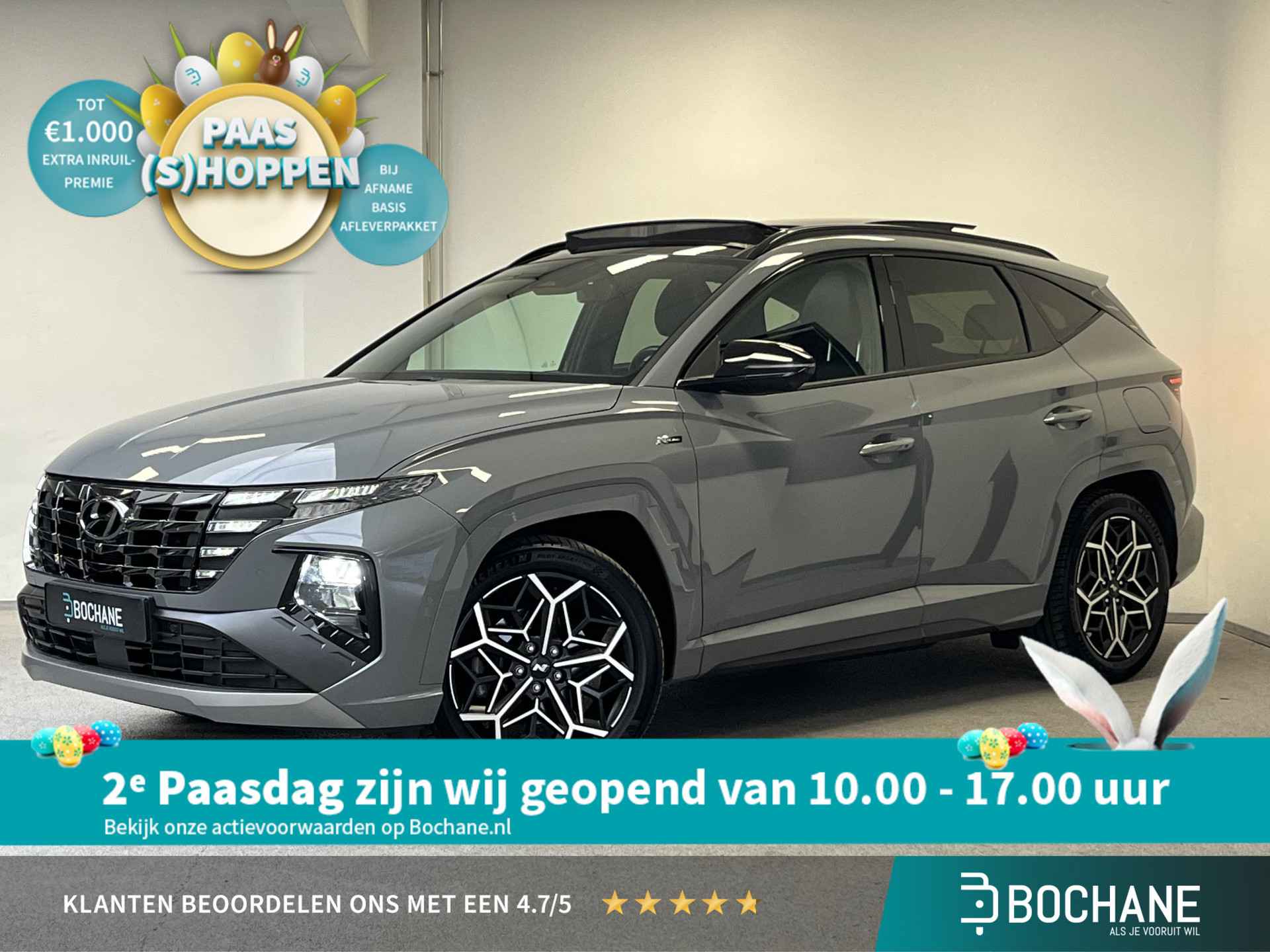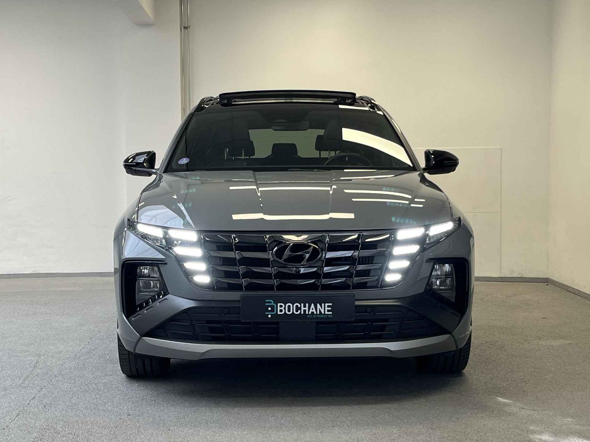 Ontspannen en zorgeloos autorijden, dat doet u met deze Hyundai Tucson. Rijden met deze Hyundai Tucson is energiezuinig, want de hybride motor combineert brandstof met elektriciteit. Minder vaak langs de pomp, dus dat scheelt! De ruime lichtinval door het elektrisch bediende glazen panorama dak zorgt voor een heerlijk ruim gevoel. Met één klik te openen voor frisse lucht en een mild windje in de auto. Dat is gemak en plezier! Overigens is het happy-klik gevoel ook aanwezig bij de elektrisch bedienbare achterklep. Hoe koud het buiten ook is, het verwarmbare stuurwiel en de verwarmbare voorstoelen brengen uw handen, vingers en lichaam snel weer op temperatuur. Tot de uitrusting van deze Hyundai behoren ook 19 inch lichtmetalen velgen, LED koplampen, extra getint glas, in delen neerklapbare achterbank, LED-achterlichten en verstelbare lendensteunen. Het slim uitgedachte digitale dashboard toont alle essentiële ritinformatie in één oogopslag. De 360 graden camera wordt mogelijk gemaakt door vier camera's die tezamen werken om zo een uitgebreid zicht te bieden, wat van grote waarde is bij het navigeren door smalle straatjes en parkeerplekken. Met adaptive cruise control houdt de auto zelfstandig afstand tot uw voorligger. Een veiligheidsverhogende optie waarmee u comfortabel onderweg bent. Na een lange werkdag in de file: daar zit niemand op te wachten. Gelukkig helpt de file assistent een handje. Het radarsysteem meet de ruimte tot de voorligger en bewaakt de juiste afstand. Stilstaan? Dan remt en stopt de auto vanzelf. De radio harder of zachter zetten of iemand uit uw contactenlijst bellen. Dankzij de spraakbediening doet u dit allemaal met uw stem. Wat u ook in deze auto kunt vinden zijn connected drive services, premium audiosysteem, full map navigatiesysteem, kruisend verkeer detectie, automatische airconditioning en draadloos opladen. In de Hyundai Tucson heeft uw veiligheid en die van uw omgeving prioriteit. Mooi binnen de lijnen van de rijstrook blijven? Het Lane-keeping systeem helpt altijd een handje. Een fietser of ander voertuig in de dode hoek ziet u gemakkelijk over het hoofd. De actieve dodehoekdetectie signaleert meteen elke risicosituatie. In een noodsituatie waarschuwt forward collision warning bij een dreigende aanrijding met een voorligger. Ook helpen het hill hold functie, vermoeidheidsherkenning, autonoom remsysteem en bandenspanningcontrolesysteem, uw rit tot een veilige rit te maken. Neem contact op voor een afspraak en laat een proefrit het bewijs leveren! Wilt u meer weten over deze auto of een afspraak voor bezichtiging maken, bel ons voor  een afspraak op: 0343-760199 De verkoopprijs van deze auto is inclusief een geldige APK. De auto wordt op uw naam overgeschreven en heeft tevens een pre inspectie en vloeistofcontrole gehad. Een onderhoud en garantiepakket met 12 maanden BOVAG garantie bieden wij aan voor een meerprijs van 795 euro. De optielijst is met grote zorg samengesteld. Het kan voorkomen dat een aanwezige optie niet beschreven is of er een optie is beschreven die niet aanwezig is. Aanbevolen is opties die uw beslissing bij aankoop kunnen beïnvloeden alvorens uw aankoop te controleren. Aan de optielijst kunnen geen rechten worden ontleend.   Autobedrijf  Vakgarage Bochane Service Center Maarn behoort tot de in de regio welbekende Bochane Groep. Er staat voor ieder merk een vakkundig team klaar voor u! Dat betekent dat u verzekerd bent van een schat aan ervaring, kennis en de hoogst denkbare service. Autobedrijf Bochane beschikt o.a. over een eigen leaseafdeling en verhuurmaatschappij. Daarnaast kunnen wij u een passend financieringsvoorstel en een verzekeringsofferte aanbieden.    Graag tot ziens bij Vakgarage Bochane Service Center Maarn!