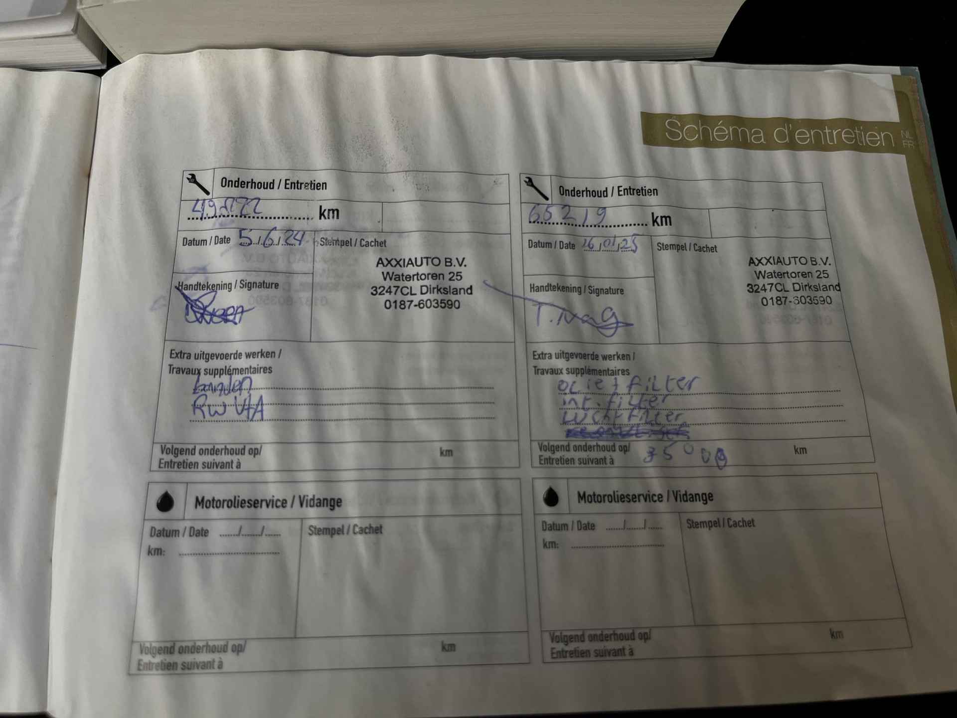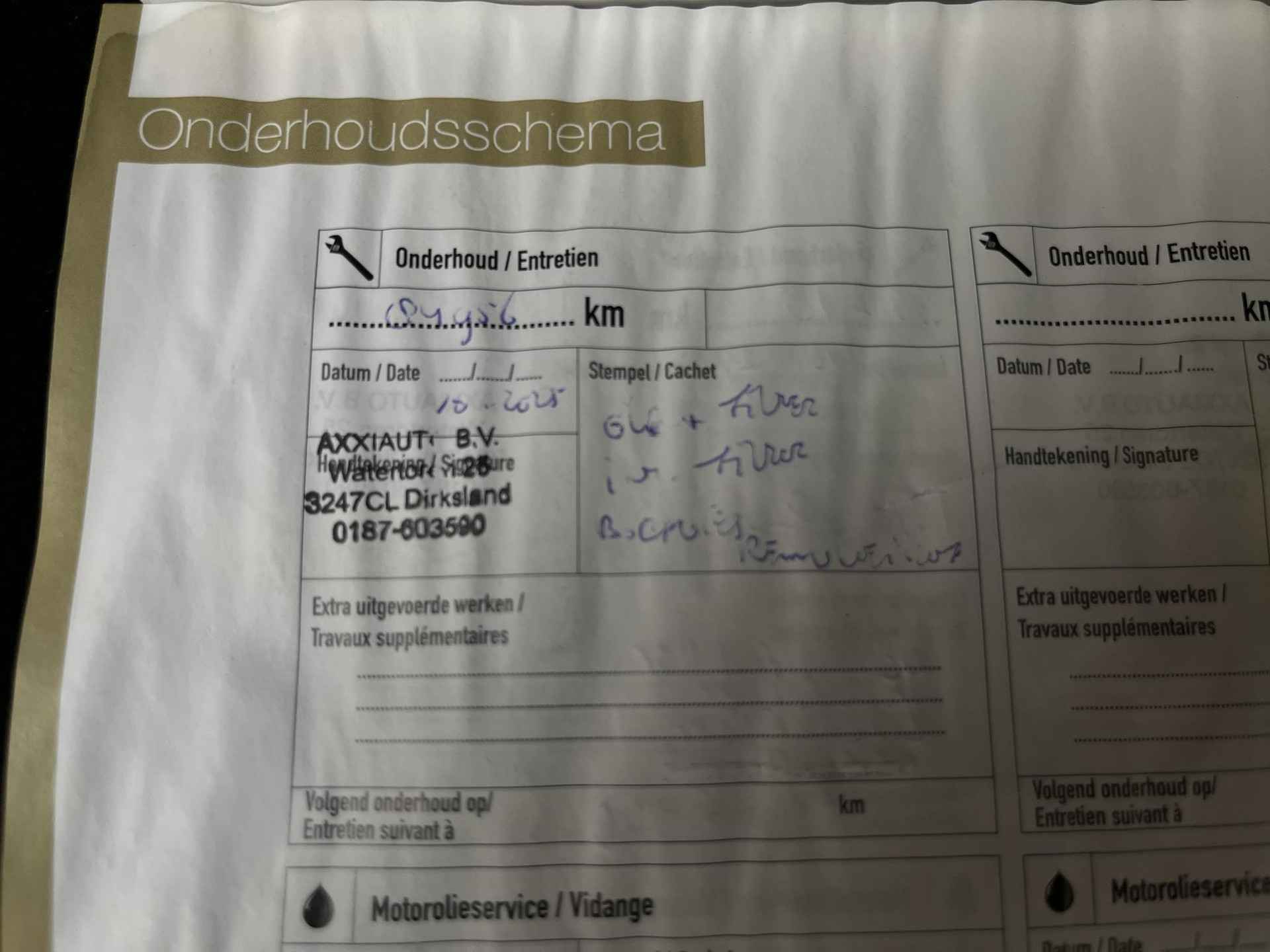 • ­ Onderhoudsboekje (fysiek)