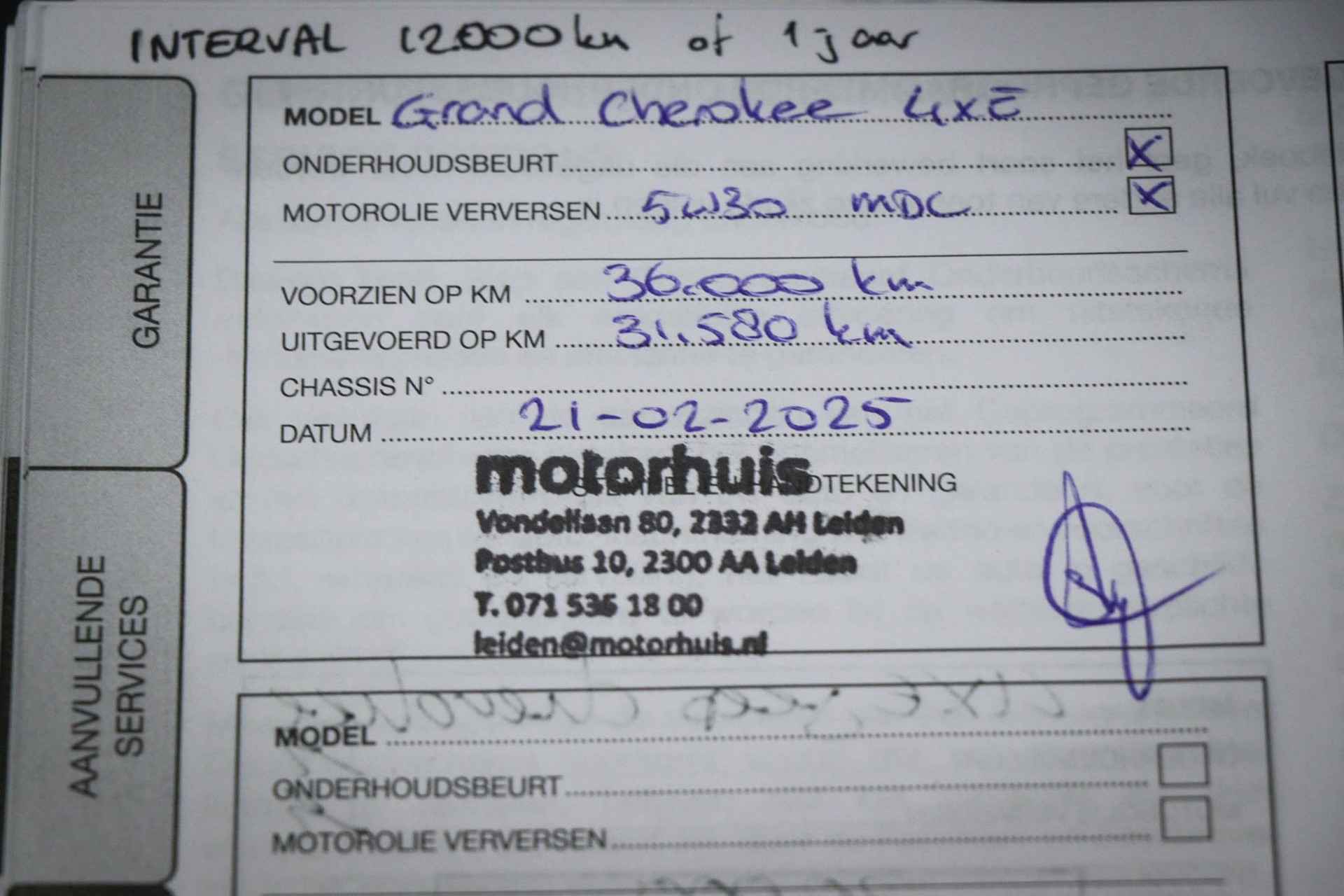 • ­ Onderhoudsboekje (fysiek)