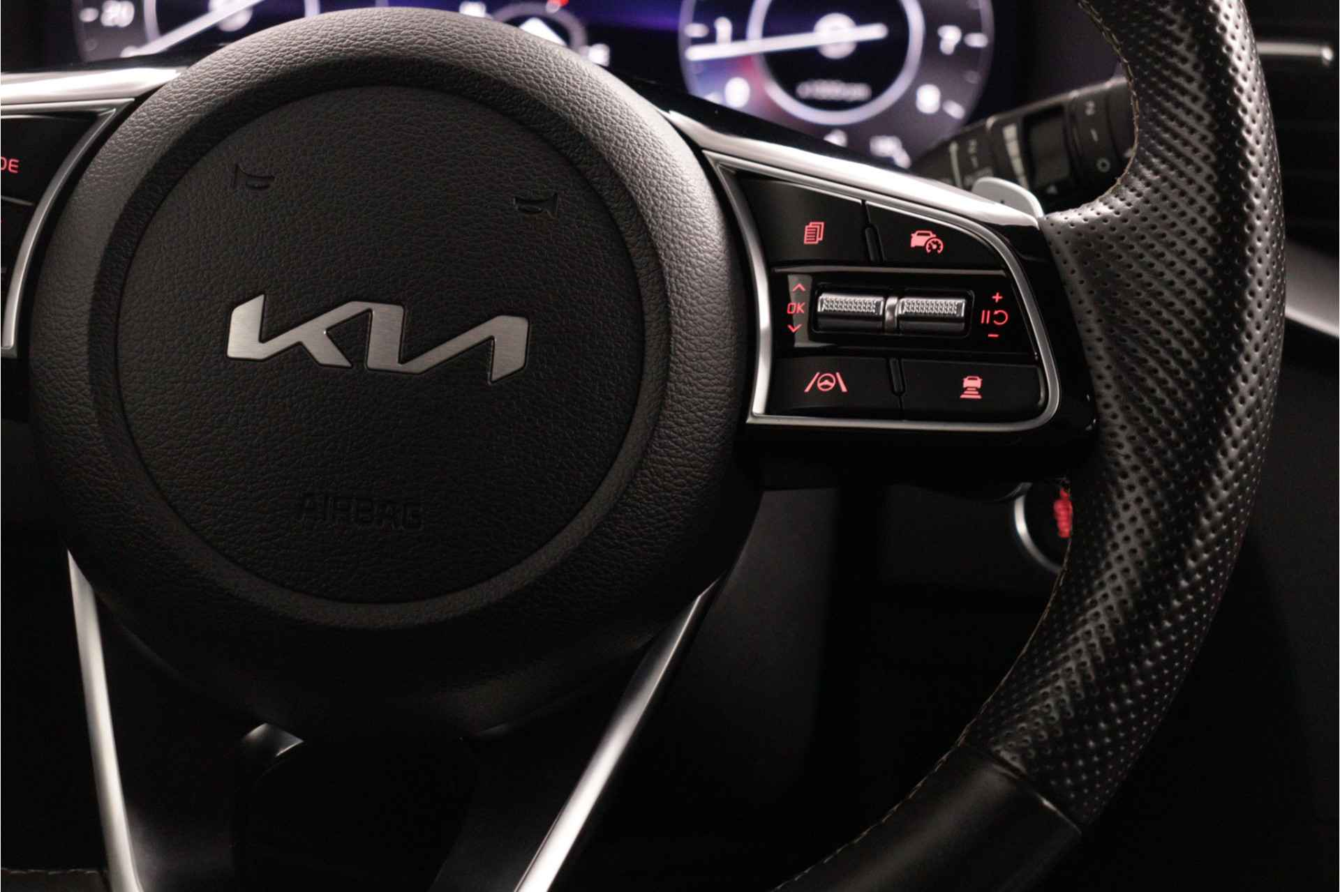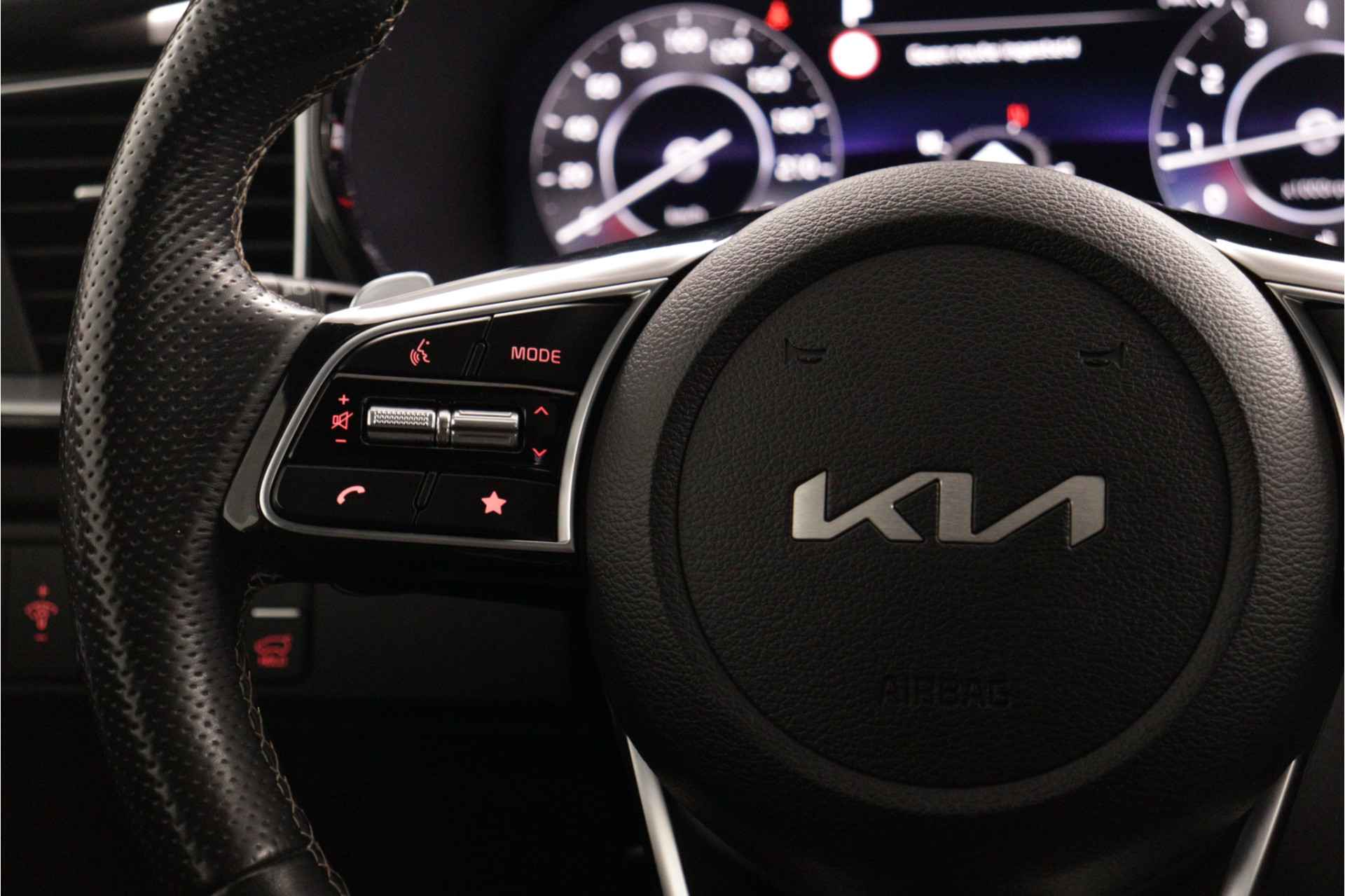 Koreaanse auto's staan bovenaan wat betreft waardebehoud. En dat met die gunstige aanschafprijs! De auto is van het bouwjaar 2023 en is van de eerste eigenaar. De krachtige benzinemotor van deze auto is gekoppeld aan een automatische transmissie. Het lederen interieur maakt het echt af. De verwarmbare voorstoelen benadrukken nog maar eens dat we hier te maken hebben met een regelrechte verwenauto voor bestuurder en bijrijder. Laat die bochten maar komen! In de sportstoelen zitten u en uw bijrijder altijd goed! Laat de zon maar schijnen door het elektrisch bediende glazen panoramadak. De elektrisch bedienbare achterklep opent met een druk op de knop. Bij de zeer complete uitrusting van deze auto behoren ook 17 inch lichtmetalen velgen, LED koplampen, donker getint glas achter, in delen neerklapbare achterbank, LED-achterlichten en verstelbare lendensteunen. Het digitale dashboard vertelt u alles wat u wilt weten voor een slimme, comfortabele en veilige rit. De achteruitrijcamera laat duidelijk zien hoeveel ruimte u nog heeft bij het inparkeren. Adaptive cruise control houdt de ingestelde snelheid vast en houdt automatisch afstand tot uw voorligger. In de file rijden vreet concentratie. Daarom komt de file assistent te hulp om veilig afstand te houden en automatisch te stoppen als uw voorligger stilstaat. De meest gebruikte voertuigfuncties laten zich met behulp van uw stem bedienen. Natuurlijk behoren connected drive services, full map navigatiesysteem, kruisend verkeer detectie, electronic climate control, schakelpaddles aan het stuur en draadloos opladen ook tot de uitrusting van deze complete auto. Geavanceerde veiligheidssystemen kijken tijdens elke rit met u mee en schatten continu de risico's in. Bij de veiligheidssystemen van deze Kia hoort ook de verkeersbord-detectie. Die leest tijdens het rijden als het ware met u mee en attendeert u op de significante verkeersborden langs en boven de weg. Het Lane-keeping systeem zorgt voor een automatisch constante positie binnen de rijstrook. Afdwalen is uitgesloten. Als een fiets of ander voertuig zich in de dode hoek bevindt, waarschuwt het actieve dodehoekdetectie. Dit helpt ernstige ongelukken voorkomen. Ook helpen het forward collision warning system, hill hold functie, vermoeidheidsherkenning, autonoom remsysteem en bandenspanningcontrolesysteem, uw rit tot een veilige rit te maken. Om te bevestigen dat de kilometerstand van deze auto klopt, krijgt u er ook het tellerrapport van Nationale Autopas bij. We kunnen u wel duizend dingen over deze auto vertellen, maar het is beter als u hem zelf komt bekijken en ervaren. Neemt u snel contact met ons op?
