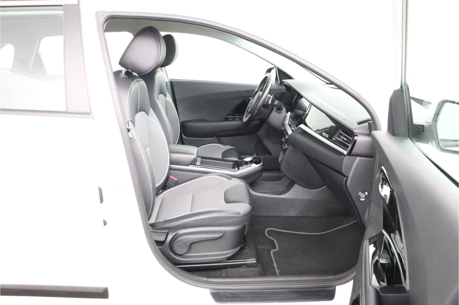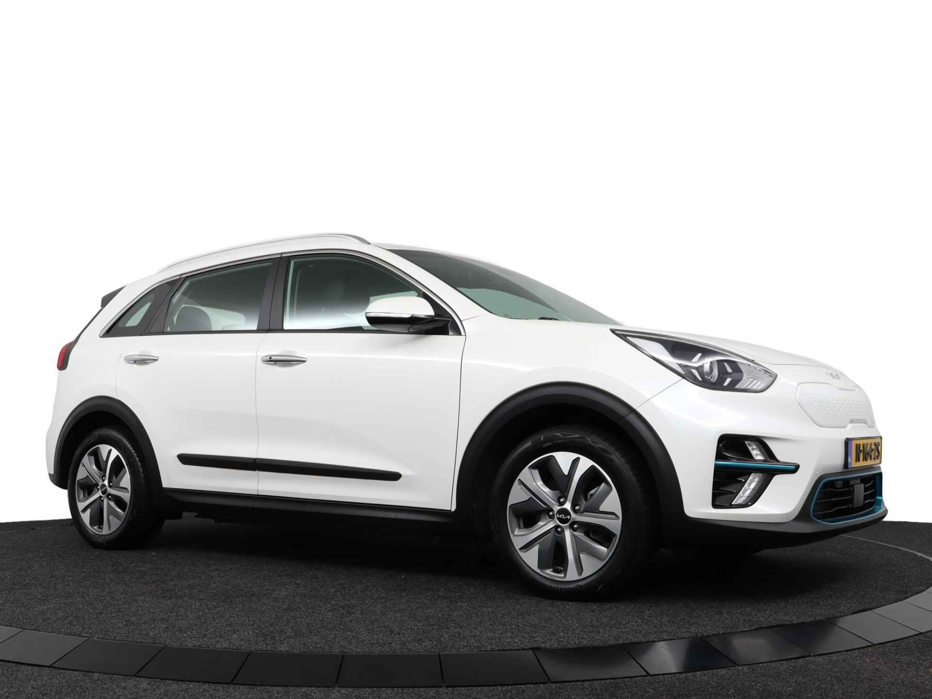 Elektrisch rijden was niet eerder zo aantrekkelijk verpakt. Met de Kia e-Niro kiest u voor aansprekende vormgeving en schone techniek. De elektromotor laat u geluidloos over de weg gaan. Wat een verademing, en zoveel power ook nog! Een krachtige motor geeft deze auto zijn sportieve prestaties. De verwarmbare voorstoelen zijn een weldaad voor rug en schouders. Ook 17 inch lichtmetalen velgen, halflederen bekleding, LED-dagrijverlichting en LED-achterlichten zijn aan boord. Soepel inparkeren gaat gemakkelijker dan u verwacht dankzij de achteruitrijcamera. Adaptive cruise control is een comfortabele en veilige optie. Het systeem reguleert de snelheid en houdt automatisch afstand tot uw voorligger. Het full map navigatiesysteem zorgt ervoor dat u snel en ontspannen op uw bestemming aankomt. Nooit meer te warm of te koud. De electronic climate control zorgt altijd voor de temperatuur die u kiest. Audiobediening op het stuur is aanwezig. Gemak en veiligheid voor alles, toch? Met schakelpaddles aan het stuur, DAB ontvangst, regensensor, keyless entry en automatisch dimmende binnenspiegel is deze auto helemaal compleet. In de Kia e-Niro heeft uw veiligheid en die van uw omgeving prioriteit. Met het Lane-keeping systeem komt u nooit per ongeluk buiten de rijstrook. Veel aanrijdingen bestaan uit kop-staartbotsingen. De forward collision warning reduceert dat risico aanzienlijk. Het laatste wat u wilt is dat u achter het stuur indommelt. Om dat te voorkomen is deze auto uitgerust met vermoeidheidsherkenning. Dankzij veiligheidsvoorzieningen als hill hold functie, autonoom remsysteem en bandenspanningcontrolesysteem, bent u steeds veilig onderweg. Deze auto leveren wij met Bovag Garantie en met een tellerrapport van Nationale Autopas. Bent u geïnteresseerd in deze elektrische auto? Neem dan nu contact met ons op.