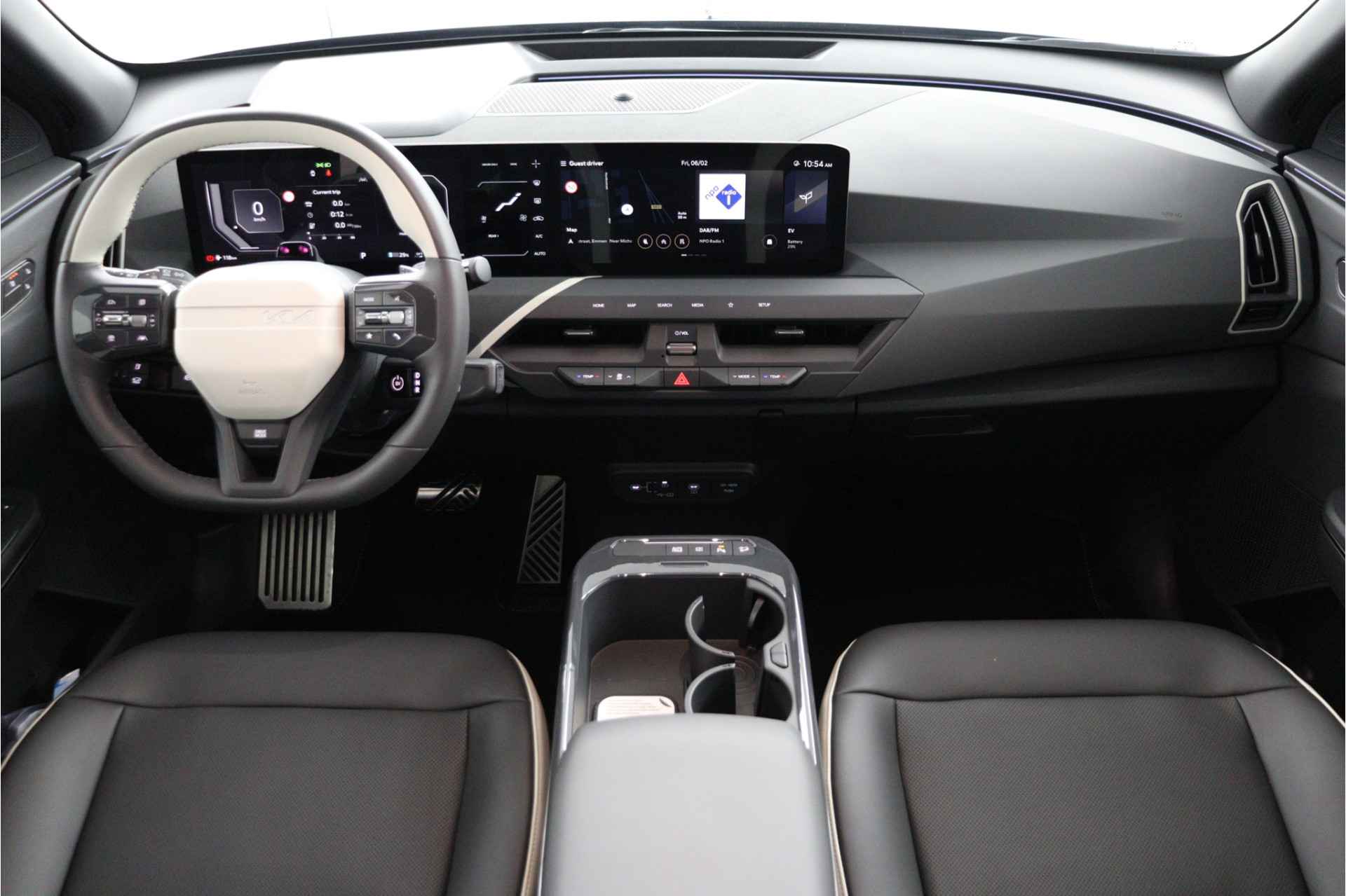Movement that inspires, is de kreet bij Kia. Zo veel inspiratie dat het merk in de top 3 van favoriete merken staat. Op een volle acculading kan deze auto de gebruikelijke dagelijkse ritten allemaal maken. Het opladen gaat eenvoudig aan een openbare laadpaal of aan uw eigen oplaadpunt thuis. Dit is een splinternieuwe auto, die nu uit voorraad leverbaar is. De krachtige motor geeft deze Kia uitstekende prestaties. Op koude en donkere dagen zijn de verwarmbare voorstoelen een uitkomst. Volop licht en ruimtelijk gevoel geeft het elektrische bediende glazen panoramadak. De bagageruimte is toegankelijk via een comfortverhogende elektrische achterklep. Ook op de achterbank kunnen passagiers zichzelf snel opwarmen dankzij de achterbankverwarming. Bij de uitrusting van deze Kia horen onder meer 19 inch lichtmetalen velgen, Full LED koplampen, warmtewerend glas, in delen neerklapbare achterbank, LED-achterlichten en verstelbare lendensteunen. Over het digitale dashboard is goed nagedacht. Alle belangrijke functies binnen en buiten in één oogopslag. De achteruitrijcamera maakt inparkeren gemakkelijker dan ooit. Met adaptive cruise control houdt de auto zelfstandig afstand tot uw voorligger. Een veiligheidsverhogende optie waarmee u comfortabel onderweg bent. Spraaksturing maakt het eenvoudiger en veiliger om deze auto onderweg te bedienen. Deze Kia EV5 is voorzien van remote services. Via uw smartphone bedient u diverse functies ook op afstand en krijgt u informatie over de status van uw auto. En dan is deze auto ook nog eens voorzien van full map navigatiesysteem, kruisend verkeer detectie, electronic climate control, draadloos opladen, regensensor en sportstuurwiel. Zoals u mag verwachten van deze Kia EV5 is hij uitgerust met een reeks aan actieve veiligheidssystemen. Verkeersborddetectie herkent tijdelijke en permanente verkeersborden langs en boven de weg. Deze Kia EV5 is ook behulpzaam als het gaat om een rechte koers. Het Lane-keeping systeem signaleert en corrigeert als u onbedoeld de rijstrooklijnen dreigt te overschrijden. Bij afslaan en inhalen waarschuwt de actieve dodehoekdetectie meteen als er gevaar is vanwege voertuigen buiten uw zichtveld. Verder is deze auto uitgerust met hill hold functie, vermoeidheidsherkenning, autonoom remsysteem en bandenspanningcontrolesysteem. Wij leveren deze nieuwe auto met volledige fabrieksgarantie. Maak nu snel een afspraak om deze auto te bekijken.