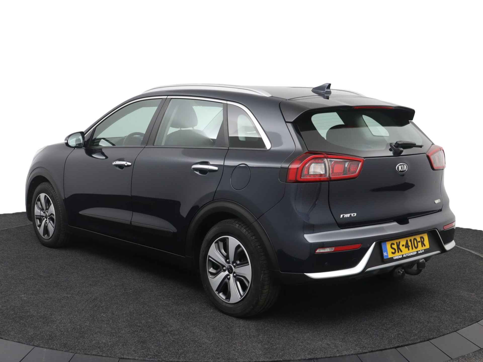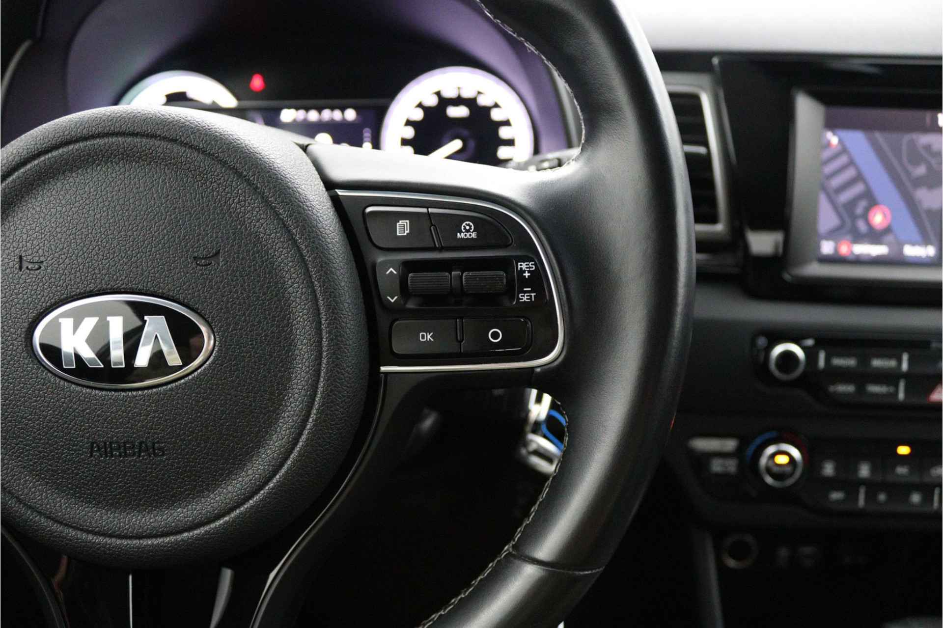De Kia Niro is ontworpen als een alleskunner waarmee u zowel in de stad als in de buitengebieden uit de voeten kunt. Deze auto is van 2018 en heeft 111747 kilometer op de teller staan. Met zijn benzinemotor en automatische transmissie is dit een prima auto voor nog vele kilometers. Ook 16 inch lichtmetalen velgen, halflederen bekleding, LED-dagrijverlichting, in hoogte verstelbare voorstoelen, in delen neerklapbare achterbank en LED-achterlichten horen tot de voorzieningen op deze auto. Zelfs een kleine aanrijding kan flinke kosten veroorzaken. Gelukkig laat de achteruitrijcamera precies zien wat er zich achter de auto bevindt en geeft een waarschuwingssignaal. Wegwijs in elke wijk, stad of reisbestemming? Daarvoor zorgt het full map navigatiesysteem! Met de electronic climate control selecteert u de gewenste temperatuur. Het systeem doet de rest. Audio-aanpassingen doen zonder de weg uit het oog te verliezen? Daar zorgt de audiobediening op het stuur voor! De elektronische systemen in deze Kia helpen u actief om comfortabeler te rijden. Een automatisch inschakelbare verlichting en een regensensor houden de omstandigheden onderweg in de gaten. Extra opties op deze auto zijn: cruise control, automatisch dimmende binnenspiegel, centrale deurvergrendeling met afstandsbediening en verstelbaar stuur. Zoals u mag verwachten van deze Kia Niro is hij uitgerust met een reeks aan actieve veiligheidssystemen. Onbedoeld buiten de rijstrook raken wordt voorkomen door het Lane-keeping systeem. Deze Kia Niro is voorzien van Brake Assist, die extra remkracht geeft bij een noodstop. Bovenop deze veiligheidsfeatures heeft deze Kia bovendien hill hold functie en bandenspanningcontrolesysteem. Er is ook een tellerrapport van Nationale Autopas, dat geeft u zekerheid over de kilometerstand van deze auto. Als u wilt, kunt u een proefrit maken met deze Kia Niro. Bel of mail ons nu voor een afspraak.