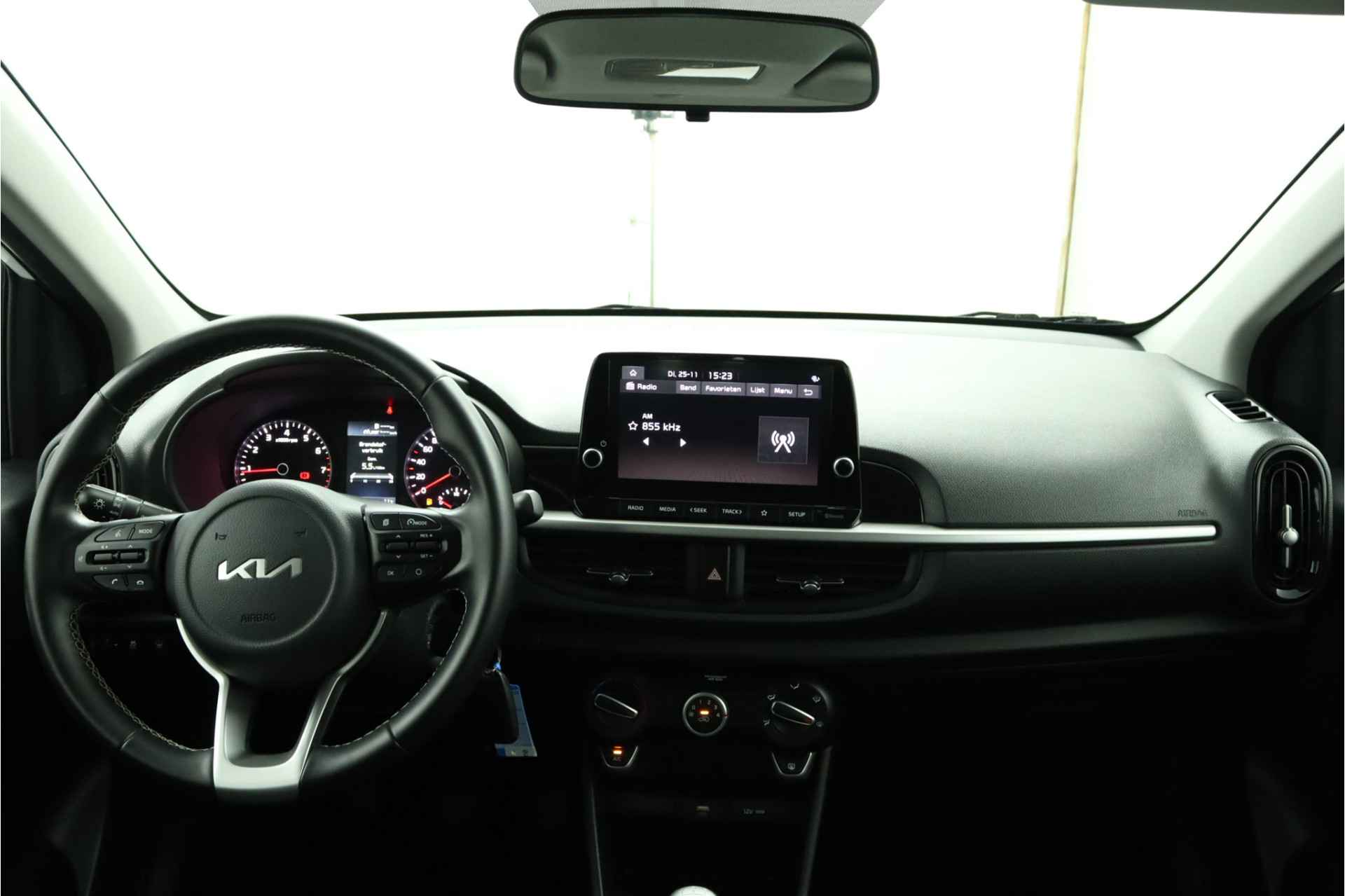 Wendbaar in de stad en soepel op de snelweg. Dat is deze fraai uitgevoerde Kia Picanto. Overtuigende prestaties en lekker economisch in gebruik. De auto is van het bouwjaar 2023 en is van de eerste eigenaar. Met zijn benzinemotor en handgeschakelde vijfversnellingsbak is dit een prima auto voor nog vele kilometers. Bij de uitrusting van deze Kia horen onder meer 14 inch lichtmetalen velgen en in delen neerklapbare achterbank. De achteruitrijcamera geeft u duidelijk zicht op de ruimte achter de auto. Deze Kia is voorzien van spraakbediening voor het audiosysteem met DAB-ontvangst. Maar u kunt ook de knoppen op het stuur gebruiken. Er is cruise control aan boord, voor veilige en zuinige kilometers. Allicht is er in deze auto ook airconditioning. Met centrale deurvergrendeling met afstandsbediening en verstelbaar stuur is deze auto helemaal compleet. Zoals u mag verwachten van deze Kia Picanto is hij uitgerust met een reeks aan actieve veiligheidssystemen. U bent mede dankzij hill hold functie, autonoom remsysteem en bandenspanningcontrolesysteem steeds veilig onderweg. Er is ook een tellerrapport van Nationale Autopas, dat geeft u zekerheid over de kilometerstand van deze auto. Wilt u met deze Kia Picanto een proefrit maken? Bel of mail ons dan nu voor een afspraak.