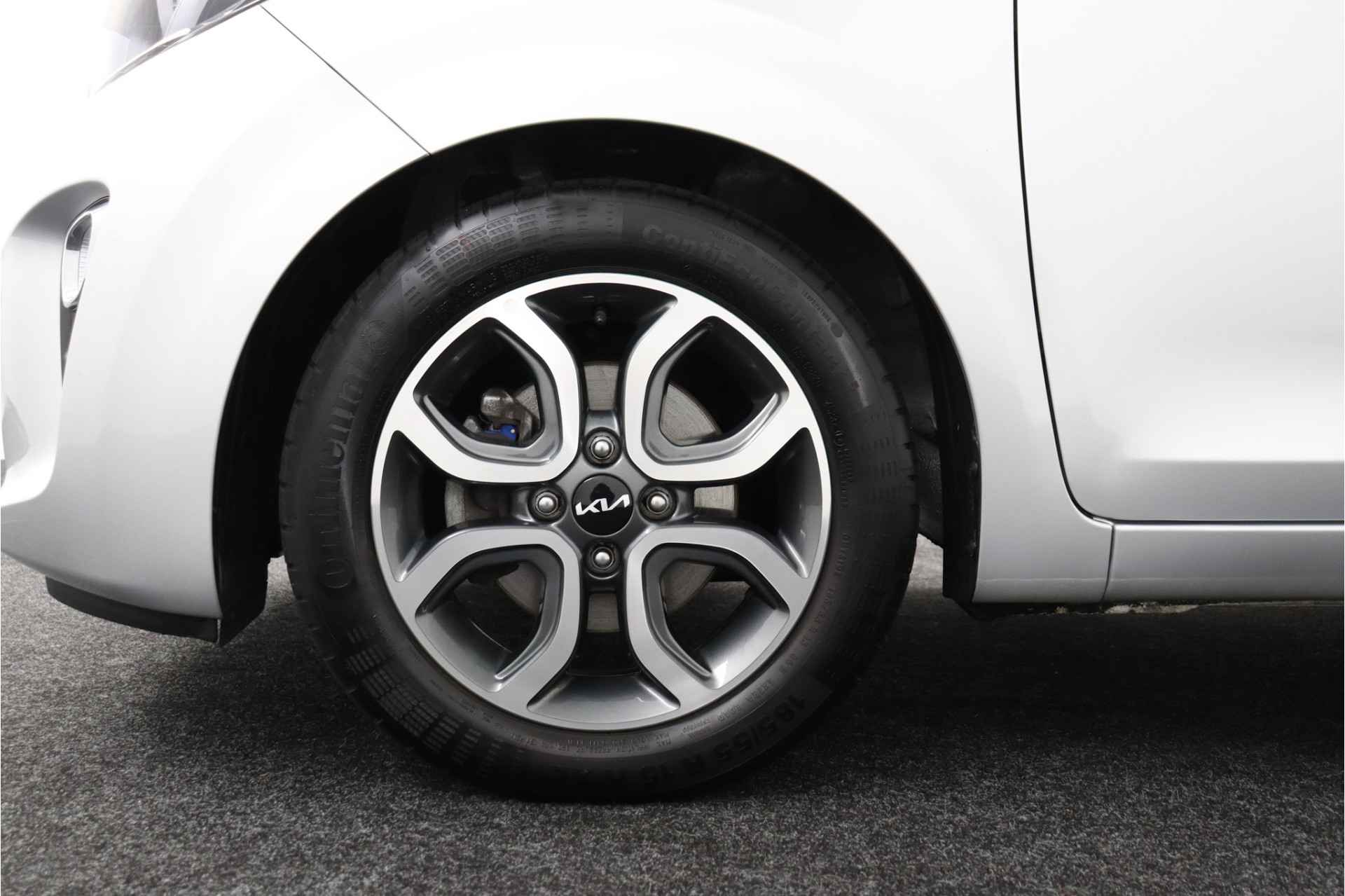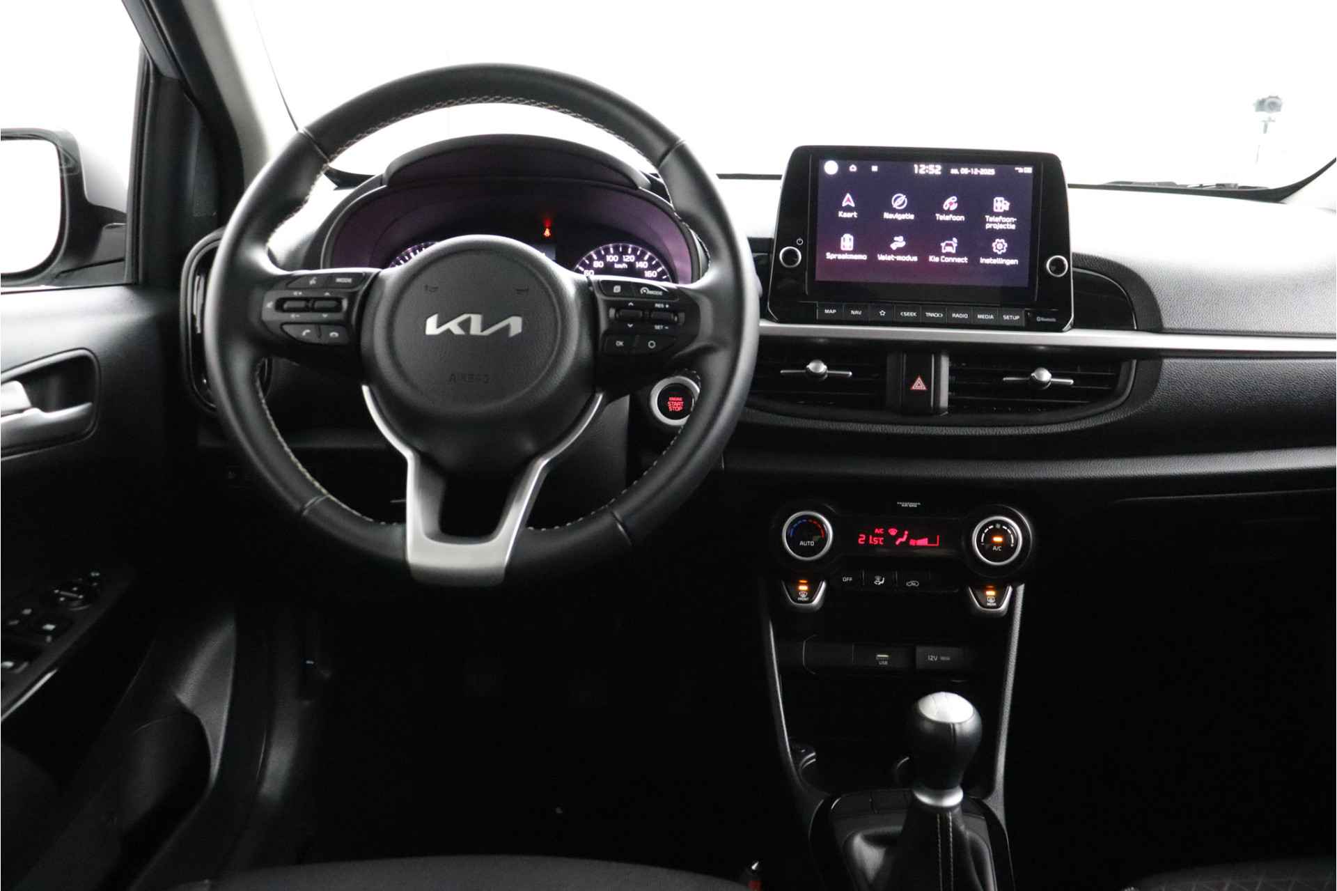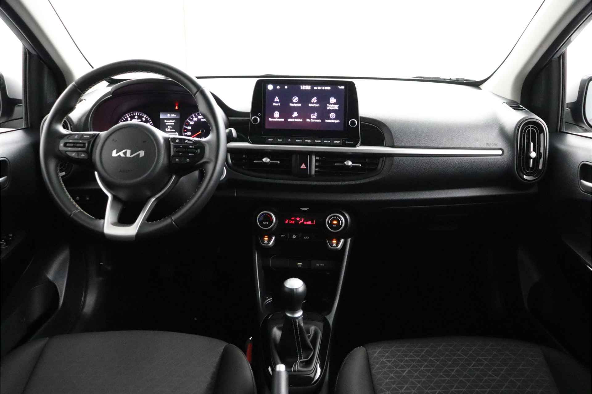 Deze compacte, comfortabele Kia Picanto is een typische stadsauto. Wendbaar, makkelijk te parkeren, pittig in rijgedrag en zuinig bovendien. De aandrijving komt voor rekening van een benzinemotor en een handgeschakelde vijfversnellingsbak. Bij de rijke uitrusting horen ook 15 inch lichtmetalen velgen, LED-dagrijverlichting, donker getint glas achter, in delen neerklapbare achterbank en LED-achterlichten. Zelfs een kleine aanrijding kan flinke kosten veroorzaken. Gelukkig laat de achteruitrijcamera precies zien wat er zich achter de auto bevindt en geeft een waarschuwingssignaal. Communiceren met uw auto? Dat gaat via remote services. Met uw smartphone maakt u waar dan ook contact om allerlei functies te checken of te activeren. U bedient het full map navigatiesysteem en het audiosysteem met DAB-radio via knoppen op het stuur, of zelfs met uw stem. Zo kunt u steeds uw aandacht gericht houden op de weg. Ook is de auto voorzien van electronic climate control. Voor de lange ritten is de cruise control een verademing. De uitrusting van deze Kia is met keyless entry en verstelbaar stuur behoorlijk compleet. Deze auto is voorzien van innovatieve systemen die u onderweg begeleiden en beschermen. De auto is ook uitgerust met hill hold functie, autonoom remsysteem en bandenspanningcontrolesysteem. Laat het ons meteen weten als u interesse heeft in deze Kia, dan kunnen we een afspraak maken om u de auto te demonstreren.
