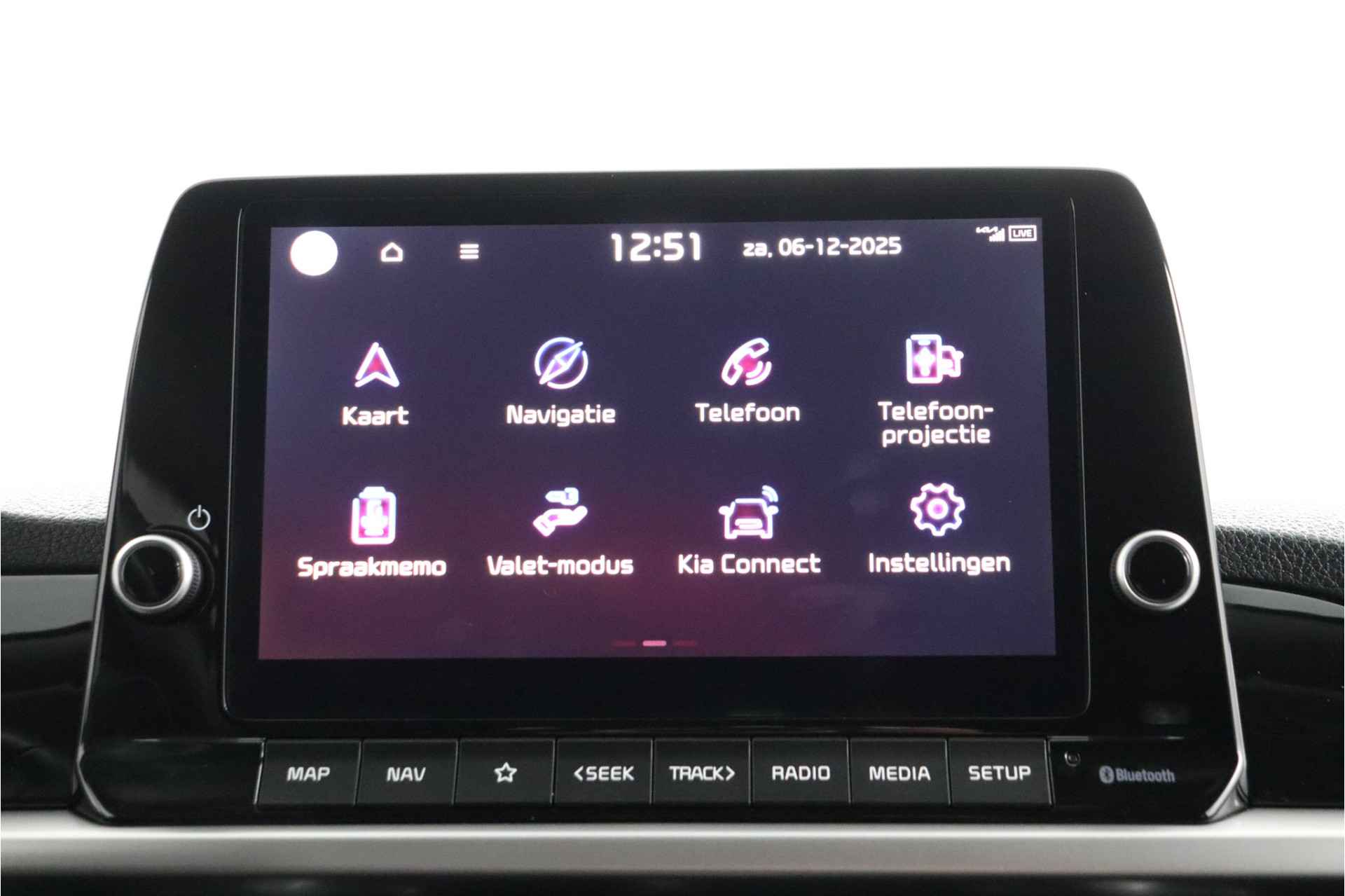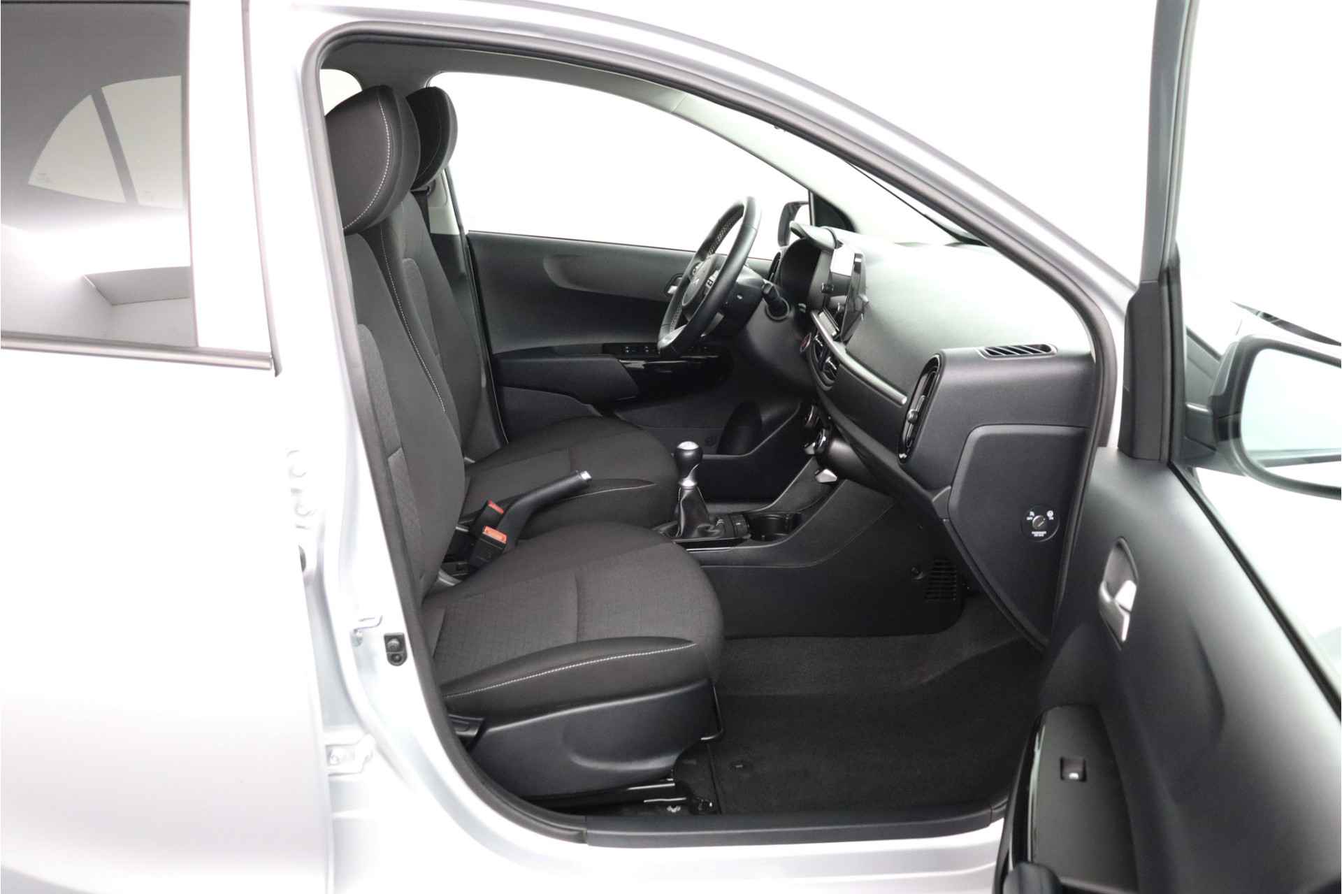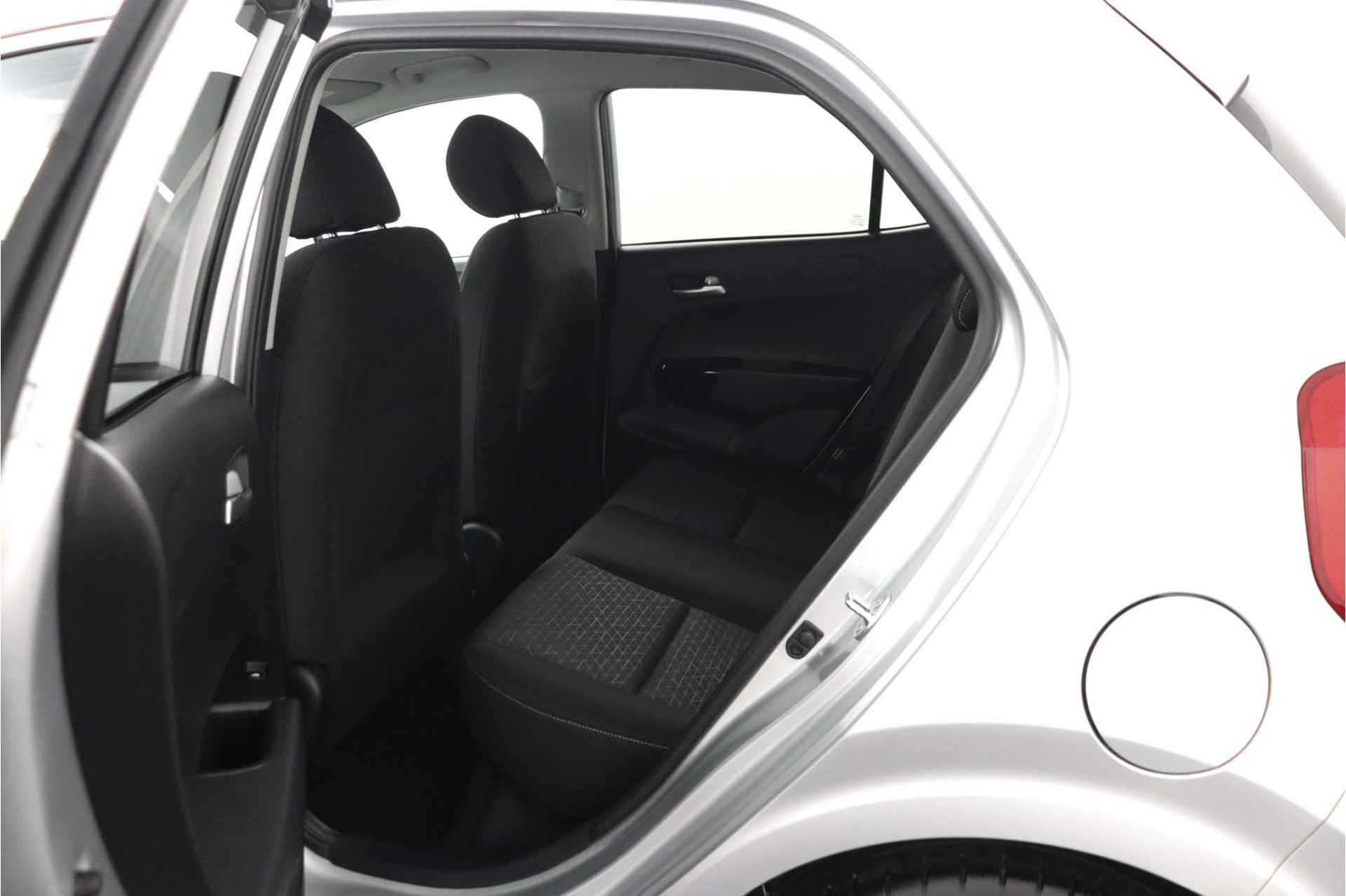 Deze compacte, comfortabele Kia Picanto is een typische stadsauto. Wendbaar, makkelijk te parkeren, pittig in rijgedrag en zuinig bovendien. De aandrijving komt voor rekening van een benzinemotor en een handgeschakelde vijfversnellingsbak. Bij de rijke uitrusting horen ook 15 inch lichtmetalen velgen, LED-dagrijverlichting, donker getint glas achter, in delen neerklapbare achterbank en LED-achterlichten. Zelfs een kleine aanrijding kan flinke kosten veroorzaken. Gelukkig laat de achteruitrijcamera precies zien wat er zich achter de auto bevindt en geeft een waarschuwingssignaal. Communiceren met uw auto? Dat gaat via remote services. Met uw smartphone maakt u waar dan ook contact om allerlei functies te checken of te activeren. U bedient het full map navigatiesysteem en het audiosysteem met DAB-radio via knoppen op het stuur, of zelfs met uw stem. Zo kunt u steeds uw aandacht gericht houden op de weg. Ook is de auto voorzien van electronic climate control. Voor de lange ritten is de cruise control een verademing. De uitrusting van deze Kia is met keyless entry en verstelbaar stuur behoorlijk compleet. Deze auto is voorzien van innovatieve systemen die u onderweg begeleiden en beschermen. De auto is ook uitgerust met hill hold functie, autonoom remsysteem en bandenspanningcontrolesysteem. Laat het ons meteen weten als u interesse heeft in deze Kia, dan kunnen we een afspraak maken om u de auto te demonstreren.