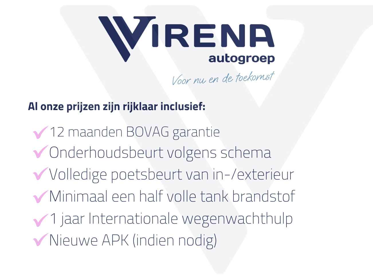 Jouw maandbedrag is afhankelijk van meerdere factoren. Onze vanafprijs is berekend op basis van een looptijd van 60 mnd, 10.000km/jr, een vooruitbetaling t.w.v. 3000,- en 8 schadevrije jaren op je autoverzekering. Vraag daarom een offerte aan en ontdek jouw persoonlijke maandbedrag.