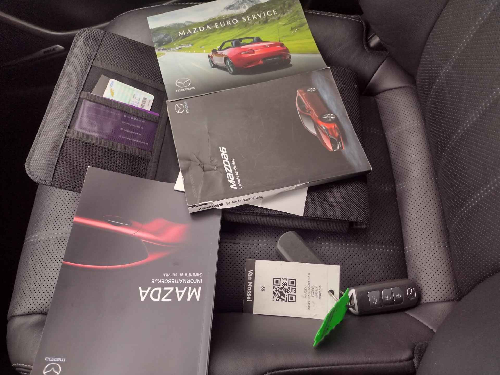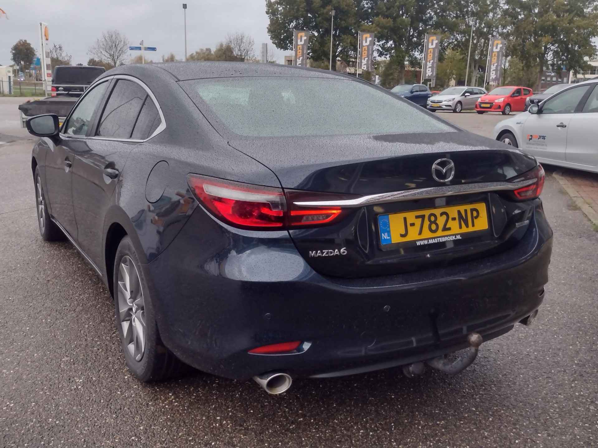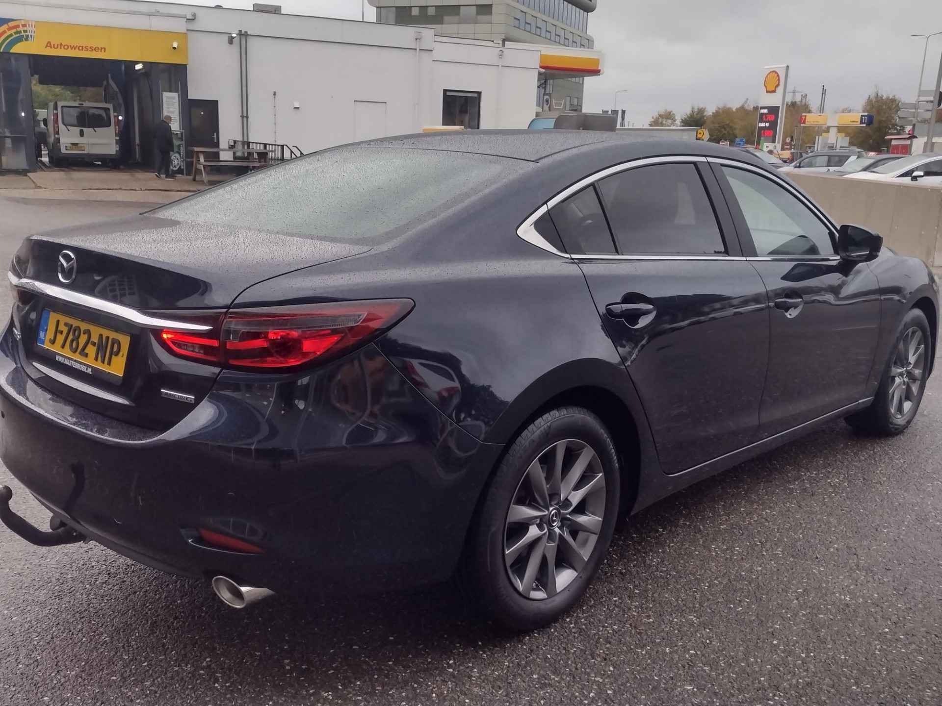 Een kenmerk van Japanse auto's is de intelligente techniek, maar ook de ver doorgevoerde degelijkheid. In deze auto vindt u een benzinemotor en een handgeschakelde zesversnellingsbak. Ook een fijne dosis klasse is bijgeleverd, met het lederen interieur. Deze Mazda 6 legt bestuurder én bijrijder compleet in de watten met de verwarmbare voorstoelen. Tot de uitrusting van deze Mazda behoren ook 17 inch lichtmetalen velgen, LED koplampen, donker getint glas achter, in delen neerklapbare achterbank, LED-achterlichten en verstelbare lendensteunen. De kracht van de 360 graden camera op deze auto resulteert in optimale zichtbaarheid en veiligheid. Als u de adaptive cruise control inschakelt, regelt de auto zelf de snelheid en de afstand tot de auto voor u. Praat tegen deze auto en de auto doet wat u wilt dankzij de ingebouwde spraakbediening. De auto is voorzien van een trekhaak en is een uitstekende caravantrekker. Zo kan muziek in de auto klinken: het high performance audiosysteem levert topklasse geluid! Met full map navigatiesysteem, achteropkomend verkeer waarschuwing, automatische airconditioning, DAB ontvangst, regensensor en keyless entry is deze auto helemaal compleet. De nieuwste veiligheidssystemen komen in deze Mazda 6 samen. Verkeersborddetectie herkent tijdelijke en permanente verkeersborden langs en boven de weg. Keep your lane? Het Lane-keeping systeem zorgt er automatisch voor. Forward collision warning is een automatisch waarschuwingssysteem dat direct in werking treedt bij gevaar voor een kop-staartbotsing. Ook helpen het head-up display, dodehoekdetectie, hill hold functie, brake assist, vermoeidheidsherkenning en bandenspanningcontrolesysteem, uw rit tot een veilige rit te maken. Vanzelfsprekend leveren wij deze auto met BOVAG Garantie. Laat het ons meteen weten als u interesse heeft in deze auto, dan kunnen we een afspraak maken om u de auto te demonstreren.