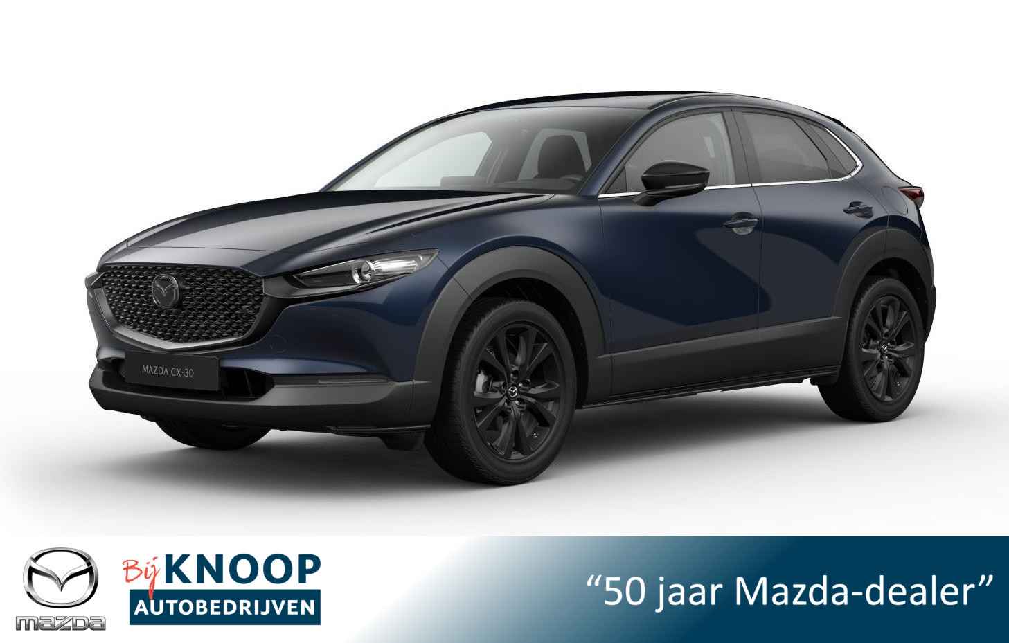 DIRECT UIT VOORRAAD leverbare Mazda CX-30 e-Skyactiv-G 140pk Nagisa uitvoering in de kleur Deep Crystal Blue Mica nu met € 3.000,- voorraadkorting ! Natuurlijk, dit is een innovatieve auto met zijn hybridetechniek. Maar het is bovendien ook een auto die is gebouwd voor jarenlang rijcomfort. Het gaat hier om een nieuwe auto, hij is nu direct leverbaar. Met deze hybride Mazda CX-30 ben je niet voor één gat te vangen. Je kan kiezen voor elektrisch rijden of benzine. Met de voordelen van allebei. Ook in de winter en als het koud is, heeft u het snel weer warm dankzij de stoelverwarming in deze auto. De elektrisch bedienbare achterklep opent met een druk op de knop. Bij de uitrusting van deze auto horen onder meer 18 inch lichtmetalen velgen, LED koplampen, dakspoiler, extra getint glas, LED-achterlichten en verstelbare lendensteunen. Niets achter deze auto blijft verborgen door de achteruitrijcamera. Een veilig gevoel! Adaptive cruise control is veilig en comfortabel. De snelheidsregelaar houdt automatisch afstand tot het voertuig dat voor u rijdt. Zo'n lekkere jonge auto heeft natuurlijk leuke extra's, zoals remote services. Met een speciale app maakt u overal verbinding met de auto. Zo kunt u functies activeren en controleren. De luidsprekers van het high performance audiosysteem omringen u met een uitgebalanceerd geluid. Deze Mazda CX-30 is een complete auto anno nu, en dat merk je. Bijvoorbeeld door de aanwezige draadloze oplaadmogelijkheid voor telefoons. Natuurlijk behoren dashboard met spraakbediening, full map navigatiesysteem, electronic climate control, DAB ontvangst, regensensor en keyless entry ook tot de uitrusting van deze complete auto. Deze Mazda is voorzien van verschillende intelligente veiligheidsvoorzieningen. Ze kijken tijdens het rijden als het ware met u mee, ze signaleren potentieel gevaarlijke situaties en in een aantal gevallen kunnen ze ook ingrijpen. Rijden met het overzicht van een straaljagerpiloot? De praktische en veilige head-up display projecteert dashboardinfo binnen uw gezichtsveld, zodat u uw blik nooit hoeft te verplaatsen. Oog op de weg! Een belangrijke bijdrage aan de veiligheid onderweg levert de verkeersbord-detectie in deze Mazda. Een camera houdt de juiste koers binnen de rijstrook in de gaten en het Lane-keeping systeem corrigeert bij afwijkingen. In deze Mazda vinden we verder een dodehoekdetectie, hill hold functie, brake assist, vermoeidheidsherkenning en bandenspanningcontrolesysteem. We hebben ons best gedaan om de kwaliteit van deze CX-30 aan u uit te leggen, maar er gaat toch niets boven een proefrit. Als u contact met ons opneemt, zetten we de auto voor u klaar. We horen graag van u.