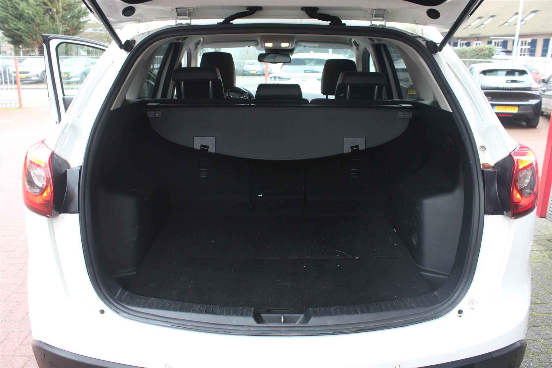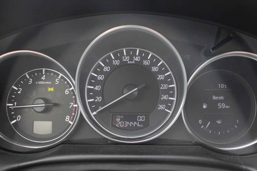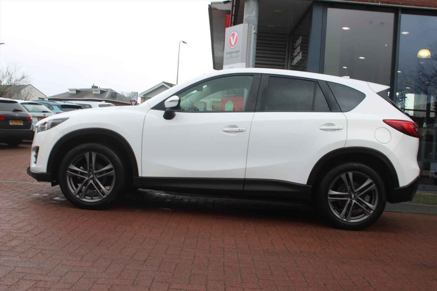 Hoogwaardige materialen in het interieur, een onderstel dat garant staat voor uitstekende rijeigenschappen en een motor die plenty power biedt, maar ook zuinig met brandstof omgaat. De MAZDA Cx-5 biedt een heleboel waar voor zijn geld. De aandrijving van deze MAZDA wordt verzorgd door een viercilinder benzinemotor en een handgeschakelde zesversnellingsbak. Het stijlvolle lederen interieur geeft deze MAZDA Cx-5 net dat beetje extra. De verwarmbare voorstoelen zijn een weldaad voor rug en schouders. Bij de zeer complete uitrusting van deze auto behoren ook 17 inch lichtmetalen velgen, adaptieve bochtverlichting, donker getint glas achter, in delen neerklapbare achterbank en LED-achterlichten. Onder alle omstandigheden perfect zicht op wat zich achter de auto afspeelt: de parkeerhulp met achteruitrijcamera zorgt ervoor! De auto is voorzien van een trekhaak en is een uitstekende caravantrekker. De optimale rij- en muziekervaring smelten samen door het aanwezige Bose audiosysteem. Het spreekt voor zich dat een auto als deze ook van dual zone automatische airconditioning is voorzien. De ene neerslag is de andere niet. Dankzij de regensensor krijgt u automatisch precies zoveel wisbewegingen die het zicht nodig heeft. Deze auto is voorzien van Bose-audioinstallatie, navigatiesysteem, DAB+ radio, cruise control, keyless entry en automatisch dimmende binnenspiegel. In de MAZDA Cx-5 heeft uw veiligheid en die van uw omgeving prioriteit. Veilig inhalen wordt bevorderd door de actieve dodehoekdetectie. Die hill hold control: ja, die had u wel willen hebben bij het afrijden. Want zo stelt een hellingproef echt niks meer voor. Bij een noodstop levert de Brake Assist automatisch nóg meer remkracht om de remweg te verkorten. U bent nieuwsgierig? Bel of mail ons dan direct om een proefrit met deze MAZDA te reserveren.