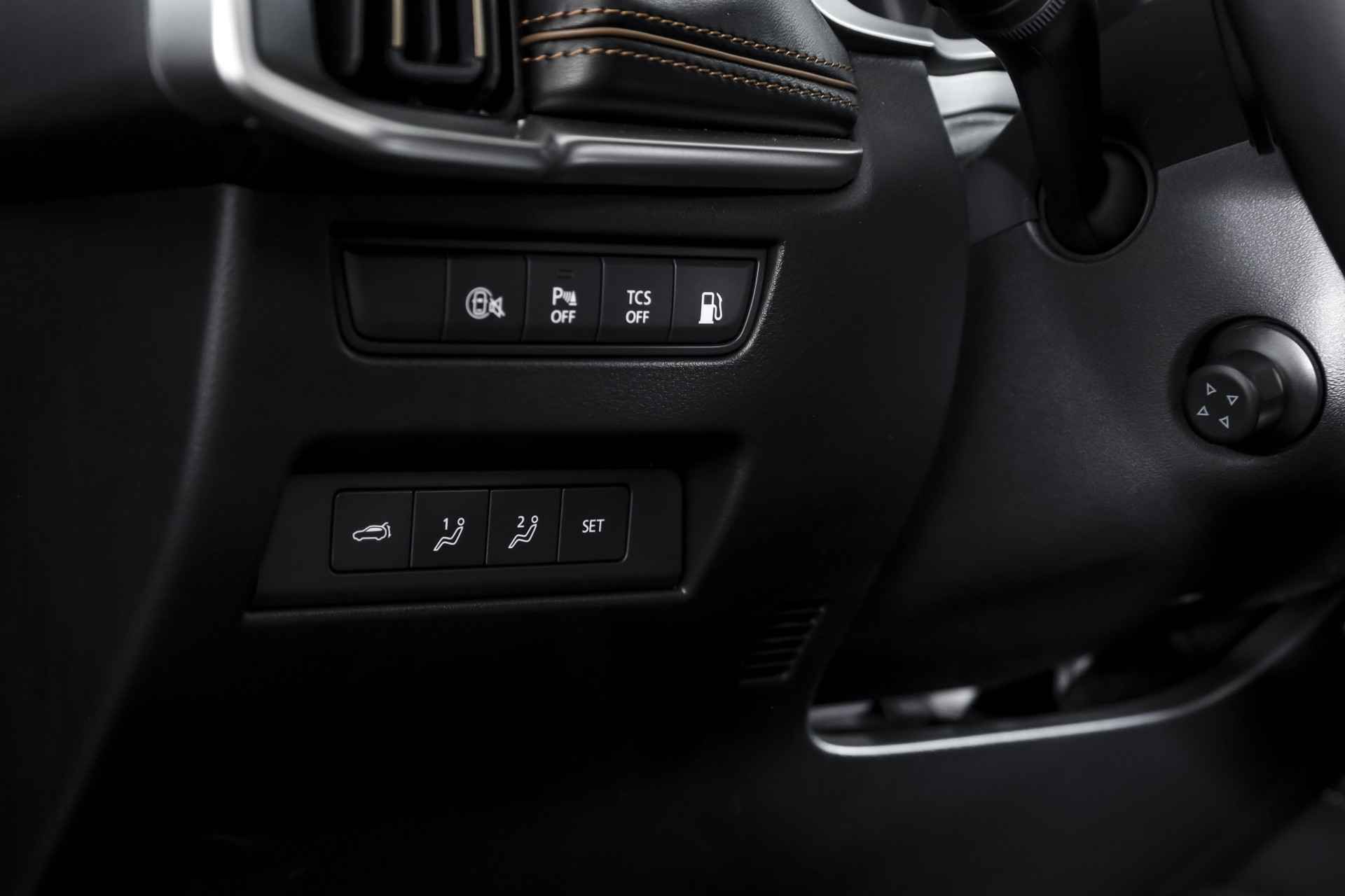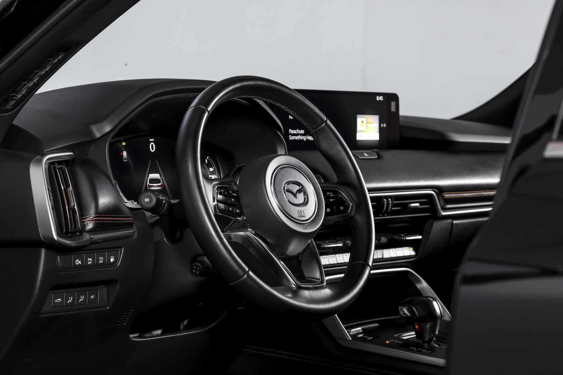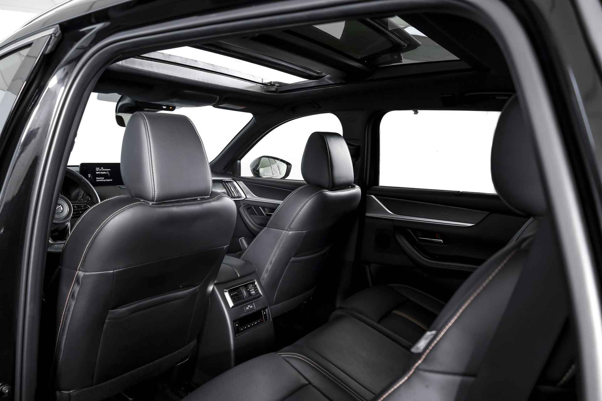 Deze Mazda CX-80 2.5 e-SkyActiv PHEV Homura Plus uit bouwjaar 2025 is uitgevoerd als 7-persoons en heeft een kilometerstand van 20.205 km. Een jonge, rijk uitgeruste auto die comfort, ruimte en moderne techniek op een prettige manier combineert. Als Homura Plus uitvoering onderscheidt deze CX-80 zich door zijn luxe en complete karakter. Het interieur is voorzien van luxe lederen bekleding met elektrisch verstelbare voorstoelen, waarbij de bestuurdersstoel elektrisch verstelbaar is met geheugen en ook de passagiersstoel elektrisch verstelbaar is. Zowel voorstoelen verwarmd als achterstoelen verwarmd zijn aanwezig, en voorin is er bovendien stoel ventilatie voor. Het stuur leder is prettig in de hand en extra comfortabel dankzij het stuur verwarmd. Op het gebied van technologie en gebruiksgemak is deze Mazda zeer compleet. Het volledig digitaal instrumentenpaneel werkt samen met het overzichtelijke head-up display, zodat belangrijke informatie altijd duidelijk zichtbaar is. Navigeren en bedienen gaat eenvoudig via het multimediasysteem met Apple Carplay/Android Auto, aangevuld met een draadloze telefoonlader en een Bose geluidsinstallatie voor een hoogwaardige geluidsbeleving. De electronic climate control en airco separaat achter zorgen ervoor dat alle inzittenden comfortabel reizen. Rijden doet u ontspannen dankzij cruise control adaptief met stop&go en stuurhulp, terwijl veiligheid wordt ondersteund door onder andere dodehoekdetectie met correctie. Parkeren en manoeuvreren gaat moeiteloos met parkeersensor voor en achter in combinatie met de rondomzicht camera. Praktisch in het dagelijks gebruik is ook de elektrisch bedienbare achterklep met sensorsturing. Het exterieur sluit mooi aan bij het luxe niveau, met onder meer LED koplampen, een elektrisch glazen panorama-dak en lichtmetalen velgen 5-spaaks 20". Kortom, een zeer complete en moderne Mazda CX-80 voor wie een ruime 7-persoons plug-in hybride zoekt met comfort, luxe en betrouwbaarheid, zonder dat het overdreven aanvoelt.