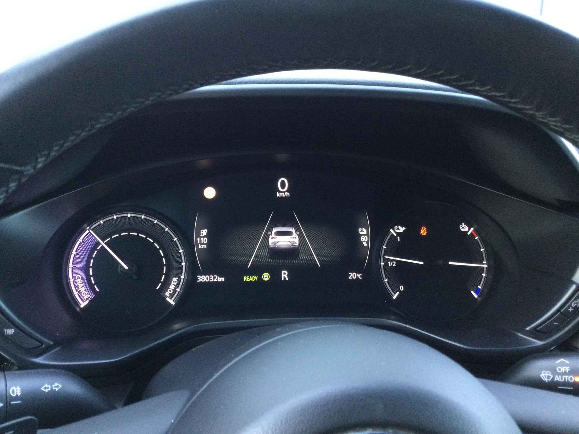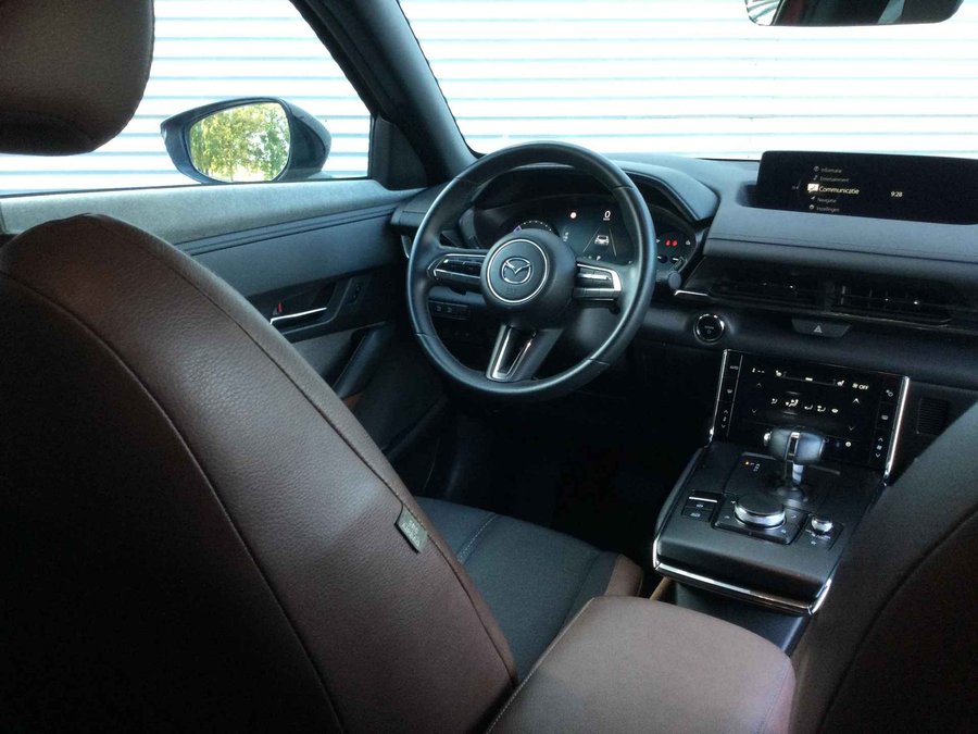 Schoonheid van buiten, schone techniek van binnen. Deze Mazda MX-30 maakt elektrisch rijden aantrekkelijker dan ooit. Op een volle acculading kan deze auto de gebruikelijke dagelijkse ritten allemaal maken. Het opladen gaat eenvoudig aan een openbare laadpaal of aan uw eigen oplaadpunt thuis. De auto heeft een opmerkelijk lage kilometerstand van slechts 38032 De meegeleverde stoelverwarming zorgt in no time voor een behaaglijk gevoel als het buiten koud is. In deze Mazda profiteert u onder andere ook van: 18 inch lichtmetalen velgen, LED koplampen, extra getint glas, in delen neerklapbare achterbank, elektrisch bediende, verwarmde en inklapbare buitenspiegels en elektrisch bedienbare ramen voor. Alles vrij achter? De achteruitrijcamera laat het meteen zien. Als u de adaptive cruise control inschakelt, regelt de auto zelf de snelheid en de afstand tot de auto voor u. Dankzij Connected Services weet u precies waar uw auto geparkeerd staat. Ook andere functies, zoals bandenspanning en brandstofniveau, zijn via de app altijd onder handbereik. In deze auto wordt u elke rit opnieuw bijgestaan door een gebruiksvriendelijk navigatiesysteem, terwijl u luistert naar het glasheldere geluid van het audio-installatiesysteem met DAB-radio. Als bijzondere veiligheidsoptie heeft deze Mazda MX-30 kruisend verkeer detectie, die waarschuwt als een botsing dreigt met tegemoetkomend verkeer. Ook is de Mazda uitgerust met: electronic climate control, regensensor, automatisch dimmende binnenspiegel, lederen stuur en versnellingspook en centrale deurvergrendeling met afstandsbediening. De Mazda MX-30 is uw trouwe partner onderweg, want hij houdt continu voor u de situatie op en om de weg in de gaten. Volautomatische veiligheidssystemen kunnen daarbij ingrijpen om u voor gevaarlijke situaties te behoeden. Eyes on the road! Dat kan iedere seconde, dankzij de head-up display, die informatie projecteert op de voorruit. De actuele snelheidslimiet, een inhaalverbod en andere verkeersborden; de verkeersborddetectie ondersteunt u tijdens elke rit. Het Lane-keeping systeem let constant op en waarschuwt of corrigeert als u onoplettend over de lijnen van de rijstrook gaat. De auto is ook uitgerust met dodehoekdetector detectiesysteem, hill hold functie, brake assist, vermoeidheidsherkenning en bandenspanningcontrolesysteem. Elektrisch rijden ervaren? Neem contact op en maak een afspraak voor een proefrit.