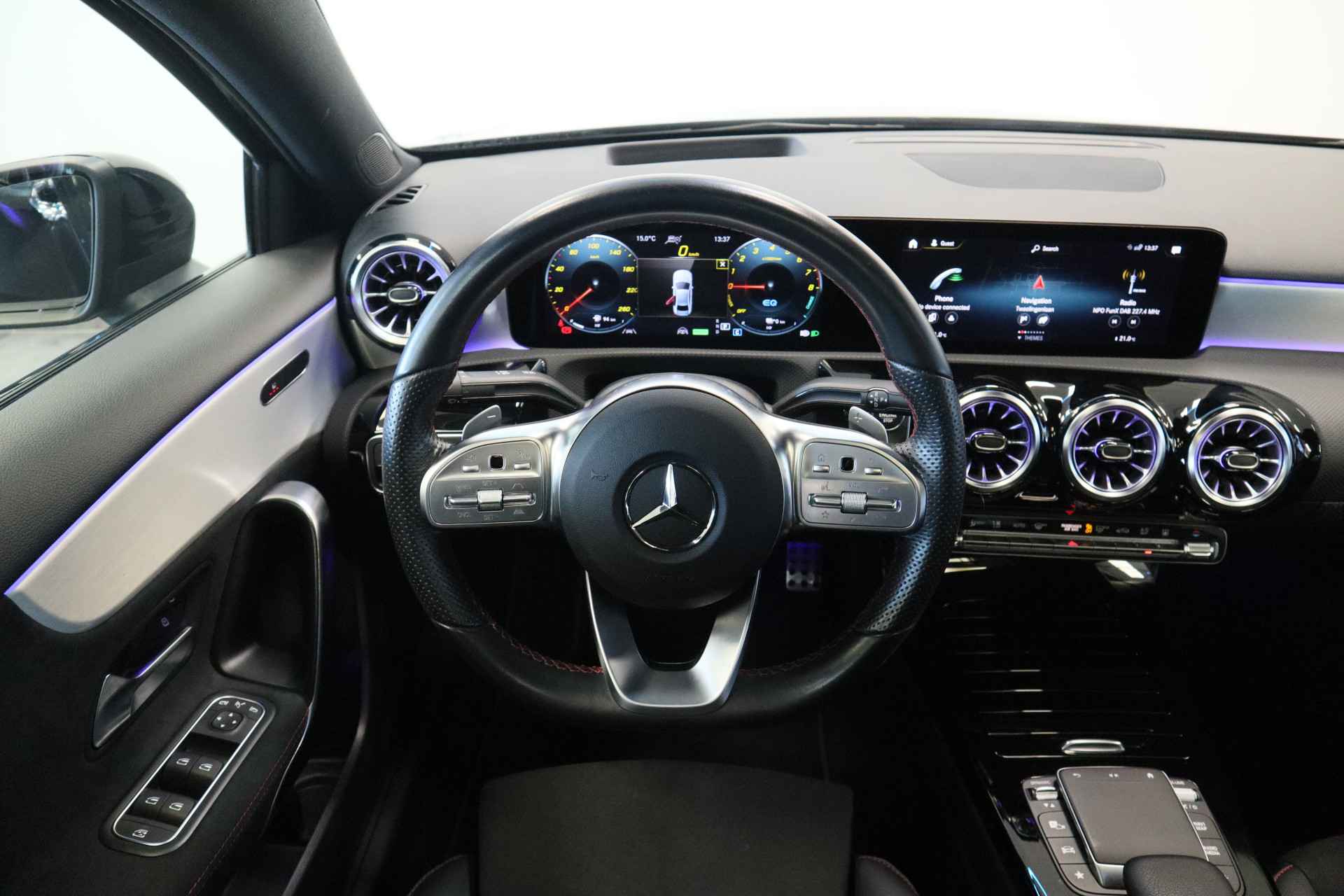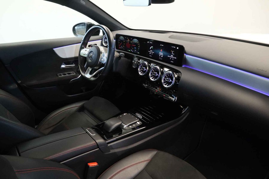 Typerend voor Duitse auto's als deze Mercedes-Benz A-klasse is dat een mooi ontwerp en uitstekende rijeigenschappen hand in hand gaan. De stijlvol getekende carrosserie verhult een state-of-the-art techniek, motorisch laat deze auto niets te wensen over en het weggedrag van de A-klasse is uitstekend. Houdt u van een sportieve, dynamische uitstraling? Dan komt de AMG-styling als geroepen. In deze auto vindt u een benzinemotor en een automatische transmissie. U past de stoelen moeiteloos aan, ze zijn elektrisch in te stellen en hebben bovendien een geheugen. Licht, luxe en gemak komen samen in de vorm van het elektrische bediende glazen panoramadak. Dankzij de matrix LED-verlichting geven de koplampen ook in het donker daglicht. Natuurlijk behoren 18 inch lichtmetalen velgen, AMG-styling, warmtewerend glas en verstelbare lendensteunen ook tot de uitrusting van deze complete auto. Alle ritinformatie en communicatie is gebundeld in één overzichtelijk digitale dashboard. Soepel inparkeren in de krapste parkeervakken. De achteruitrijcamera maakt het mogelijk. Adaptive cruise control is veilig en comfortabel. De snelheidsregelaar houdt automatisch afstand tot het voertuig dat voor u rijdt. Spraakbediening verhoogt de veiligheid en het gebruiksgemak. De auto luistert naar uw instructies en volgt ze op. Wat is de onderhoudsstatus van deze auto? U checkt het snel, simpel en overal via uw smartphone. En deze auto heeft ook navigatiesysteem met harde schijf, WIFI-hotspot, kruisend verkeer detectie, automatische airconditioning, multifunctioneel lederen stuur en digitale radio als standaard uitrusting. Deze Mercedes-Benz biedt u niet alleen comfort en rijplezier, maar ook veiligheid. Actieve veiligheidssystemen houden voor u de weg in de gaten en reageren op onvoorziene situaties voordat u dat kunt. Net als in een straaljager kunt u altijd vooruit blijven kijken. De head-up display zorgt dat uw ogen geen seconde hoeven af te dwalen en projecteert alle benodigde info op de voorruit.. Onderweg fungeert de verkeersbord-detectie als het ware als uw bijrijder en attendeert u op de verkeersborden langs de weg. Keep your lane? Het Lane-keeping systeem zorgt er automatisch voor. Verder is deze auto uitgerust met dodehoekdetector detectiesysteem, forward collision warning system, brake assist en bandenspanningcontrolesysteem. Wij leveren u deze auto natuurlijk met een tellerrapport van Nationale Autopas. Wilt u met deze Mercedes-Benz A-klasse een proefrit maken? Bel of mail ons dan nu voor een afspraak.