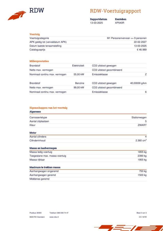 Mitsubishi Outlander 2.4 PHEV Instyle Trekhaak | Elektr Achterklep | Schuif-Kanteldak - Kenteken: XP-540-R - Merk: Mitsubishi - Model: Outlander - APK tot: 22-02-2027 - Tellerstand: 118717 KM - Carrosserievorm: SUV - Aantal deuren: 5 - Brandstofsoort: Hybride (Elektrisch/Benzine) - Accucapaciteit: 13 kWh - Bouwjaar: 2019 - Transmissie: Automaat - Kleur: zwart Metallic - Kleurnaam: Amethyst Black - Bekleding: Leder - Kleur interieur: zwart - Motorinhoud: 2360 cc - Aantal cilinders: 4 - Motorcode: 4B12 - Vermogen: 99 kW / 135pk - Ledig gewicht: 1855 kg - Max. trekgewicht: 1500 kg - Aantal zitplaatsen: 5 - Verbruik: 2 l/100 km - BTW/Marge: Marge, de BTW is niet aftrekbaar - Lengte: 470 cm - Breedte: 180 cm - Hoogte: 1703 cm - Aantal sleutels: 2 - Motorrijtuigenbelasting: € 258 - 282 per kwartaal - Emissieklasse: Euro 6 Comfort - Regensensor Exterieur - Achterspoiler - Buitenspiegels elektrisch inklapbaar - Buitenspiegels elektrisch verstel- en verwarmbaar - Dakrails - Dimlichten automatisch - Elektrisch bedienbare achterklep - Elektrisch glazen schuif-/kanteldak - Extra getint glas achter - Keyless entry - LED achterlichten - LED dagrijverlichting - LED koplampen - Lichtmetalen velgen 18" - Metaalkleur - Parkeersensor voor en achter - Side-skirts - Trekhaak Infotainment - Audio installatie premium - DAB - Multimedia-voorbereiding - Radio - Stuur multifunctioneel Interieur - Achterbank in delen neerklapbaar - Armsteun achter - Armsteun voor - Bagagedek - Bestuurdersstoel in hoogte verstelbaar - Binnenspiegel automatisch dimmend - Cruise control adaptief - Electronic climate control - Elektrisch verstelbare bestuurdersstoel - Elektrische ramen voor en achter - Lederen bekleding - Lendesteunen (verstelbaar) - Standkachel - Stuur leder - Stuur verstelbaar - Stuur verwarmd - Stuurbekrachtiging snelheidsafhankelijk - Voorstoelen verwarmd Milieu - Start/stop systeem Overige - Achteropkomend verkeer waarschuwing - Achteruitrij assistent - Anti Blokkeer Systeem - Anti doorSlip Regeling - Apple Carplay/Android Auto - Autonomous Emergency Braking - Bestuurdersairbag - Bluetooth - Bots waarschuwing systeem - Brake Assist System - Dodehoek detectie - Elektronisch Stabiliteits Programma - Elektronische remkrachtverdeling - Hoofd airbag(s) achter - Hoofd airbag(s) voor - Keyless start - Knie airbag(s) - Kruisend verkeer detectie - LED mistlampen - Oplaadmogelijkheid - Passagiersairbag - Rondomzicht camera - Zij airbag(s) voor Veiligheid - Alarm klasse 1(startblokkering) - All-Weather banden - Bandenspanningscontrolesysteem - Grootlichtassistent - Hill hold functie - Rijstrooksensor Deze zeer gunstig geprijsde Mitsubishi Outlander is zonder overdrijven echt een fantastische occasion. Deze hybride auto heeft een sterke, zuinige elektromotor én een verbrandingsmotor. Kortom: uitstekende rijprestaties en een veel lager brandstofgebruik. Maximaal comfort en stijl krijgt u dankzij het lederen interieur. Ga samen met uw bijrijder lekker zitten in de verwarmbare voorstoelen. Voor extra lichtinval en een frisse luchtstroom zorgt het elektrisch bediende panoramadak. De elektrische achterklep opent met een druk op de knop, zodat u gemakkelijk toegang heeft tot de bagageruimte. Hoe koud het buiten ook is, het verwarmbare stuurwiel brengt uw handen en vingers snel weer op temperatuur. Natuurlijk behoren 18 inch lichtmetalen velgen, LED koplampen, aluminium dakrailing, elektrisch inklapbare buitenspiegels, donker getint glas achter en in delen neerklapbare achterbank ook tot de uitrusting van deze complete auto. De standkachel verwarmt het interieur voor. Dat betekent meer comfort voor u en minder slijtage voor de auto. De kracht van de 360 graden camera op deze auto resulteert in optimale zichtbaarheid en veiligheid. Adaptive cruise control houdt de ingestelde snelheid vast en houdt afstand tot het voertuig voor u. De auto is voorzien van een trekhaak en is een uitstekende caravantrekker. Ook het geluid aan boord is top-of-the-line. Het high performance audiosysteem levert superieure prestaties. Deze Mitsubishi is voorzien van achteropkomend verkeer waarschuwing, kruisend verkeer detectie, electronic climate control, DAB ontvangst, regensensor en keyless entry. Zoals u mag verwachten van deze Mitsubishi Outlander is hij uitgerust met een reeks aan actieve veiligheidssystemen. Het Lane-keeping systeem zorgt voor een automatisch constante positie binnen de rijstrook. Afdwalen is uitgesloten. Het forward collision warning-systeem berekent via een sensor de afstand tot het verkeer vóór u en komt in actie als er gevaar bestaat van een botsing. U bent mede dankzij dodehoekdetectie, hill hold functie, brake assist en bandenspanningcontrolesysteem steeds veilig onderweg. Vanzelfsprekend leveren wij deze auto met Bovag Garantie. Nieuwsgierig geworden? Neem snel contact op om een afspraak te maken. Heeft u een vraag over deze auto neem dan telefonisch of via e-mail contact op met één van onze verkoopadviseurs. Voor een bezichtiging of proefrit bent u van harte welkom in onze showroom! Openingstijden van onze showroom: maandag t/m vrijdag: 8:00 - 18:00 uur zaterdag: 9:00 - 16:00 uur Adres: Van Andelstraat 7   5141 PB Waalwijk Autobedrijf van de Wouw is ook uw partner voor financiering, (private)leasing en verzekering van uw auto. Informeer naar de mogelijkheden, wij maken graag een passend voorstel. Al onze auto's worden geadverteerd met de RIJKLAARPRIJS! Meeneemprijs € 0,-  -Auto's tot € 4.500,- -Geldige APK van minimaal 3 maanden -Basis aflevercontrole (Controle vitale delen, verlichting, vloeistoffen/olie op peil, banden op spanning) -Tenaamstelling Voor levering inclusief Bovag garantie kiest u één van onderstaande pakketten: Service en Garantiepakket Standaard € 0,-  -Auto's boven € 4.500,- -Onderhoudsbeurt volgens fabrieksschema -Mobiliteitspas voor 24 uur per dag pechhulp in heel Europa -APK minimaal 6 maanden geldig -12 maanden volledige BOVAG garantie op een auto met een vraagprijs boven € 4.500,
