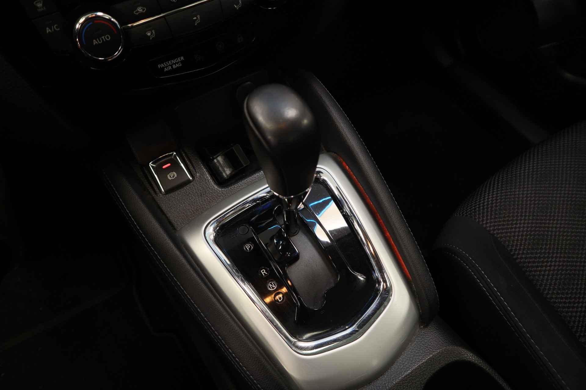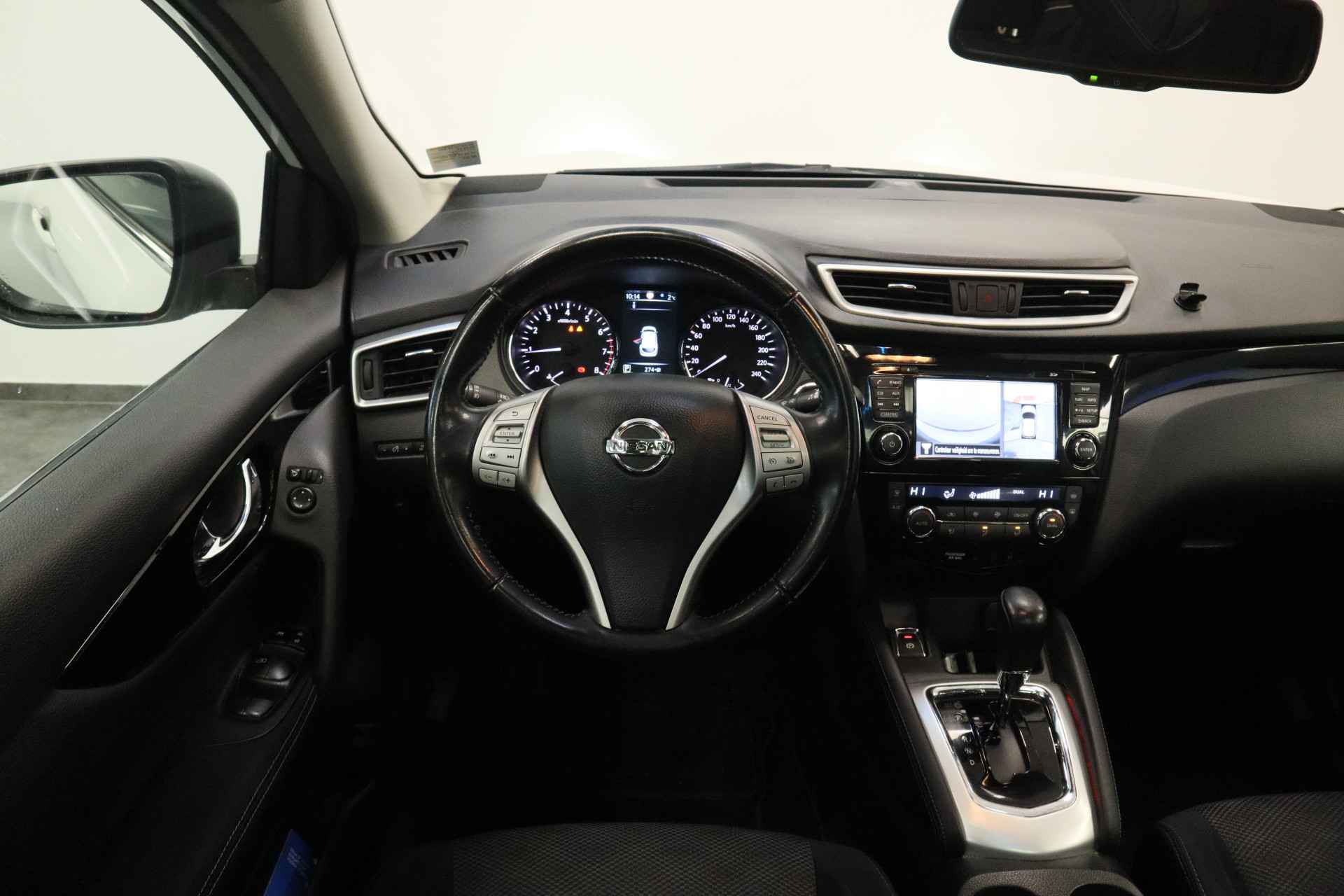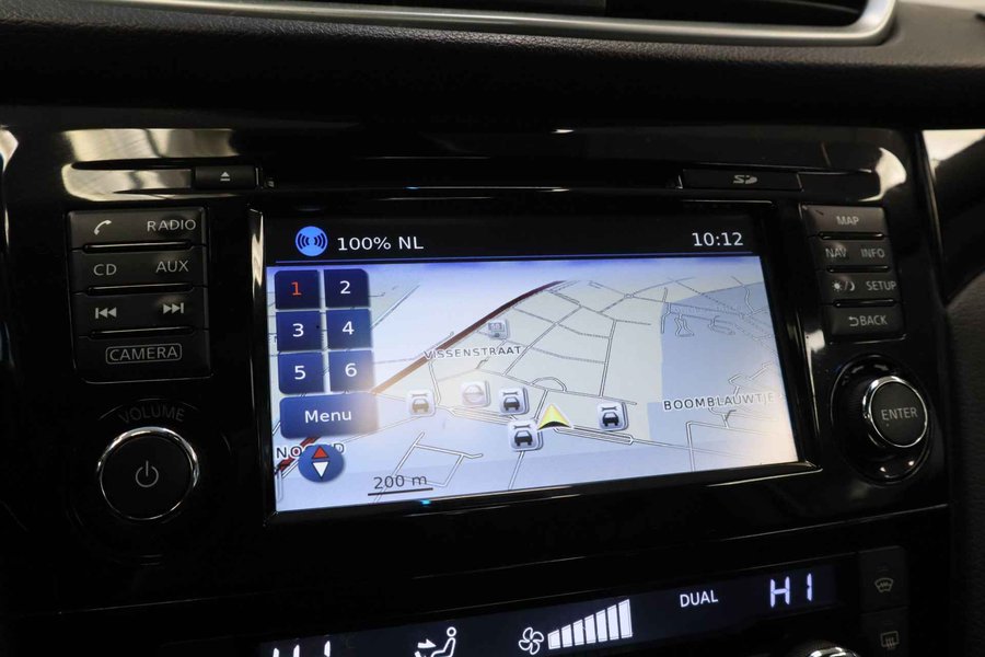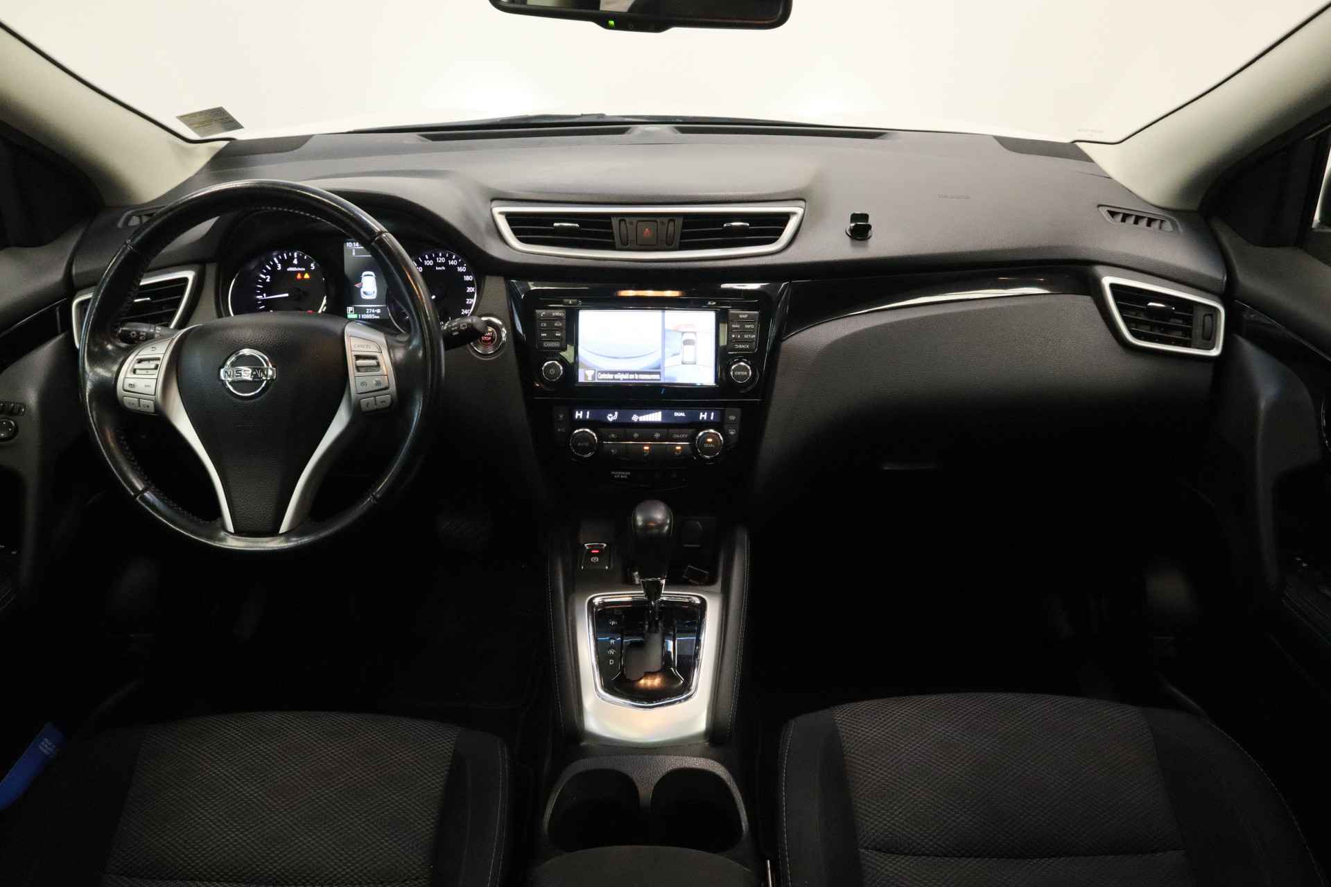 Voorop lopen in techniek en hoge eisen stellen aan rijgemak: daarmee staat Nissan al jaren in de lijst van populaire merken. Innovation that excites! Voor de aandrijving van deze SUV zorgen een viercilinder benzinemotor en een automatische transmissie. Natuurlijk behoren 18 inch lichtmetalen velgen, LED-dagrijverlichting, in hoogte verstelbare passagiersstoel, donker getint glas achter, in delen neerklapbare achterbank en verstelbare lendensteunen ook tot de uitrusting van deze complete auto. De vier camera's die samen de 360 graden camera vormen, bieden u de mogelijkheid om obstakels in elke richting te zien. Deze Nissan Qashqai is voorzien van remote services. Via uw smartphone bedient u diverse functies ook op afstand en krijgt u informatie over de status van uw auto. U verwacht natuurlijk automatische airconditioning in deze auto, en die is er dan ook. Een plekje vinden in de binnenstad is één, inparkeren is twee. Voor dat laatste heeft deze Nissan Qashqai prima parkeersensoren die u een handje helpen. Om de veiligheid onderweg te verhogen, heeft deze Nissan zowel een automatisch inschakelbare verlichting als een regensensor aan boord, zodat hij zelf de verlichting en de ruitenwissers kan inschakelen. Ook is de Nissan uitgerust met: navigatiesysteem, DAB ontvangst, cruise control, keyless entry, automatisch dimmende binnenspiegel en verstelbaar stuur. Zoals u mag verwachten van deze Nissan Qashqai is hij uitgerust met een reeks aan actieve veiligheidssystemen. In het instrumentarium kunt u bovendien de verkeersborden zien die u onderweg tegenkomt. Zo helpt deze Nissan u om veiliger te rijden. Het Lane-keeping systeem garandeert dat u zich niet onverhoeds buiten de lijnen van de rijstrook begeeft. U bent mede dankzij hill hold functie, autonoom remsysteem en bandenspanningcontrolesysteem steeds veilig onderweg. Klinkt dit allemaal aantrekkelijk? Maak dan een afspraak met onze verkoper!