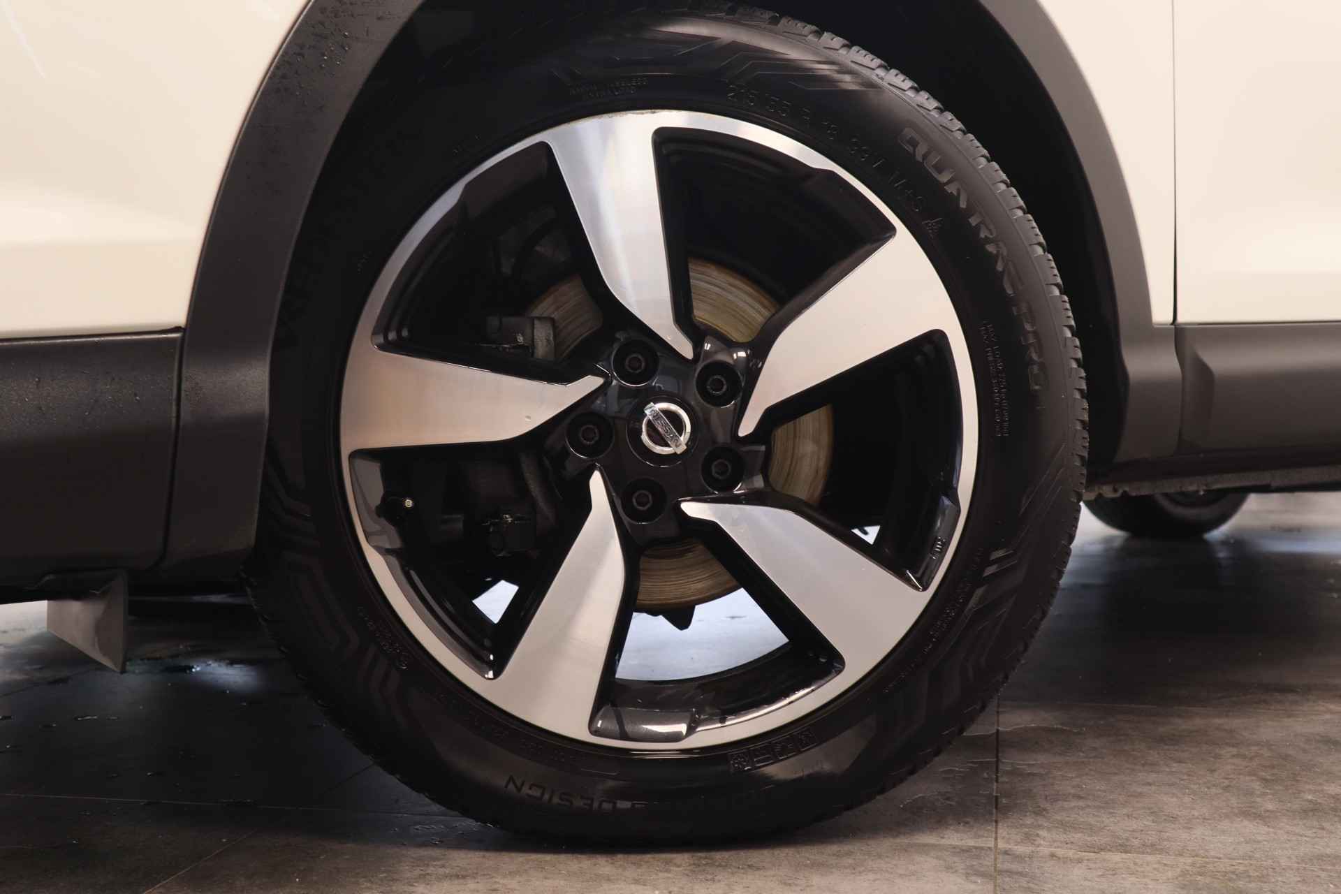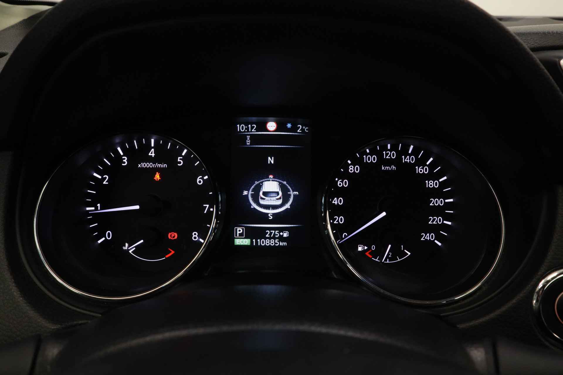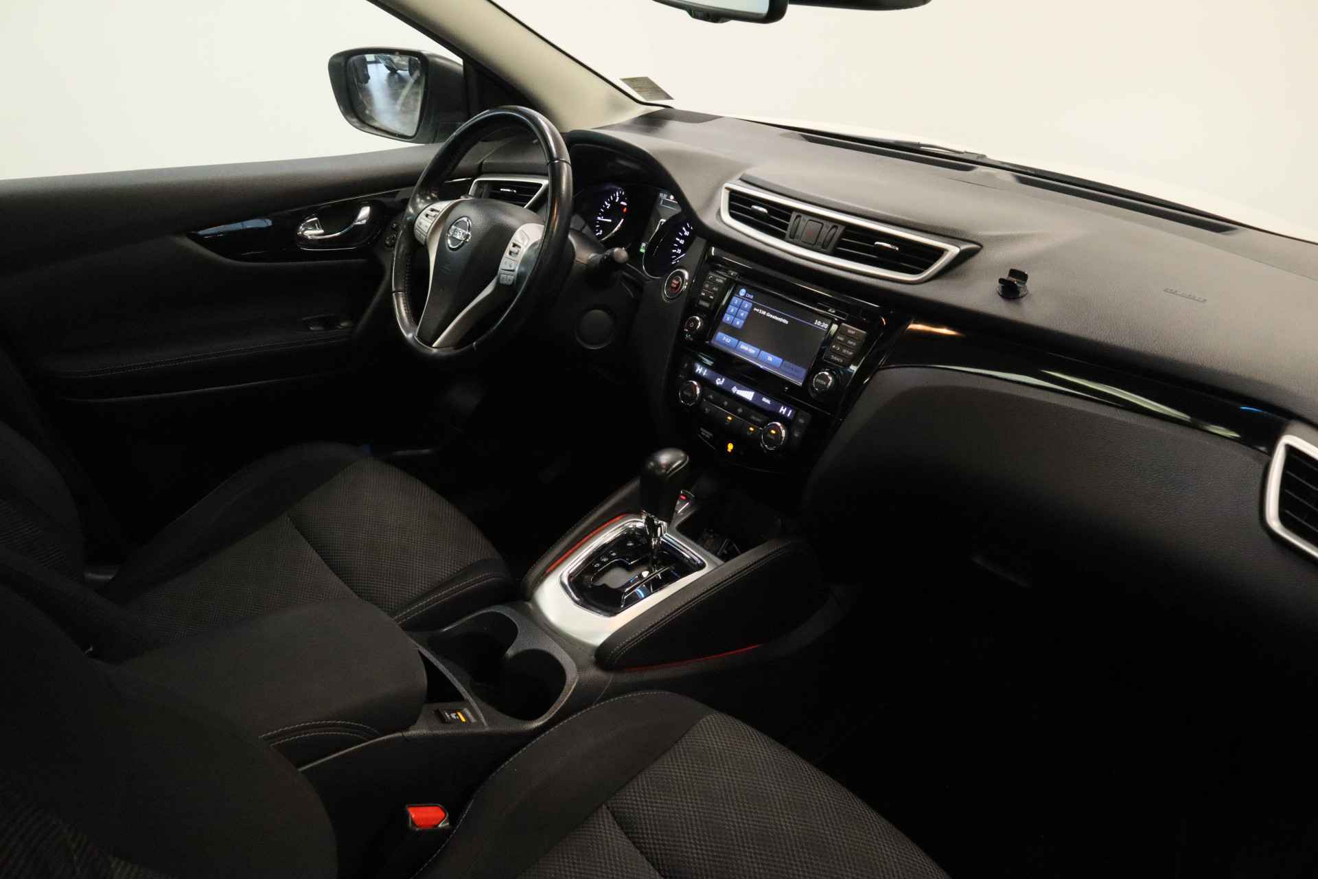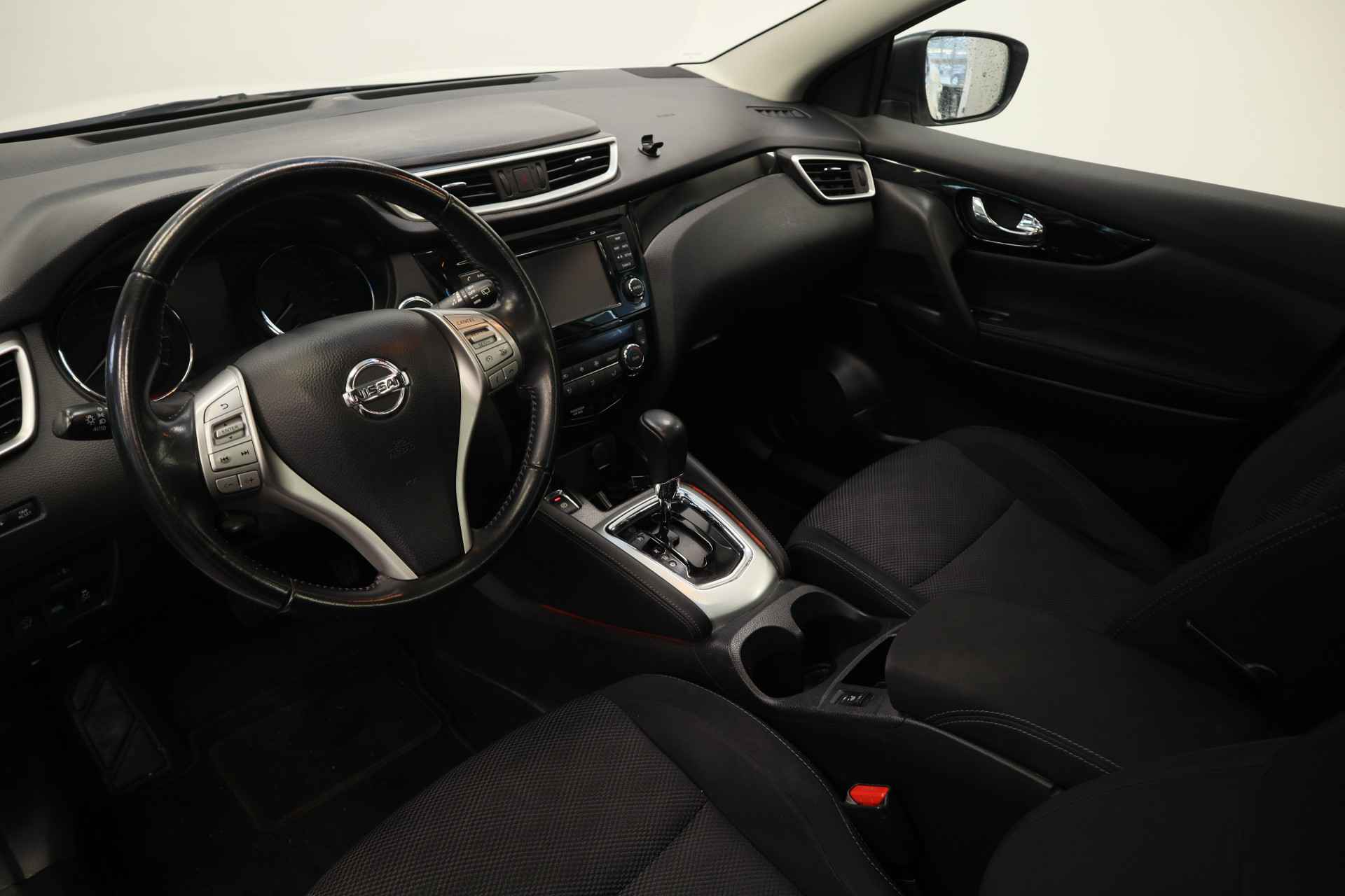 Voorop lopen in techniek en hoge eisen stellen aan rijgemak: daarmee staat Nissan al jaren in de lijst van populaire merken. Innovation that excites! Voor de aandrijving van deze SUV zorgen een viercilinder benzinemotor en een automatische transmissie. Natuurlijk behoren 18 inch lichtmetalen velgen, LED-dagrijverlichting, in hoogte verstelbare passagiersstoel, donker getint glas achter, in delen neerklapbare achterbank en verstelbare lendensteunen ook tot de uitrusting van deze complete auto. De vier camera's die samen de 360 graden camera vormen, bieden u de mogelijkheid om obstakels in elke richting te zien. Deze Nissan Qashqai is voorzien van remote services. Via uw smartphone bedient u diverse functies ook op afstand en krijgt u informatie over de status van uw auto. U verwacht natuurlijk automatische airconditioning in deze auto, en die is er dan ook. Een plekje vinden in de binnenstad is één, inparkeren is twee. Voor dat laatste heeft deze Nissan Qashqai prima parkeersensoren die u een handje helpen. Om de veiligheid onderweg te verhogen, heeft deze Nissan zowel een automatisch inschakelbare verlichting als een regensensor aan boord, zodat hij zelf de verlichting en de ruitenwissers kan inschakelen. Ook is de Nissan uitgerust met: navigatiesysteem, DAB ontvangst, cruise control, keyless entry, automatisch dimmende binnenspiegel en verstelbaar stuur. Zoals u mag verwachten van deze Nissan Qashqai is hij uitgerust met een reeks aan actieve veiligheidssystemen. In het instrumentarium kunt u bovendien de verkeersborden zien die u onderweg tegenkomt. Zo helpt deze Nissan u om veiliger te rijden. Het Lane-keeping systeem garandeert dat u zich niet onverhoeds buiten de lijnen van de rijstrook begeeft. U bent mede dankzij hill hold functie, autonoom remsysteem en bandenspanningcontrolesysteem steeds veilig onderweg. Klinkt dit allemaal aantrekkelijk? Maak dan een afspraak met onze verkoper!