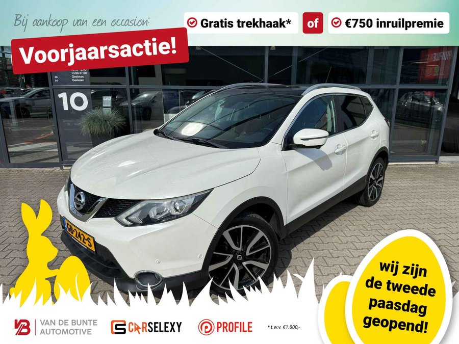 Nu binnen bij van de Bunte Automotive, deze prachtig uitgeruste Nissan Qashqai Tekna! Met onder andere, Panoramadak, Stoelverwarming, Dodehoekdetectie, 360graden camera en nog veel en veel meer! De Qashqai is bij ons nieuw geleverd aan de ​1e eigenaar en nu weer bij ons ingeruild! De Qashqai heeft ook een uitgebreide onderhoudshistorie! Nieuwsgierig geworden? Neem gerust contact op voor een gratis offerte en/of een vrijblijvende proefrit. Profiteer deze lente van onze Lente Deals! Let op! De trekhaak is nog niet gemonteerd, echter deze is wel bij de prijs inbegrepen. Att: Uiteraard controleren wij zo goed als mogelijk de opties die op onze occasions zitten. Echter kan het voorkomen dat deze kunnen afwijken. Is een bepaalde optie belangrijk voor u? Vraag erna! Wij kunnen dit extra controleren. Van de Bunte Automotive is al sinds 1991 het autobedrijf voor de Veluwe. Sinds het begin zijn wij Nissan-dealer voor Harderwijk, Nunspeet en omgeving. Van de Bunte is het vertrouwde adres voor een nieuwe of gebruikte auto, daarnaast hebben wij een ruim aanbod van occasions van andere merken. Bezoek ons aan de Zuiderbreedte 10 te Harderwijk (0341-217860). Voor meer informatie kijk op onze website www.vdb-automotive.nl (Drukfouten in advertentie voorbehouden)