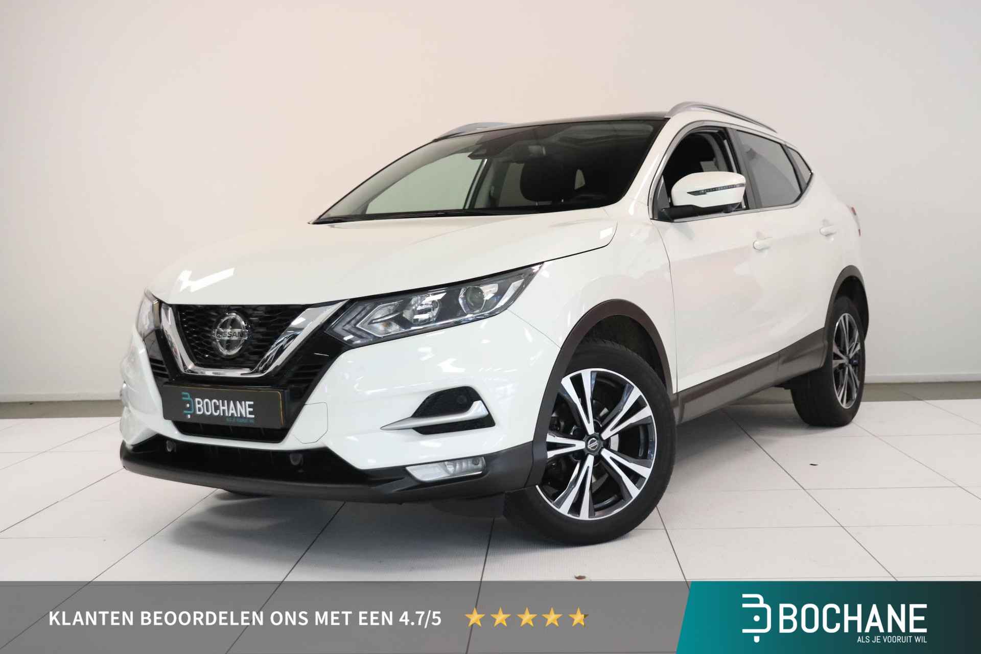 Deze zeer gunstig geprijsde Nissan Qashqai is zonder overdrijven echt een fantastische occasion. De aandrijving komt voor rekening van een benzinemotor en een automatische transmissie. Het interieur lijkt groter en ruimtelijker dankzij het glazen panoramadak. Verder is de Nissan uitgerust met: 18 inch lichtmetalen velgen, LED-dagrijverlichting, in hoogte verstelbare passagiersstoel, extra getint glas, in delen neerklapbare achterbank en LED-achterlichten. Dankzij de 360 graden camera kunt u zowel de voor- als achterzijde van het voertuig in het oog houden, wat bijdraagt aan een veiligere rijervaring. Gemak dient de mens. Dankzij de spraaksturing bedient u de belangrijkste functie met uw stem. Wegwijs in elke wijk, stad of reisbestemming? Daarvoor zorgt het full map navigatiesysteem! De auto is ook uitgevoerd met automatische airconditioning. Met de DAB-ontvanger heeft u keuze uit talloze digitale radiozenders met de allerhoogste geluidskwaliteit. Natuurlijk behoren regensensor, cruise control, keyless entry, automatisch dimmende binnenspiegel, lederen stuur en versnellingspook en centrale deurvergrendeling met afstandsbediening ook tot de uitrusting van deze complete auto. Pragmatisch en veilig als deze auto is, beschikt hij over diverse veiligheidssystemen. De actuele snelheidslimiet, een inhaalverbod en andere verkeersborden; de verkeersborddetectie ondersteunt u tijdens elke rit. Het Lane-keeping systeem zorgt dat u mooi binnen de lijntjes blijft. Ongemerkt buiten de rijstrook komen is er niet meer bij. Een veilige extra is de Brake Assist. Uit onderzoek blijkt dat bestuurders bij een noodstop niet het maximum uit hun remkracht halen. Met deze automatische remondersteuning wel. In deze Nissan vinden we verder een hill hold functie en bandenspanningcontrolesysteem. Wij kunnen ons goed voorstellen dat u deze Nissan wilt aanschaffen. Wacht daar dan niet mee en reserveer hem nu direct. Dan nemen wij zo snel mogelijk contact met u op om de aflevering te bespreken. Wilt u meer weten over deze auto of een afspraak voor bezichtiging maken, bel ons dan voor een afspraak op 026-2001167. De verkoopprijs van deze auto is inclusief een geldige APK. De auto wordt op uw naam overgeschreven en heeft tevens een pre inspectie en vloeistofcontrole gehad. Een onderhoud en garantiepakket met 12 maanden Bovag garantie bieden wij aan voor een meerprijs van 795 euro. De bovenstaande informatie is met zorg samengesteld. Er kunnen echter geen rechten aan worden ontleend. Type-, zet- en spelfouten voorbehouden. Wijzigingen zijn te allen tijde mogelijk zonder voorafgaande kennisgeving. Kopers kunnen geen aanspraak maken op ontbrekende opties of specificaties die de koop zouden kunnen beïnvloeden. Autobedrijf Jan van Mourik in Arnhem, Utrecht, Geldermalsen en Culemborg behoort tot de in de regio welbekende Bochane Groep. Er staat voor ieder merk een vakkundig team klaar voor u! Dat betekent dat u verzekerd bent van een schat aan ervaring, kennis en de hoogst denkbare service. Graag tot ziens bij Jan van Mourik & Zn in Arnhem!