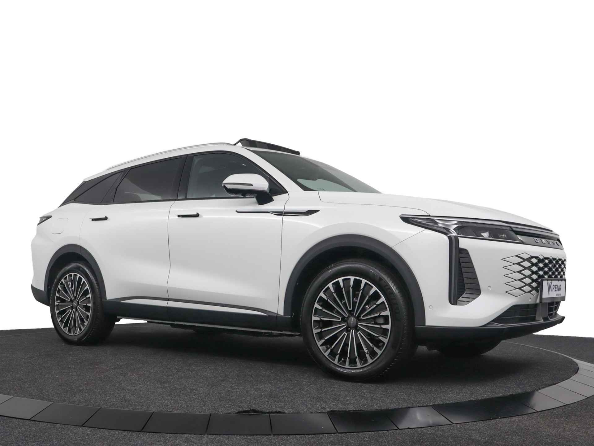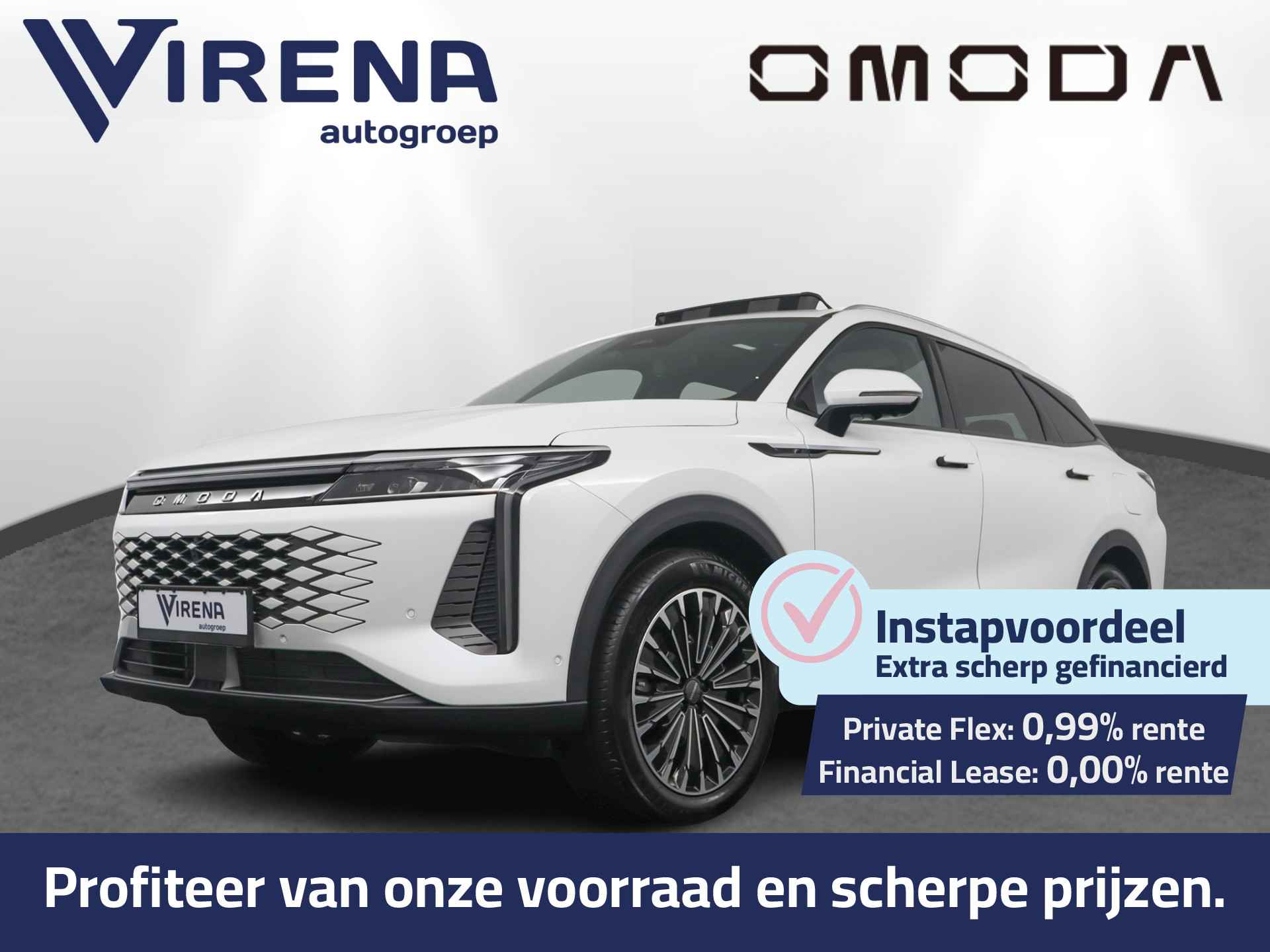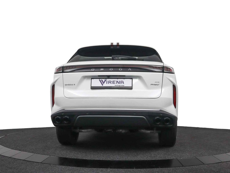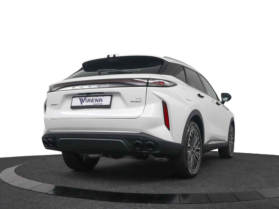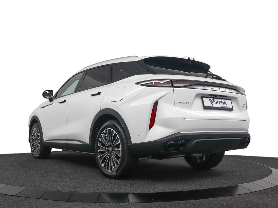 Dat u het milieu wilt sparen, wil nog niet zeggen dat u aan rijcomfort moet inleveren. De omoda 9 is een comfortabele en ruime hybride auto. U kunt deze nieuwe auto nu direct verkrijgen, want hij is op voorraad. De hybride motor van deze omoda 9 zorgt dat u opvallend veel minder brandstof verbruikt dankzij de ondersteuning van de elektromotor met z'n eigen accu. En die laadt u al rijdend bij. Slim en zuinig! Kijk, dat noemen we nou stijlvol: een fraai lederen interieur. Gecombineerd met het heerlijke gemak van de elektrisch bedienbare achterklep. In de verwarmbare voorstoelen zitten is elke keer een welkom gevoel. De massagefunctie doet daar nog een schepje bovenop. Onderweg heeft u extra veel te zien dankzij het glazen panoramadak. De verwarmbare achterbank is een traktatie voor iedereen die achterin plaatsneemt. Ook 20 inch lichtmetalen velgen, LED koplampen, adaptief dempingsysteem, geluidsisolerende ramen, in delen neerklapbare achterbank en LED-achterlichten horen tot de voorzieningen op deze auto. Het digitale dashboard stelt u in staat uw cockpitinterface te personaliseren. De vier camera's die samen de 360 graden camera vormen, bieden u de mogelijkheid om obstakels in elke richting te zien. Adaptive cruise control is een comfortabele en veilige optie. Het systeem reguleert de snelheid en houdt automatisch afstand tot uw voorligger. Rijden-stilstaan, rijden-stilstaan. Niks is irritanter en vermoeiender dan filerijden. Daar heeft deze omoda 9 een oplossing voor: de file assistent, die met radarmeting permanent het tempo aanpast op de voorligger. Zelfs als die stopt. Met uw smartphone maakt u overal contact met de auto. Remote services geven direct inzicht in uiteenlopende functies en zijn op afstand te activeren. Natuurlijk behoren dashboard met spraakbediening, full map navigatiesysteem, WIFI-hotspot, achteropkomend verkeer waarschuwing, automatische airconditioning en draadloos opladen ook tot de uitrusting van deze complete auto. Geavanceerde veiligheidssystemen kijken tijdens elke rit met u mee en schatten continu de risico's in. U hoeft uw ogen niet meer van de weg te halen om dashboardinformatie te checken. De head-up display projecteert het rechtstreeks in uw zichtveld. Voorzien van het Lane-keeping systeem. Ofwel: blijf automatisch in je baan. Forward collision warning waarschuwt voor een kop-staart botsing. Met voorzieningen als dodehoekdetectie, hill hold functie, vermoeidheidsherkenning, autonoom remsysteem en bandenspanningcontrolesysteem, bent u altijd veilig onderweg. We hebben ons best gedaan om de kwaliteit van deze 9 aan u uit te leggen, maar er gaat toch niets boven een proefrit. Als u contact met ons opneemt, zetten we de auto voor u klaar. We horen graag van u.
