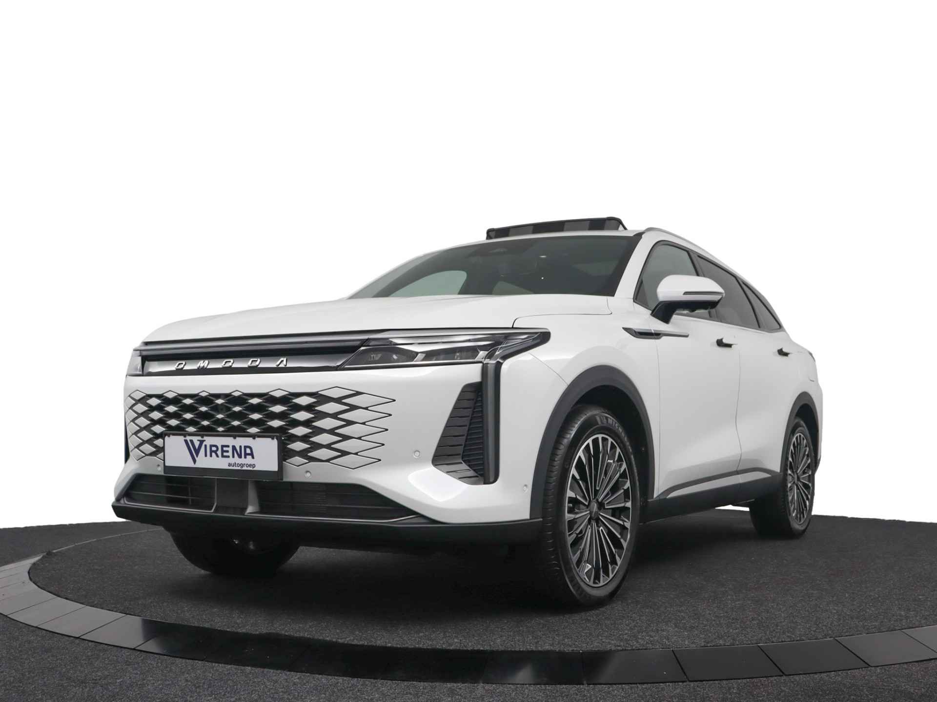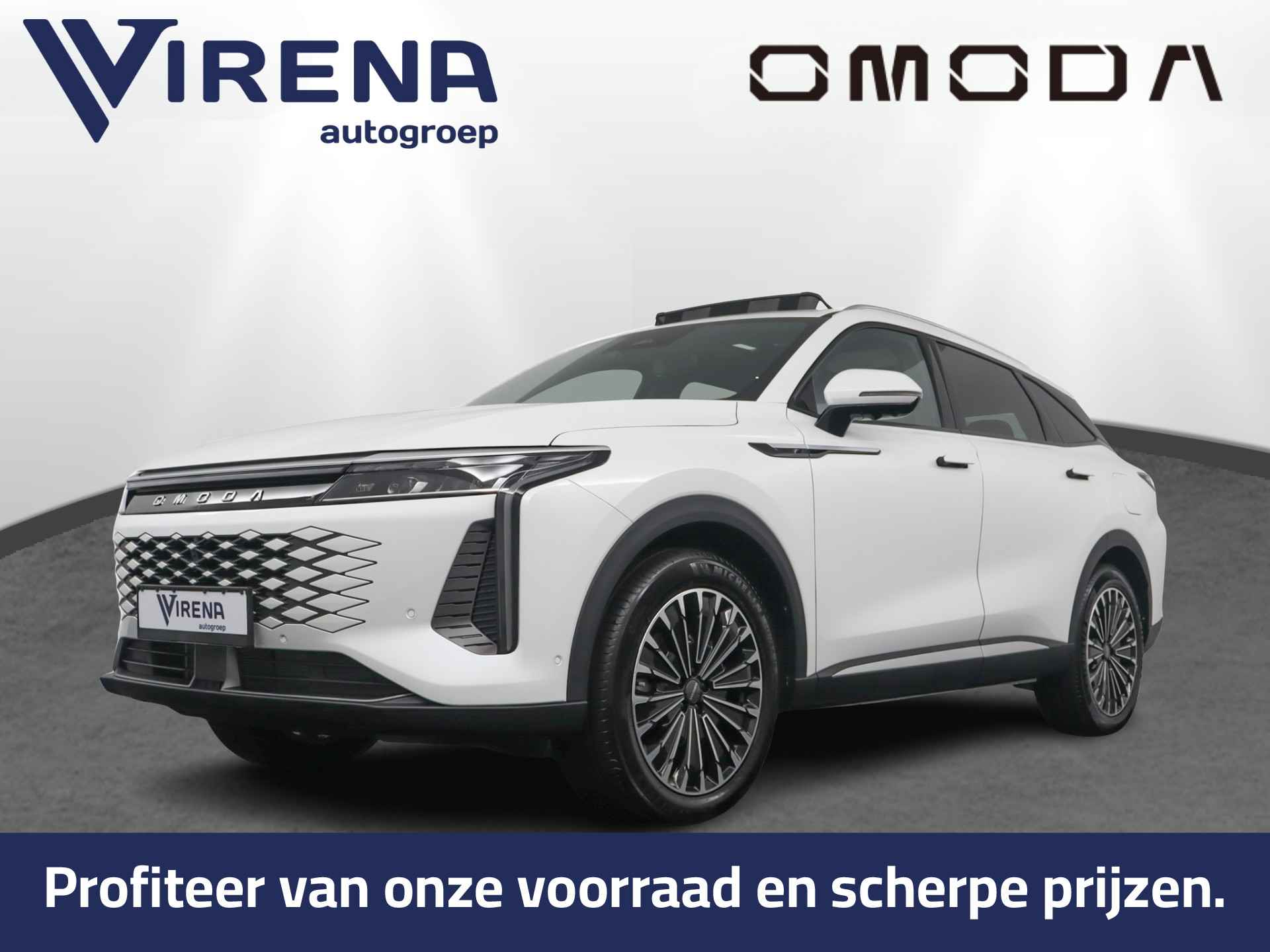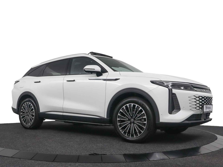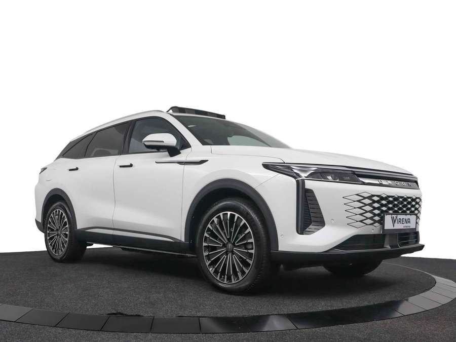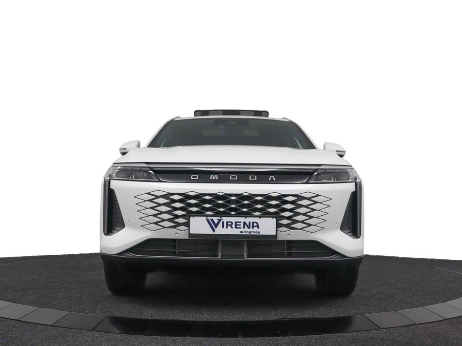 Laat u niets wijsmaken, deze Omoda 9 biedt alles wat u van een auto verlangt. Het is een nieuwe auto, hij is nu uit voorraad leverbaar. De aandrijving komt voor rekening van een benzinemotor en een automatische transmissie. Het met leer beklede interieur geeft deze auto een gedistingeerde uitstraling. Een weldaad voor uw rug en die van uw bijrijder: deze Omoda 9 heeft verwarmbare voorstoelen met massagefunctie. De elektrische achterklep opent met een druk op de knop, zodat u gemakkelijk toegang heeft tot de bagageruimte. Het glazen panoramadak geeft ook doordeweeks een vakantiegevoel. Wat een licht en zicht! Deze Omoda 9 is niet zuinig met comfort. Wat dacht u van een verwarmde achterbank? Tot de uitrusting van deze Omoda behoren ook 20 inch lichtmetalen velgen, LED koplampen, adaptief dempingsysteem, geluidsisolerende ramen, in delen neerklapbare achterbank en LED-achterlichten. Het digitale dashboard is een perfecte bijrijder. Alles benodigde informatie is permanent zichtbaar of opvraagbaar. Met de 360 graden camera op deze auto wordt parkeren in smalle parkeerplekken een makkie dankzij het optimale zicht dat het apparaat levert. Adaptive cruise control is een comfortabele en veilige optie. Het systeem reguleert de snelheid en houdt automatisch afstand tot uw voorligger. De ingebouwde file assistent is een echte helper als het vaststaat onderweg. Het systeem meet ruimte tot de auto vóór u permanent en activeert zelfs de remmen als uw voorligger stopt. Het infotainmentsysteem bedient u met uw vingers of met uw stem, met dank aan de geïntegreerde stembediening. Wat u ook in deze auto kunt vinden zijn connected drive services, full map navigatiesysteem, WIFI-hotspot, achteropkomend verkeer waarschuwing, automatische airconditioning en draadloos opladen. Als bestuurder van deze Omoda bent u nooit alleen. U wordt onderweg bijgestaan door technologische hulpmiddelen die samen met u de weg in de gaten houden. Als het nodig is, grijpen ze zelfs in, door te remmen of bij te sturen. Uiteenlopende functies maakt de head-up display zichtbaar in de voorruit. Een camera houdt de juiste koers binnen de rijstrook in de gaten en het Lane-keeping systeem corrigeert bij afwijkingen. Forward collision warning waarschuwt voor een kop-staart botsing. De veiligheid van deze auto wordt verder verhoogd door dodehoekdetectie, hill hold functie, vermoeidheidsherkenning, autonoom remsysteem en bandenspanningcontrolesysteem. Hebben we uw interesse gewekt? Deze 9 staat nu voor u klaar, u bent van harte welkom om hem te komen bekijken. Dan vertellen we u ook meteen over de financieringsvormen die we u kunnen aanbieden. Belt u ons vandaag nog?