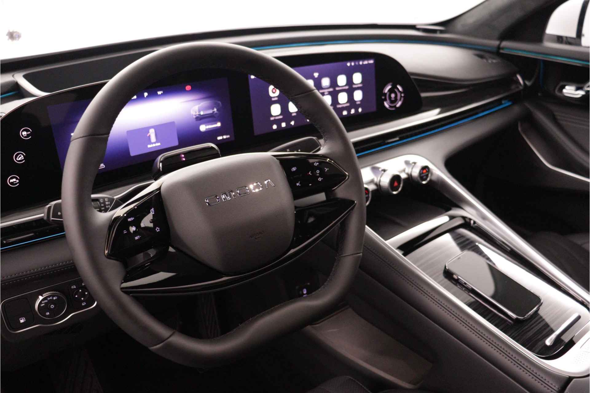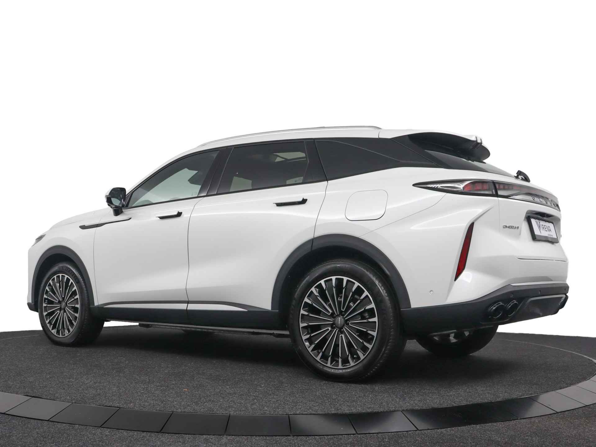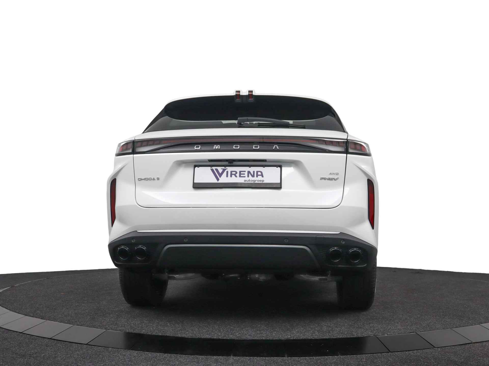 Laat u niets wijsmaken, deze Omoda 9 biedt alles wat u van een auto verlangt. Het is een nieuwe auto, hij is nu uit voorraad leverbaar. De aandrijving komt voor rekening van een benzinemotor en een automatische transmissie. Het met leer beklede interieur geeft deze auto een gedistingeerde uitstraling. Een weldaad voor uw rug en die van uw bijrijder: deze Omoda 9 heeft verwarmbare voorstoelen met massagefunctie. De elektrische achterklep opent met een druk op de knop, zodat u gemakkelijk toegang heeft tot de bagageruimte. Het glazen panoramadak geeft ook doordeweeks een vakantiegevoel. Wat een licht en zicht! Deze Omoda 9 is niet zuinig met comfort. Wat dacht u van een verwarmde achterbank? Tot de uitrusting van deze Omoda behoren ook 20 inch lichtmetalen velgen, LED koplampen, adaptief dempingsysteem, geluidsisolerende ramen, in delen neerklapbare achterbank en LED-achterlichten. Het digitale dashboard is een perfecte bijrijder. Alles benodigde informatie is permanent zichtbaar of opvraagbaar. Met de 360 graden camera op deze auto wordt parkeren in smalle parkeerplekken een makkie dankzij het optimale zicht dat het apparaat levert. Adaptive cruise control is een comfortabele en veilige optie. Het systeem reguleert de snelheid en houdt automatisch afstand tot uw voorligger. De ingebouwde file assistent is een echte helper als het vaststaat onderweg. Het systeem meet ruimte tot de auto vóór u permanent en activeert zelfs de remmen als uw voorligger stopt. Het infotainmentsysteem bedient u met uw vingers of met uw stem, met dank aan de geïntegreerde stembediening. Wat u ook in deze auto kunt vinden zijn connected drive services, full map navigatiesysteem, WIFI-hotspot, achteropkomend verkeer waarschuwing, automatische airconditioning en draadloos opladen. Als bestuurder van deze Omoda bent u nooit alleen. U wordt onderweg bijgestaan door technologische hulpmiddelen die samen met u de weg in de gaten houden. Als het nodig is, grijpen ze zelfs in, door te remmen of bij te sturen. Uiteenlopende functies maakt de head-up display zichtbaar in de voorruit. Een camera houdt de juiste koers binnen de rijstrook in de gaten en het Lane-keeping systeem corrigeert bij afwijkingen. Forward collision warning waarschuwt voor een kop-staart botsing. De veiligheid van deze auto wordt verder verhoogd door dodehoekdetectie, hill hold functie, vermoeidheidsherkenning, autonoom remsysteem en bandenspanningcontrolesysteem. Hebben we uw interesse gewekt? Deze 9 staat nu voor u klaar, u bent van harte welkom om hem te komen bekijken. Dan vertellen we u ook meteen over de financieringsvormen die we u kunnen aanbieden. Belt u ons vandaag nog?