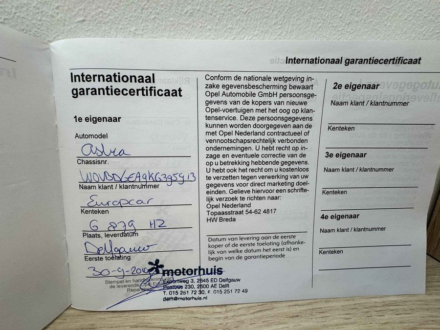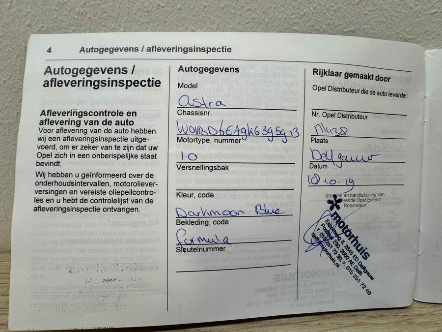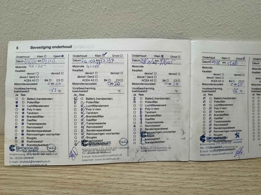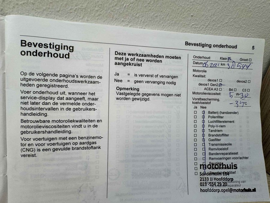 • ­ Onderhoudsboekje (fysiek)