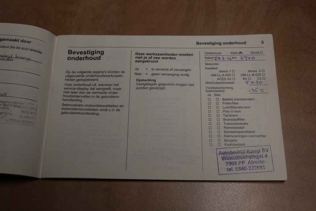 • ­ Onderhoudsboekje aanwezig