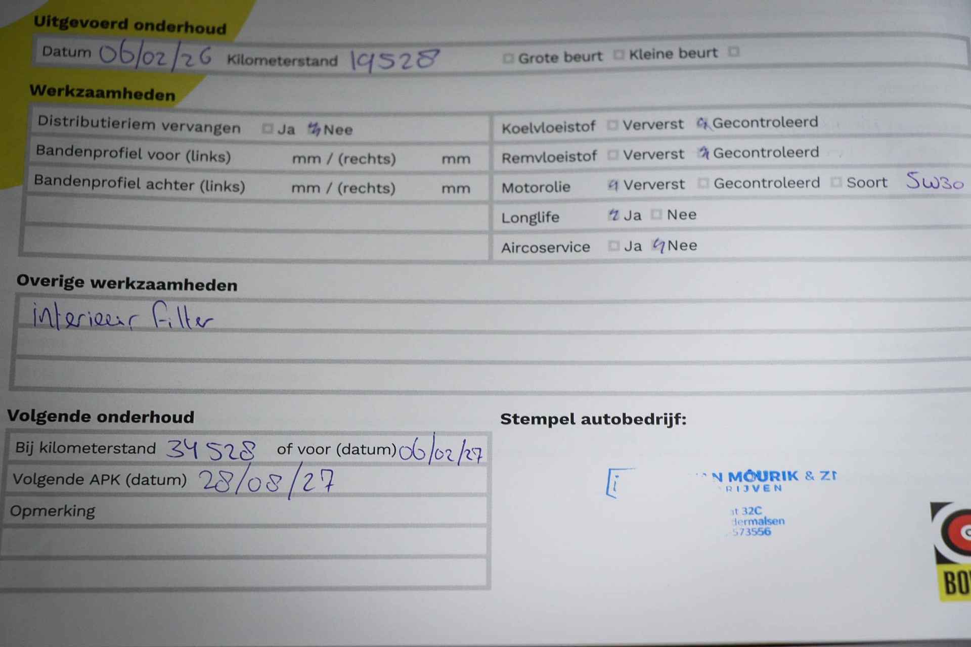 • ­ Onderhoudsboekje (fysiek)