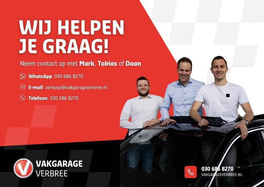 Wat leuk dat u deze auto heeft gevonden! Wij zijn Vakgarage Verbree; als familiebedrijf combineren wij de voordelen van een moderne autodealer met de persoonlijke benadering van een dorpsgarage. Uw adviseurs Tobias, Mark, Swen en Daan vertellen u graag meer. Bereikbaar via telefoon: 030-6868277 of WhatsApp: 030-6868270. De auto staat in IJsselstein of Benschop. Bel vooraf om dit na te gaan. De prijs is inclusief minimaal 9 maanden APK, controle van vloeistoffen, verlichting en bandenspanning, een kwart tank brandstof en RDW tenaamstelling. Bij ons heeft u de keuze de aflevervoorwaarde uit te breiden, zie hiervoor het extra afleverpakket in de fotogalerij van deze auto.