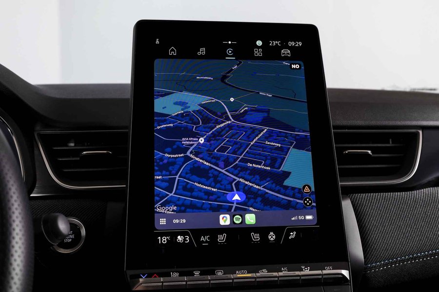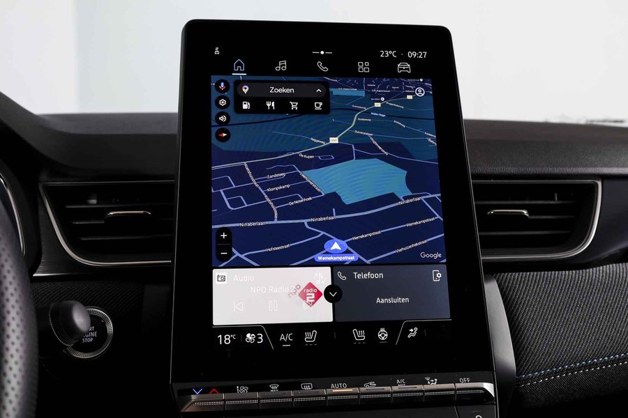 Deze Renault Captur is uitgevoerd in de Esprit Alpine-uitvoering, de meest sportieve variant binnen het Captur-gamma. Met zijn 1.3 mild hybrid benzinemotor en 160 pk in combinatie met een automaat, biedt hij een soepele en krachtige rijervaring met een laag verbruik. Van binnen en buiten ademt deze Captur kwaliteit. De auto is uitgerust met LED koplampen en lichtmetalen velgen 19", wat hem een moderne en sportieve uitstraling geeft. Binnenin zorgt het volledig digitale instrumentenpaneel groot voor een overzichtelijk en strak dashboard. Qua comfort en gebruiksgemak is hij rijk uitgerust. Zo beschikt deze Captur over adaptieve cruise control, elektrisch verstelbare bestuurdersstoel, voorstoelen verwarmd en een verwarmd stuur – prettig tijdens koude dagen. Ook aan connectiviteit is gedacht met Apple CarPlay/Android Auto en het ingebouwde navigatiesysteem werkt op basis van geïntegreerde Google Maps, wat zorgt voor actuele en duidelijk leesbare route-informatie. Bovendien kun je het systeem eenvoudig bedienen via spraakbediening. Parkeren gaat moeiteloos dankzij parkeersensoren voor en achter en de achteruitrijcamera, terwijl de electronic climate control het dagelijks gebruik extra comfortabel maken. Deze Captur combineert sportiviteit met dagelijkse bruikbaarheid. De Esprit Alpine-afwerking onderscheidt zich door zijn dynamische uitstraling en hoogwaardige afwerking – een ideale keuze voor wie een complete, moderne en zuinige crossover zoekt.