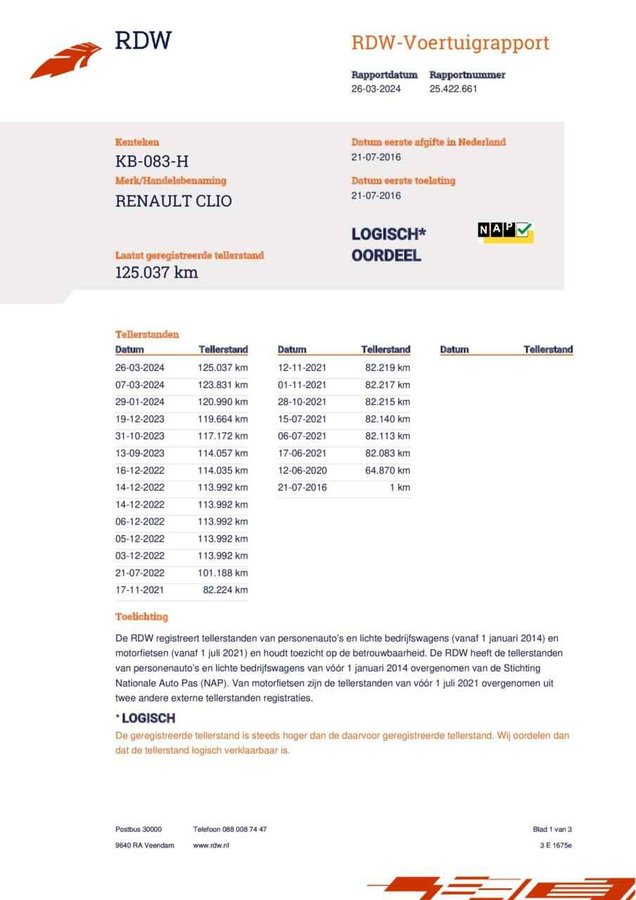 Renault Clio Estate 0.9 TCe Limited|Navi|Airco|Cruise|NAP| - Kenteken: KB-083-H - Merk: Renault - Model: Clio Estate - APK tot: 17-04-2026 - Tellerstand: 125071 KM - Carrosserievorm: Station - Aantal deuren: 5 - Brandstofsoort: Benzine - Bouwjaar: 2016 - Transmissie: Handgeschakeld - Kleur: wit - Motorinhoud: 898 cc - Aantal cilinders: 3 - Motorcode: H4B B4 - Vermogen: 66 kW / 90pk - Ledig gewicht: 1064 kg - Max. trekgewicht: 1200 kg - Aantal zitplaatsen: 5 - Verbruik: 4.6 l/100 km - BTW/Marge: Marge, de BTW is niet aftrekbaar - Lengte: 427 cm - Breedte: 173 cm - Aantal sleutels: 2 - Onderhoudshistorie aanwezig: Ja - Motorrijtuigenbelasting: € 139 - 151 per kwartaal - Emissieklasse: Euro 6 Comfort - Boordcomputer - Cruise control - Regensensor Exterieur - Achterruitwisser - Buitenspiegel rechts - Buitenspiegels elektrisch verstel- en verwarmbaar - Buitenspiegels elektrisch verstelbaar - Buitenspiegels verwarmbaar - Centrale vergrendeling - Centrale vergrendeling met afstandsbediening - Chroom delen exterieur - Dakrails - Dimlichten automatisch - Extra getint glas achter - Getint glas - Keyless entry - LED dagrijverlichting - Lichtmetalen velgen 16" - Metaalkleur - Mistlampen voor - Park Distance Control - Parkeersensor achter - Sportvelgen Infotainment - DAB - Multimedia-voorbereiding - Navigatiesysteem - Radio - Stuur multifunctioneel Interieur - Achterbank in delen neerklapbaar - Airco - Armsteun voor - Bagagedek - Bestuurdersstoel in hoogte verstelbaar - Elektrische ramen voor - Lederen stuurwiel en versnellingspook - Microvezel bekleding - Stuur verstelbaar - Stuurbekrachtiging Milieu - Start/stop systeem Overige - Anti Blokkeer Systeem - Anti doorSlip Regeling - Bestuurdersairbag - Bluetooth - Elektronisch Stabiliteits Programma - Elektronische remkrachtverdeling - Passagiersairbag - Zij airbag(s) voor Veiligheid - Alarm klasse 1(startblokkering) - Hill hold functie - Isofix bevestiging voor kinderzitjes Niet voor niets hebben Franse auto's fans voor het leven. Het fantastische weggevoel wordt gecombineerd met hoogstaande techniek en uitstekende constructie. In deze auto vindt u een benzinemotor en een handgeschakelde versnellingsbak. U wordt in deze auto ook getrakteerd op 16 inch lichtmetalen velgen, LED-dagrijverlichting, aluminium dakrailing, donker getint glas achter, in delen neerklapbare achterbank en elektrisch bedienbare en verwarmde buitenspiegels. In deze auto beschikt u natuurlijk over een navigatiesysteem. Het audiosysteem met DAB-radio biedt glasheldere geluidskwaliteit. U bedient dit veilig via het stuurwiel. Hoeveel ruimte u nog heeft bij het insteken? De parkeersensoren laten het weten! Da's gemakkelijk! Het drukke verkeer eist onderweg al uw aandacht op. Daarom is het goed dat deze Renault is voorzien van diverse systemen die u assisteren tijdens de rit. Een automatisch inschakelbare verlichting neemt het waar als het donker wordt of gaat schemeren, en schakelt dan automatisch de verlichting in. Op dezelfde manier "ziet" de regensensor de eerste spatjes regen en schakelt dan de ruitenwissers in, en als het harder gaat regenen zet hij de ruitenwissers ook in een snellere stand. Op een rustige weg komt de cruise control helemaal tot z'n recht. Met keyless entry kunt u portieren ontgrendelen zonder dat u de sleutel in uw hand houdt. En deze auto heeft ook airconditioning, lederen stuur en versnellingspook, isofix-aansluiting, centrale deurvergrendeling met afstandsbediening, bagage afdekhoes en boordcomputer als standaard uitrusting. Pragmatisch en veilig als deze auto is, beschikt hij over diverse veiligheidssystemen. Rempedaal, handrem - allemaal niet meer nodig bij stilstaan op een helling. De hill hold control zet 'm onbeweeglijk en veilig vast tot u weer gas geeft. Uiteraard is een proefrit altijd mogelijk. Bel onze verkoper voor een afspraak! U kunt deze deze auto financieren vanaf €169,00 per maand. Voor meer vragen of informatie kunt u ons altijd bellen mailen of smsen. Kijk ook eens naar onze andere voordelige advertenties. Onze garantiepakketten Instapgarantie (€399,-) Auto's van 10 - 15 jaar oud en tot 200.000 km. Inclusief onderhoudsbeurt. Excellent garantie (€499,-) Auto's tot 10 jaar oud en tot 200.000 km. Inclusief onderhoudsbeurt. Exclusive garantie (€1499,-) Speciaal voor onze exclusives. Auto's tot 10 jaar oud en tot 200.000 km. Inclusief onderhoudsbeurt. Onze advertenties worden met grote zorgvuldigheid op het internet geplaatst. Mocht er onverhoopt toch een fout in staan, dan kan hieraan geen rechten worden ontleend.  Financiering is mogelijk. Whatsapp ons op:  06-552 318 32 RTO autoservice Zuiderdiep 408 7876 AW Valthermond 0599 72 70 12 info@rtoautoservice.nl www.rtoautoservice.nl/