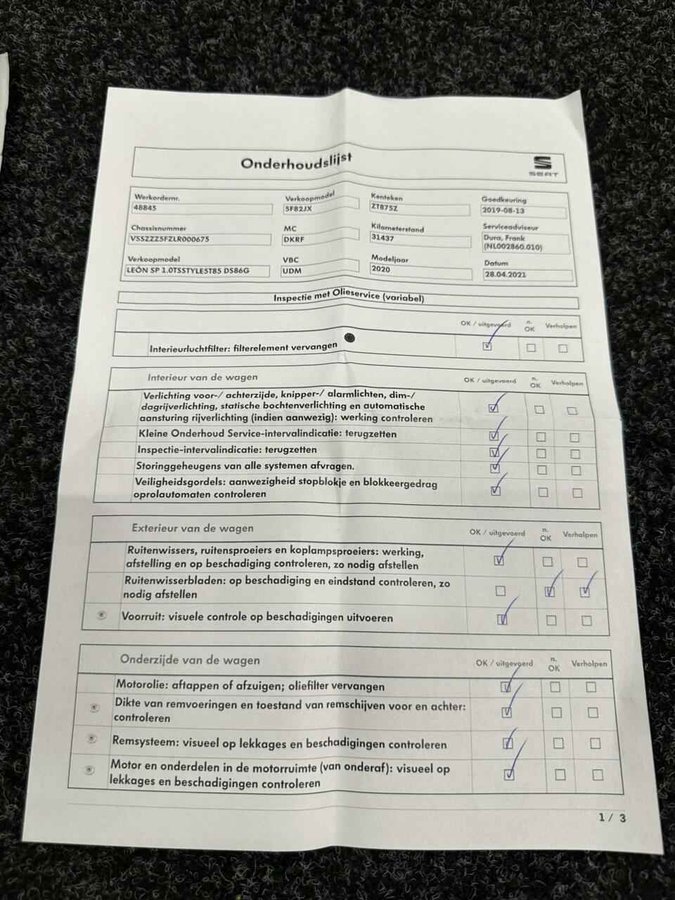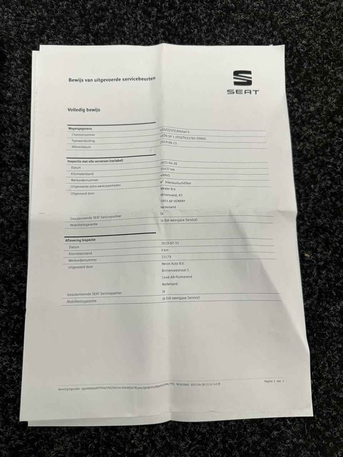 Seat Leon ST 1.0 EcoTSI Style Business Intense NAVI TREKHAAK - Kenteken: ZT-875-Z - Merk: Seat - Model: Leon ST - APK tot: 01-03-2026 - Tellerstand: 111225 KM - Carrosserievorm: Station - Aantal deuren: 5 - Brandstofsoort: Benzine - Bouwjaar: 2019 - Transmissie: Handgeschakeld - Kleur: rood - Bekleding: Stof - Motorinhoud: 999 cc - Aantal cilinders: 3 - Motorcode: DKR - Vermogen: 85 kW / 116pk - Ledig gewicht: 1142 kg - Max. trekgewicht: 1000 kg - Aantal zitplaatsen: 5 - Verbruik: 4.7 l/100 km - BTW/Marge: BTW aftrekbaar, de prijs is inclusief BTW - Lengte: 455 cm - Breedte: 182 cm - Hoogte: 1451 cm - Aantal sleutels: 2 - Onderhoudshistorie aanwezig: Ja - Motorrijtuigenbelasting: € 139 - 151 per kwartaal - Emissieklasse: Euro 6 Comfort - Cruise control - Regensensor Exterieur - Achterruitwisser - Buitenspiegel rechts - Buitenspiegels elektrisch verstelbaar - Buitenspiegels verwarmbaar - Centrale vergrendeling - Dakrails - Getint glas - Keyless entry - LED Achterlichten - Lane assist - Led dagrijverlichting - Lichtmetalen velgen 16' - Metaalkleur - Mistlampen voor - Park Distance Control - Parkeer sensoren voor - Parkeersensoren achter - Sportvelgen - Start stop Infotainment - Apple Carplay/ Android Auto - Bluetooth - Navigatiesysteem - Spraakbediening - Stuur multifunctioneel Interieur - Achterbank in delen neerklapbaar - Airco (Automatisch) - Armsteun achter - Armsteun voor - Climate control - Cruisecontrol - Elektrische ramen voor en achter - Keyless start - Microvezel bekleding - Middenarmsteun voor - Stuurbekrachtiging Overige - Anti Blokkeer Systeem - Anti doorSlip Regeling - Bestuurdersairbag Veiligheid - Hill hold functie - Isofix bevestiging voor kinderzitjes Dit is echt een zakenauto om in het zicht te parkeren bij uw klant. Een zuinige benzinemotor en uitstekende prestaties, dat is wat deze Seat aanbiedt. De uitmonstering van deze auto wordt gecompleteerd door onder meer 16 inch lichtmetalen velgen, aluminium dakrailing, getint glas, in delen neerklapbare achterbank, LED-achterlichten en elektrisch bedienbare en verwarmde buitenspiegels. Naast handmatige bediening kunt u belangrijke functies met uw stem bedienen dankzij de ingebouwde spraakbediening. Het navigatiesysteem is uw vertrouwde gids, waarheen de reis ook gaat. De auto is ook uitgevoerd met automatische airconditioning. De parkeersensoren vertellen precies hoe ver u kunt gaan. Hoe dichter op een obstakel, hoe sneller de piepjes. Bij wisselvallig en regenachtig weer is goed zicht essentieel. De regensensor reageert op alle neerslag met de juiste actie. Deze auto is voorzien van cruise control, keyless entry, isofix-aansluiting en centrale portiervergrendeling. Pragmatisch en veilig als deze auto is, beschikt hij over diverse veiligheidssystemen. Neem contact op voor een afspraak en laat een proefrit het bewijs leveren! U kunt deze deze auto financieren vanaf €279,00 per maand. Voor meer vragen of informatie kunt u ons altijd bellen mailen of smsen. Kijk ook eens naar onze andere voordelige advertenties. Onze garantiepakketten Instapgarantie (€399,-) Auto's van 10 - 15 jaar oud en tot 200.000 km. Inclusief onderhoudsbeurt. Excellent garantie (€499,-) Auto's tot 10 jaar oud en tot 200.000 km. Inclusief onderhoudsbeurt. Exclusive garantie (€1499,-) Speciaal voor onze exclusives. Auto's tot 10 jaar oud en tot 200.000 km. Inclusief onderhoudsbeurt. Onze advertenties worden met grote zorgvuldigheid op het internet geplaatst. Mocht er onverhoopt toch een fout in staan, dan kan hieraan geen rechten worden ontleend.  Financiering is mogelijk. Whatsapp ons op:  06-552 318 32 RTO autoservice Zuiderdiep 408 7876 AW Valthermond 0599 72 70 12 info@rtoautoservice.nl www.rtoautoservice.nl/