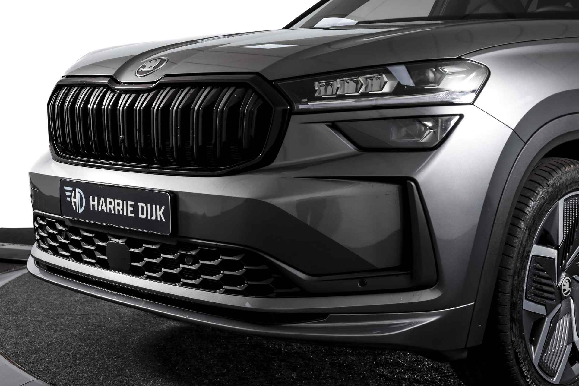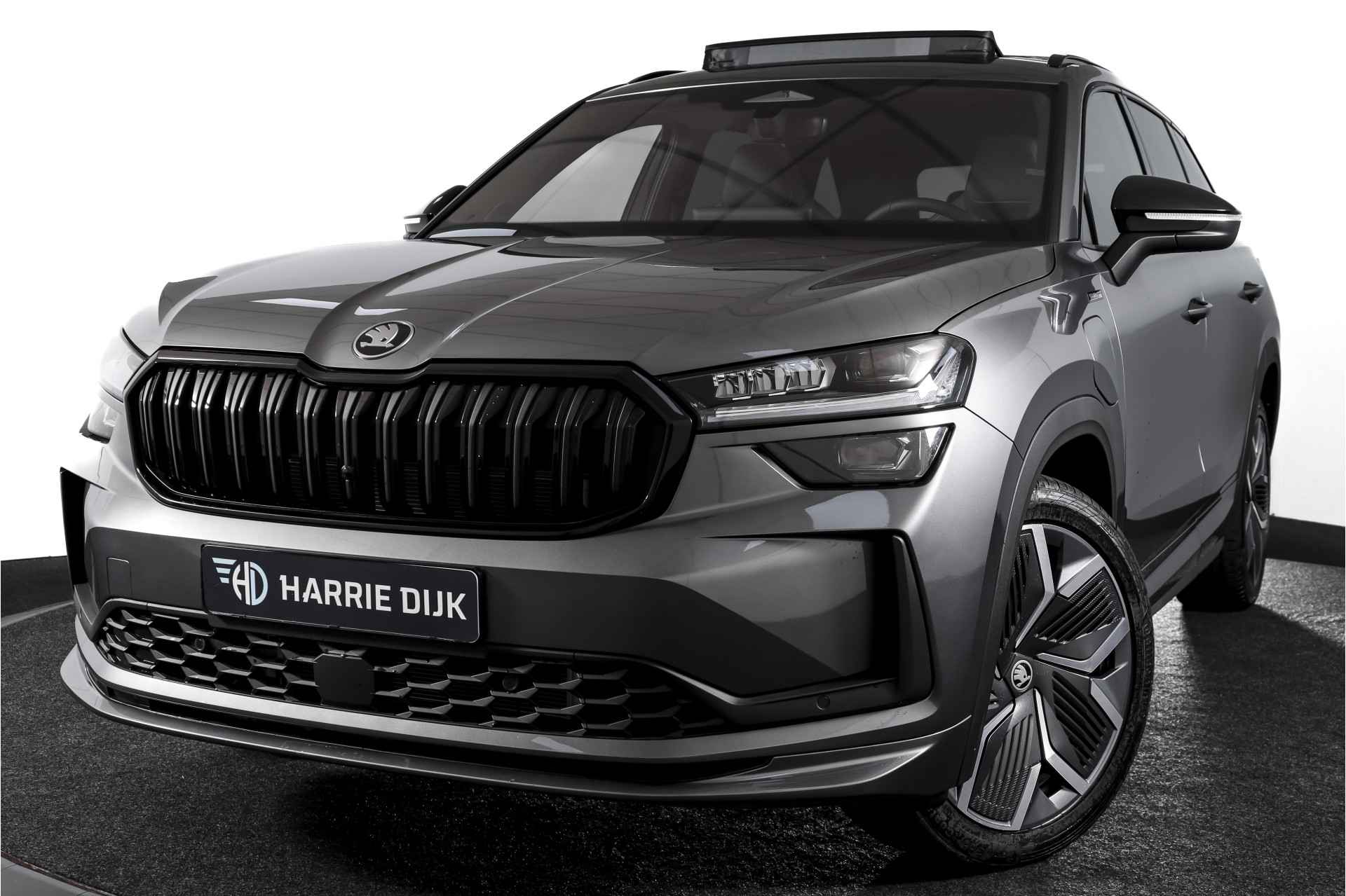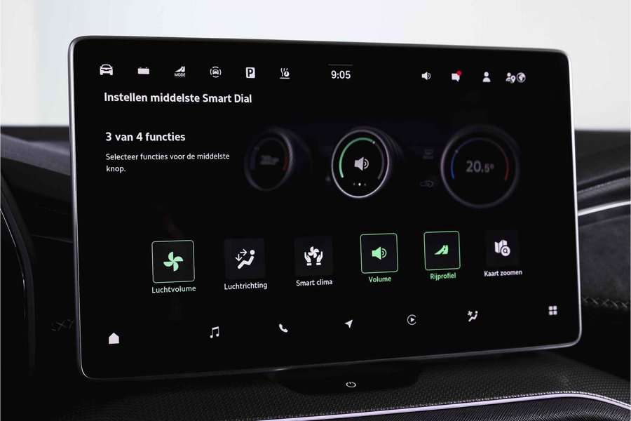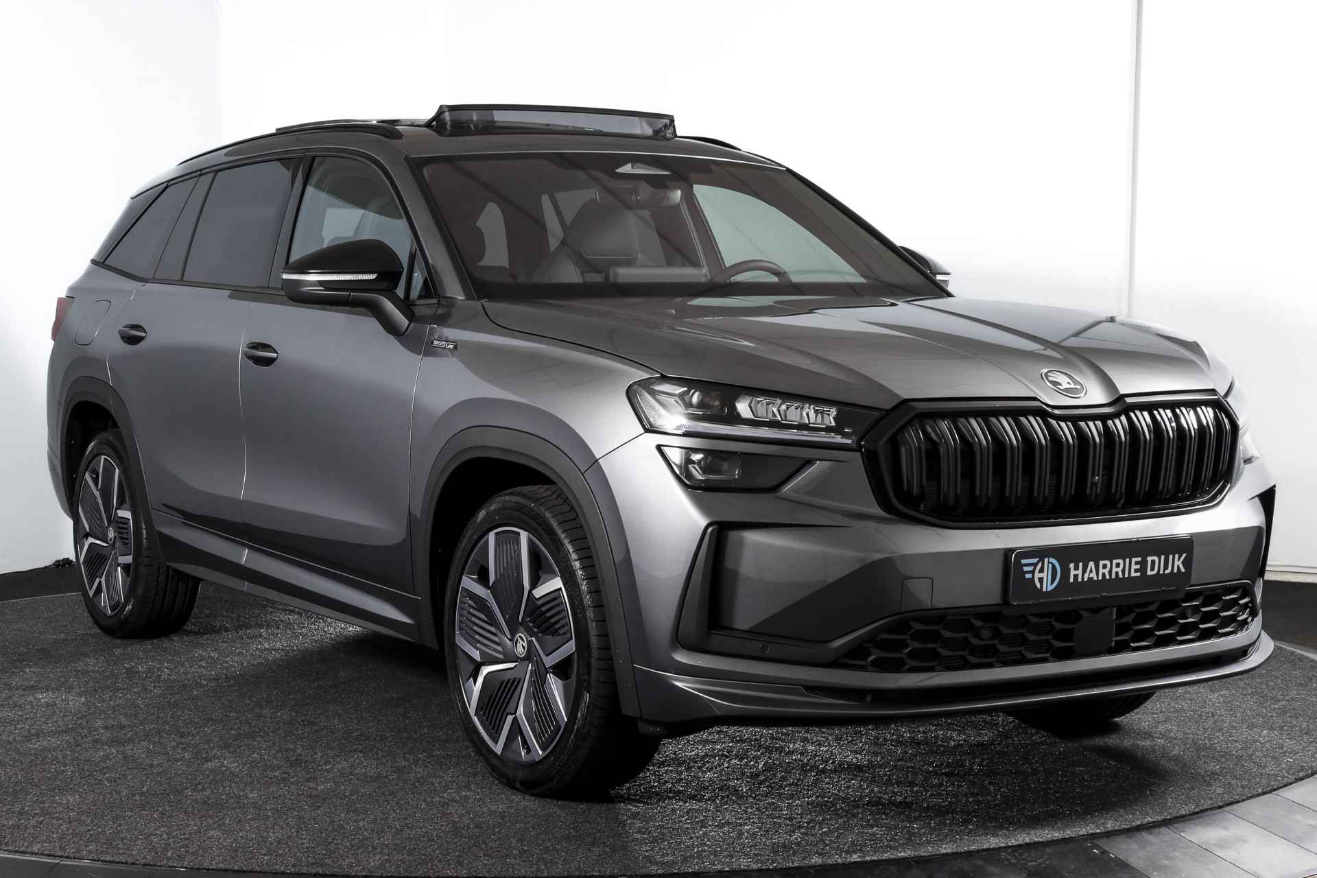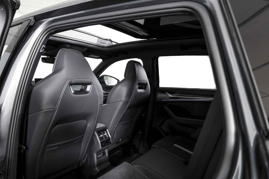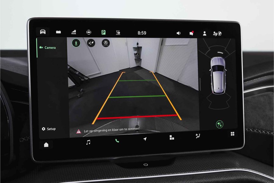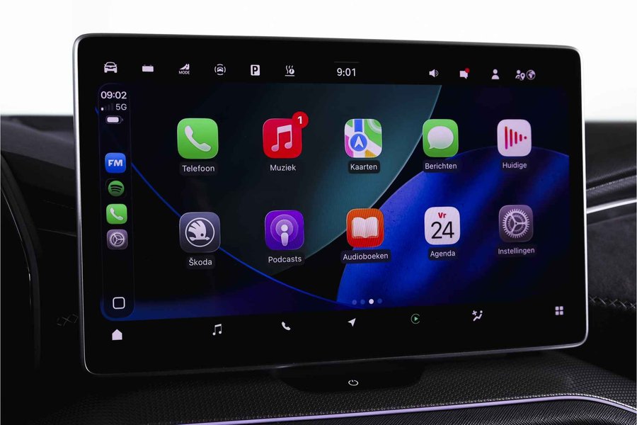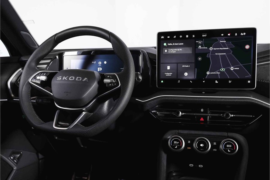 Deze ŠKODA Kodiaq 1.5 TSI PHEV Sportline Business uit 2025 is nagenoeg nieuw met slechts 39 kilometer op de teller. Een ruime, hybride SUV met een sportieve uitstraling en een rijke uitrusting, die comfort en efficiëntie combineert. De plug-in hybride aandrijflijn maakt het mogelijk om tot 123 kilometer volledig elektrisch te rijden (volgens WLTP). Daarmee zijn de meeste dagelijkse ritten stil en emissievrij af te leggen, terwijl de benzinemotor beschikbaar blijft voor langere afstanden. Het Dynamic Chassis Control (DCC+)-systeem is een belangrijk pluspunt: dit adaptieve dempingssysteem past zich continu aan het wegdek en de rijstijl aan. Zo biedt de Kodiaq steeds de juiste balans tussen comfort en sportiviteit – ideaal voor wie graag de controle behoudt, maar ook ontspannen wil rijden. Het interieur is uitgevoerd in microvezel bekleding en voorzien van een elektrisch verstelbare bestuurdersstoel met geheugenfunctie. De afwerking is verzorgd met carbonaccenten en een volledig digitaal instrumentenpaneel, wat bijdraagt aan de moderne uitstraling. Qua technologie is deze Kodiaq uitstekend uitgerust. Het navigatiesysteem en Apple CarPlay/Android Auto zorgen voor een prettige en gebruiksvriendelijke connectiviteit. De achteruitrijcamera, parkeersensoren voor en achter en Matrix LED-koplampen maken elke rit overzichtelijk en veilig, zowel overdag als in het donker. Ook aan comfort is gedacht: het Winter-pakket met verwarmde voorstoelen en verwarmde achterstoelen, in combinatie met de verwarmde voorruit en het verwarmde stuurwiel, zorgen ervoor dat koude dagen geen probleem zijn. De elektrisch bedienbare achterklep maakt laden en lossen bovendien eenvoudig. De Kodiaq staat op 20” lichtmetalen velgen, wat het geheel een stoere en evenwichtige uitstraling geeft. De trekhaak (uitklapbaar) biedt extra functionaliteit voor wie regelmatig een aanhanger of fietsendrager gebruikt. Tot slot zorgt het DAB-radiosysteem voor kraakheldere geluidskwaliteit onderweg.