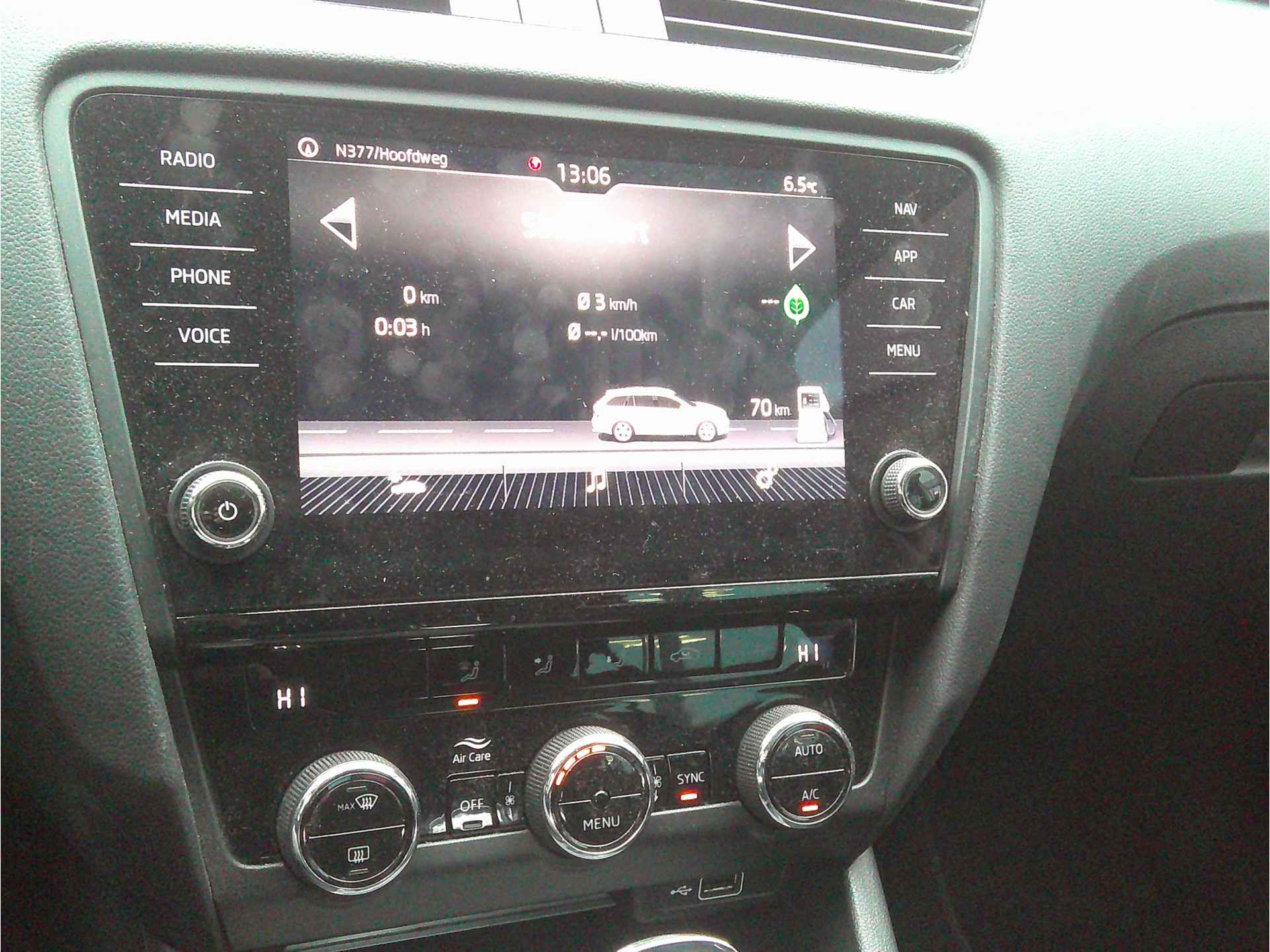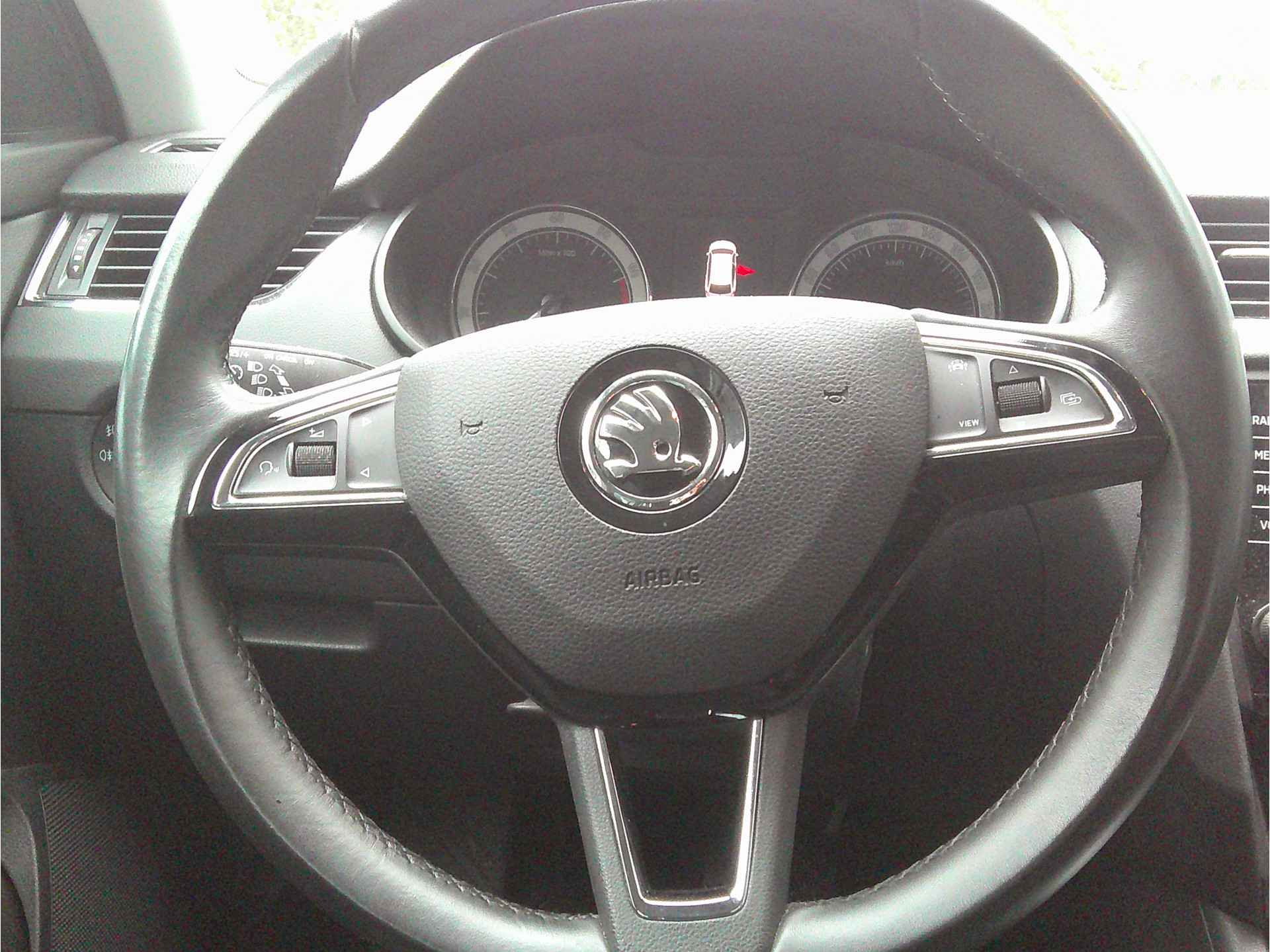 Betrouwbaar in kwaliteit, een topper in rijprestaties en qua conditie in blakende vorm. Deze ŠKODA Octavia Combi staat voor u klaar! De benzinemotor levert uitstekende prestaties. U wordt in deze auto ook getrakteerd op 16 inch lichtmetalen velgen, warmtewerend glas, adaptieve mistlampen, in hoogte verstelbare passagiersstoel, in delen neerklapbare achterbank en verstelbare lendensteunen. Onderweg kunt u veilig genieten van het audiosysteem en het full map navigatiesysteem. Want in deze ŠKODA bedient u ze vanaf het stuurwiel of met uw stem. Geef uw smartphone onderweg weer energie; zonder snoer, met de draadloze oplaadmogelijkheid voor telefoons. Uiteraard voorzien van Qi-technologie. U verwacht natuurlijk automatische airconditioning in deze auto, en die is er dan ook. De parkeersensoren registreren alles. Ook dat ene paaltje dat net buiten uw gezichtsveld valt. Deze ŠKODA Octavia Combi maakt het rijden graag gemakkelijk. Daarom verzorgt de regensensor de mate van ruitreiniging die de ruitenwissers moeten leveren bij neerslag. Wat u ook in deze auto kunt vinden zijn cruise control, automatisch dimmende buitenspiegels, lederen stuur, centrale deurvergrendeling met afstandsbediening, boordcomputer en lederen versnellingspook. De nieuwste veiligheidssystemen komen in deze ŠKODA Octavia Combi samen. Het forward collision warning-systeem is constant alert en detecteert via sensor de afstand tot voorliggers. Wordt die te klein, dan volgt een automatische waarschuwing. Op lange ritten voorkomt de vermoeidheidsassistent dat uw concentratie afneemt. De auto is ook uitgerust met hill hold functie en bandenspanningcontrolesysteem. Hebben we u nieuwsgierig gemaakt? Bel of mail ons nu voor een proefrit.